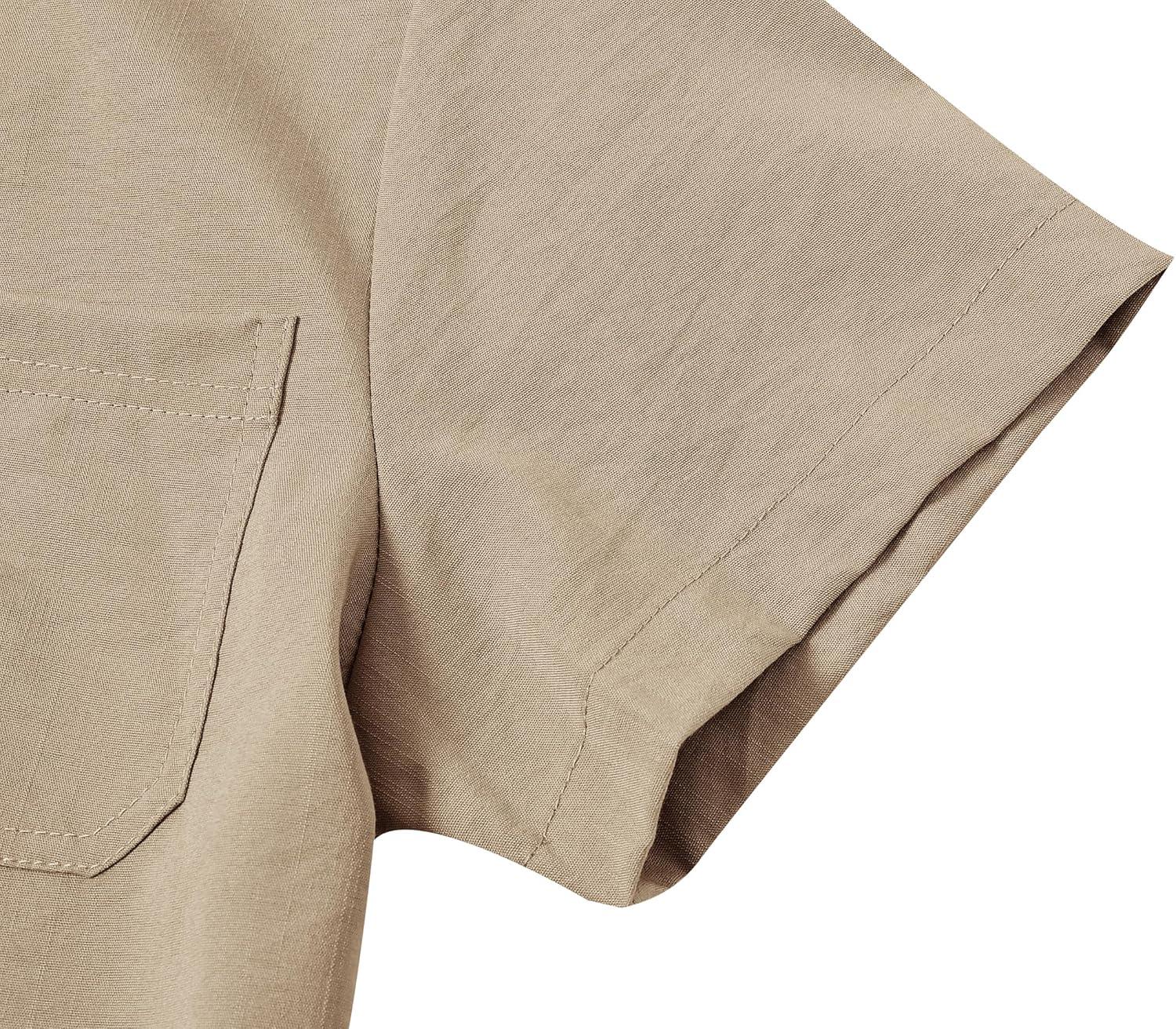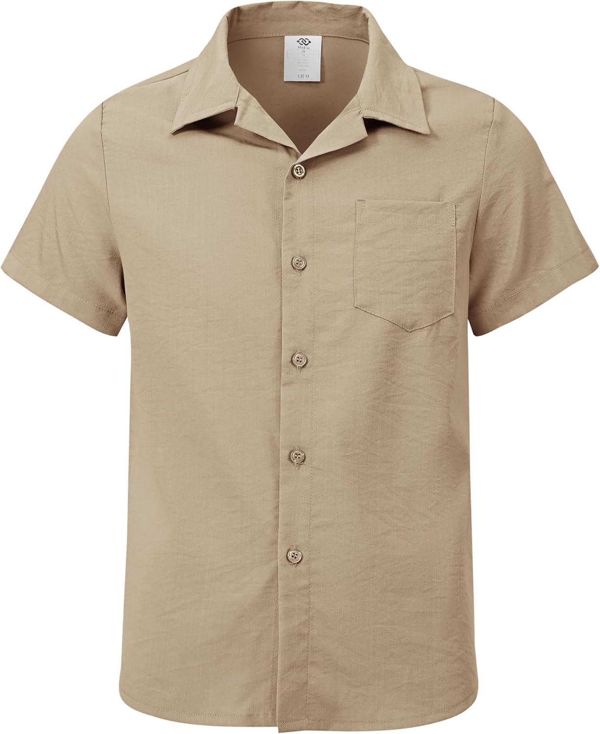 MoFiz Boys Short Sleeve Button Down Shirts Collared Beach Shirt(Khaki)
