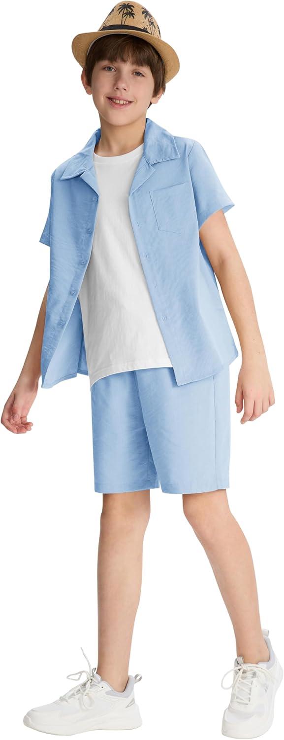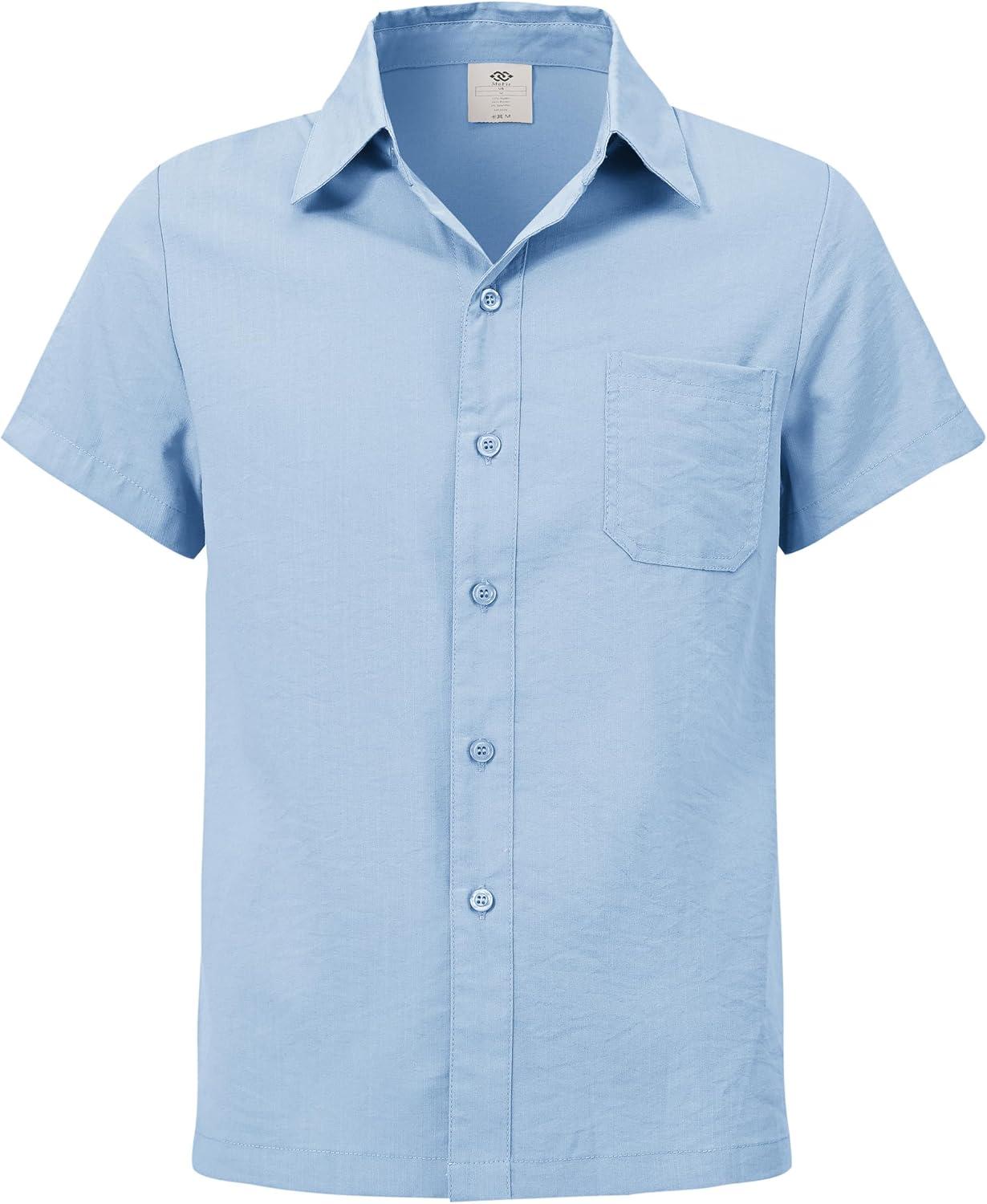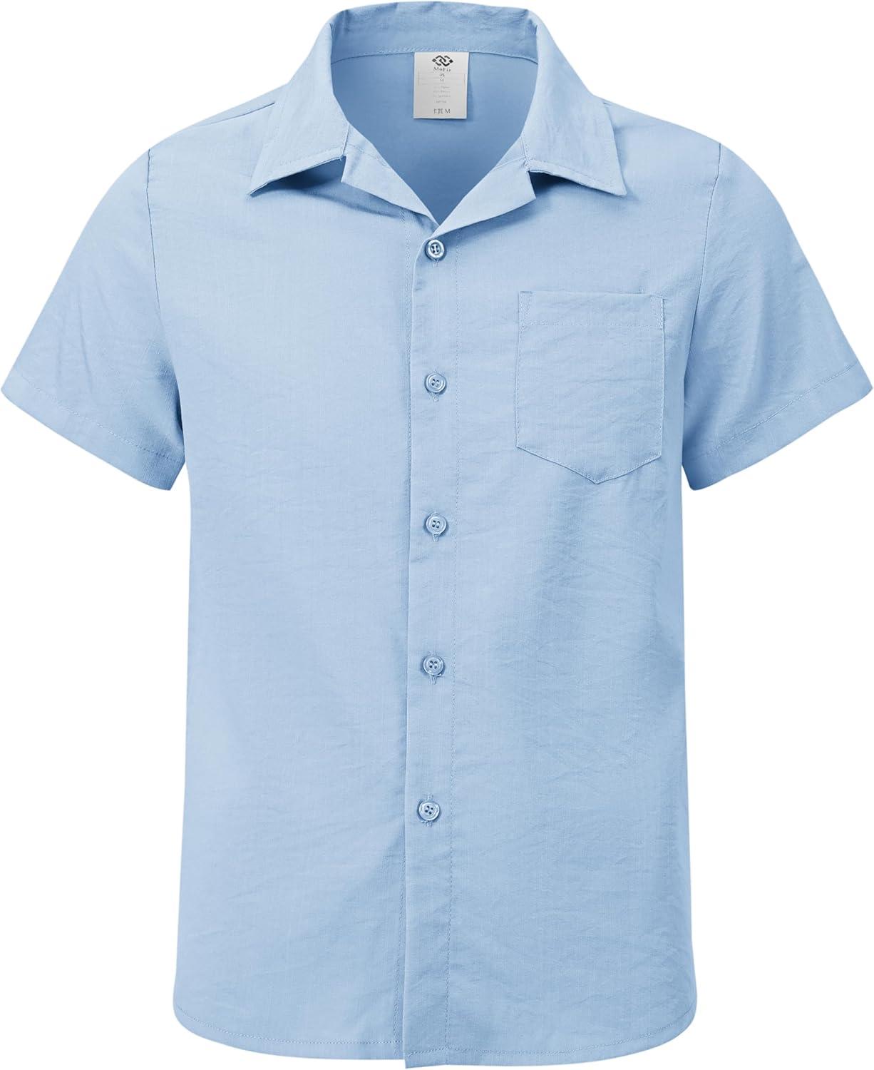 MoFiz Boys Short Sleeve Button Down Shirts Collared Beach Shirt(Light Blue)