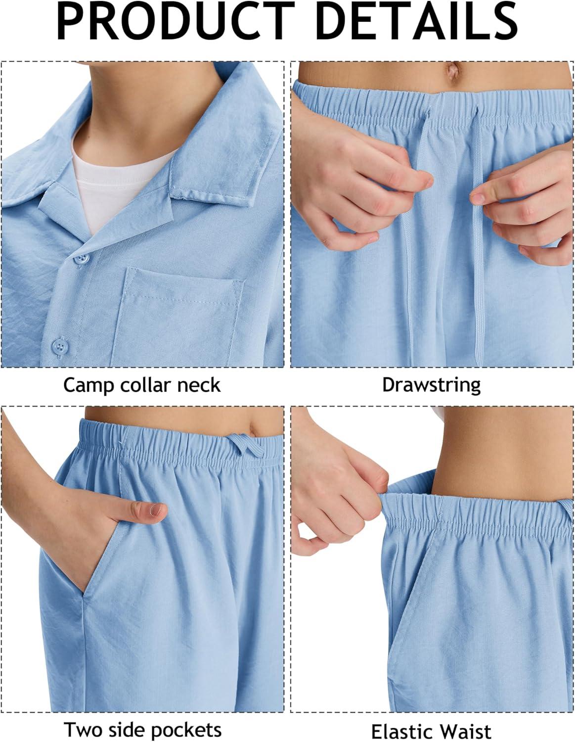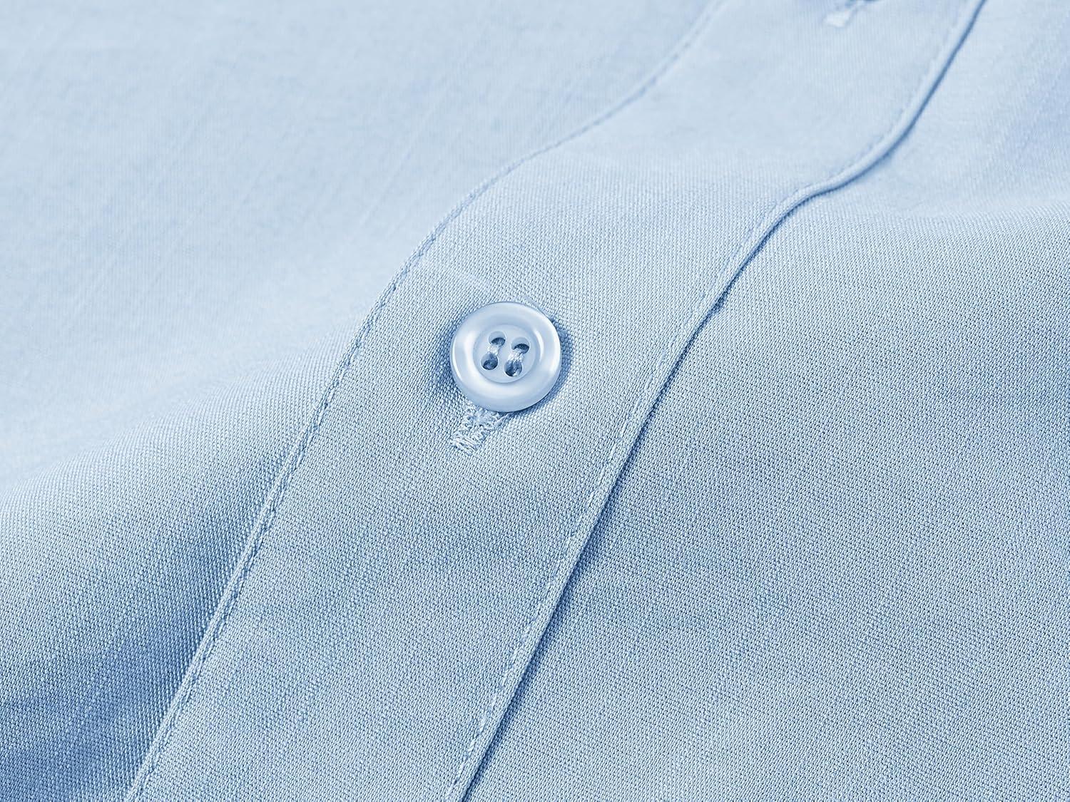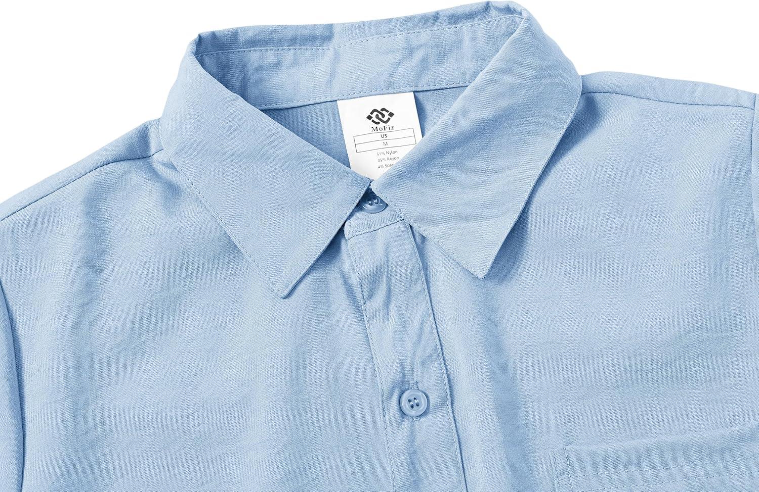 MoFiz Boys Short Sleeve Button Down Shirts Collared Beach Shirt(Light Blue)