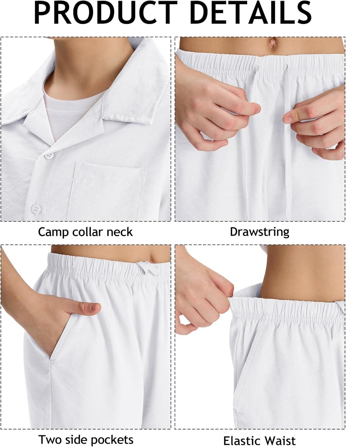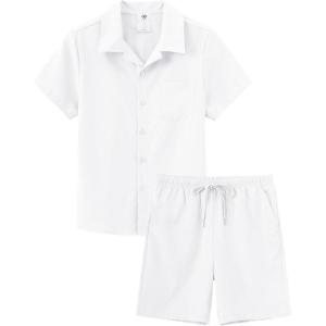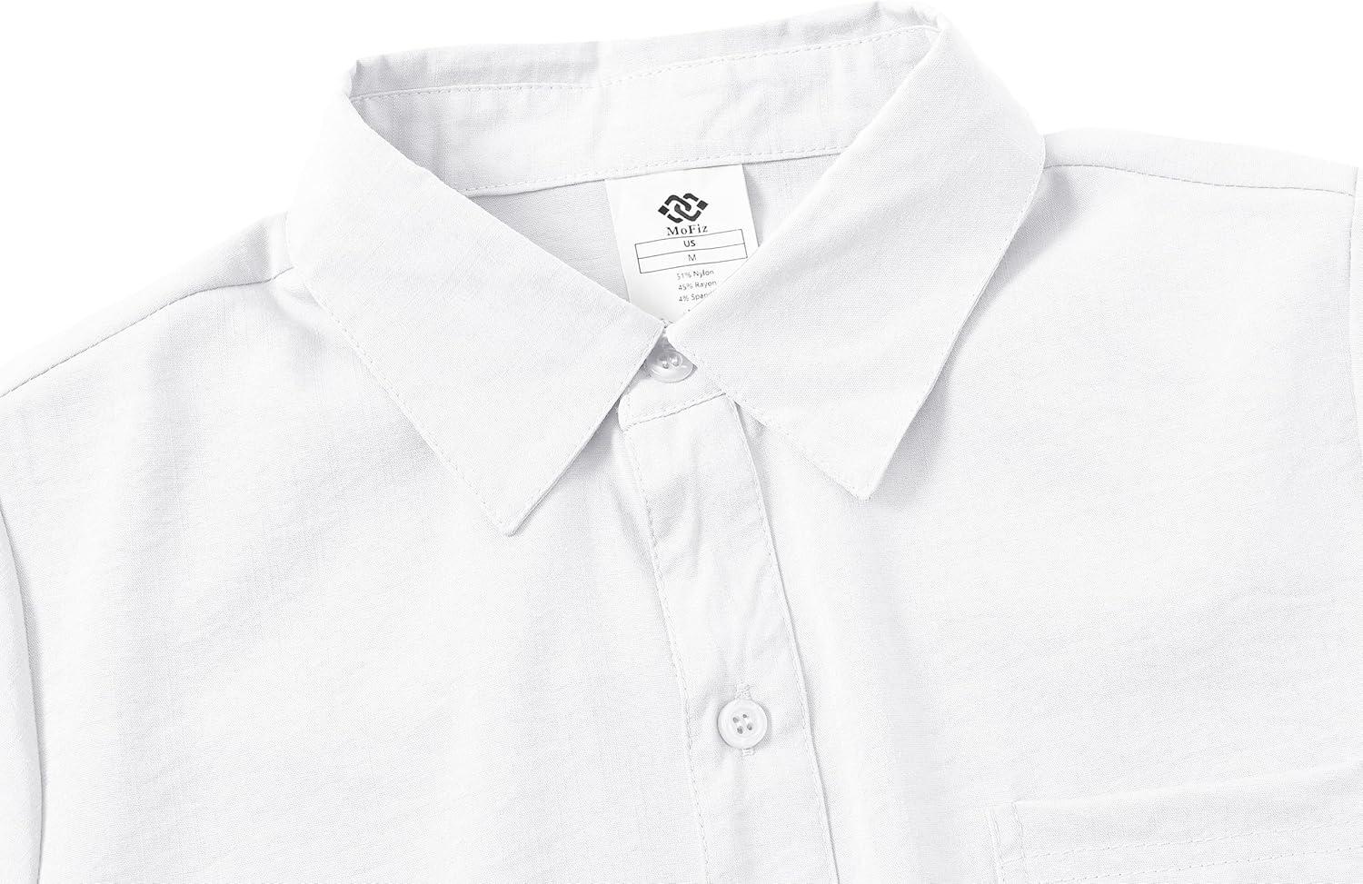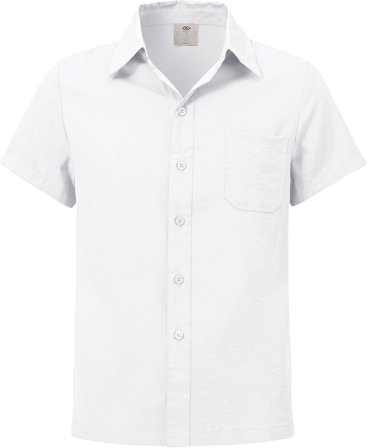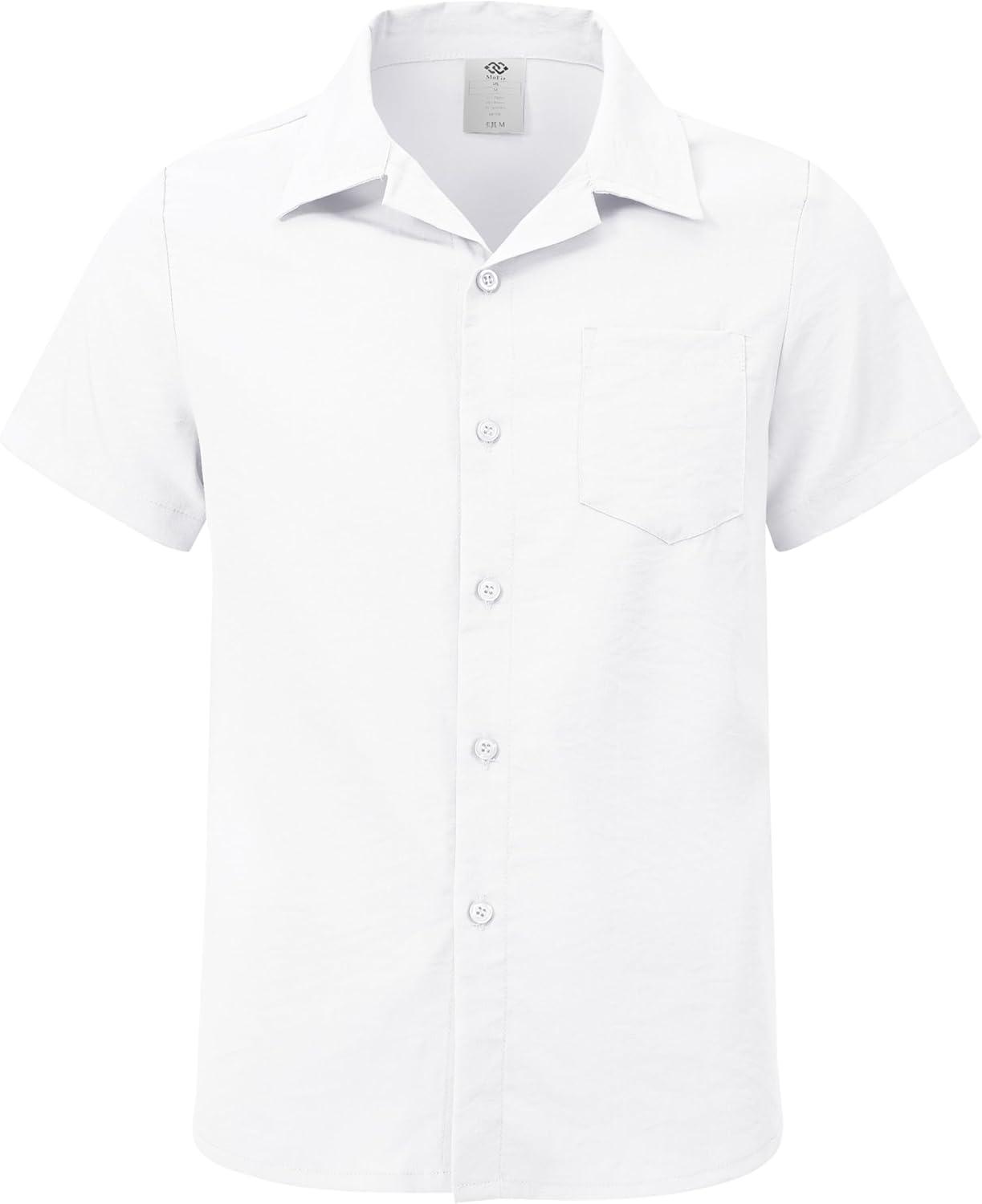 MoFiz Boys Short Sleeve Button Down Shirts Collared Beach Shirt(White)