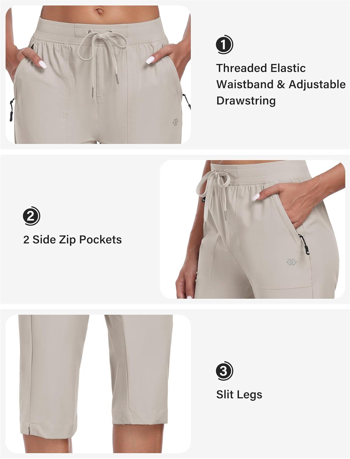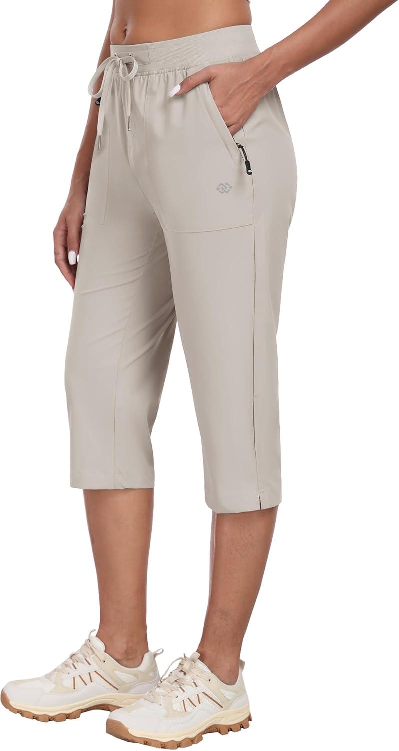 MoFiz Capri Pants for Women Lightweight Ice Cool Capris for Women Casual Summer with Zipper Pockets(D01-khaki)