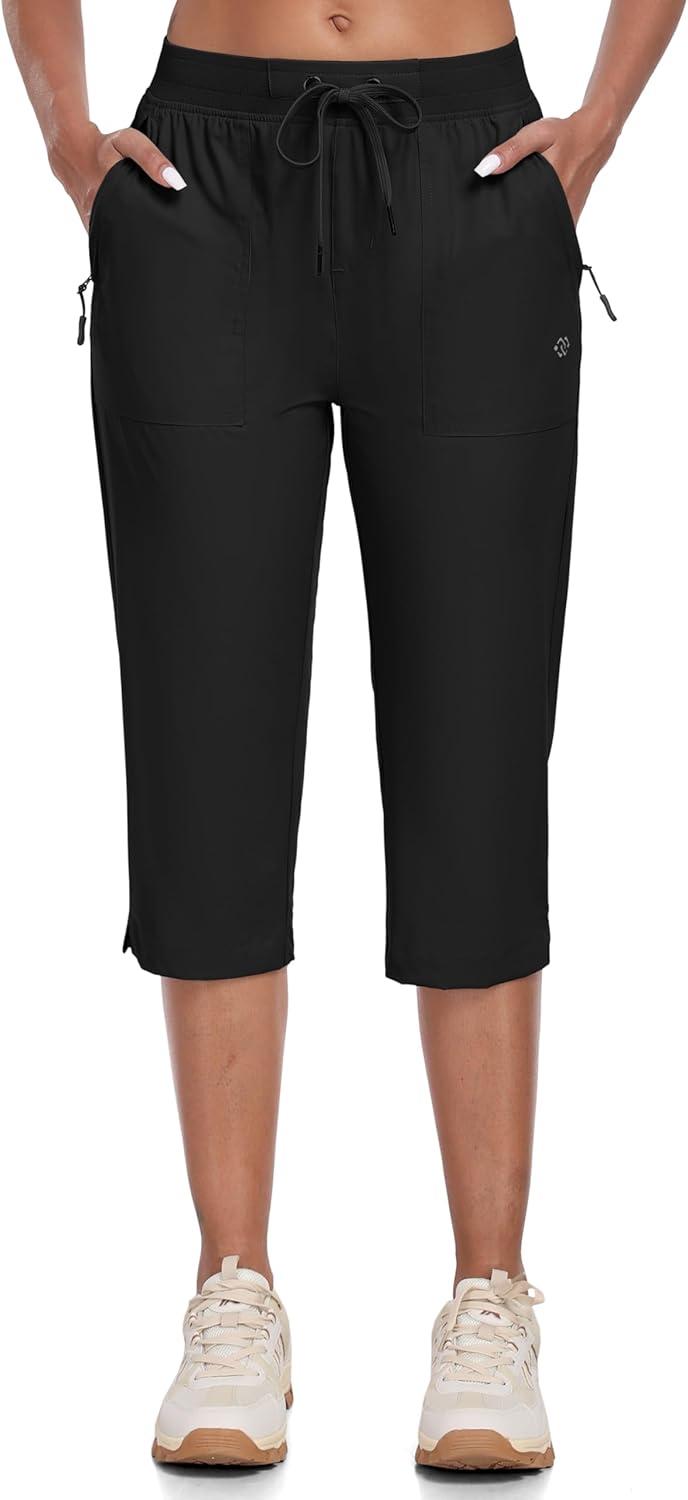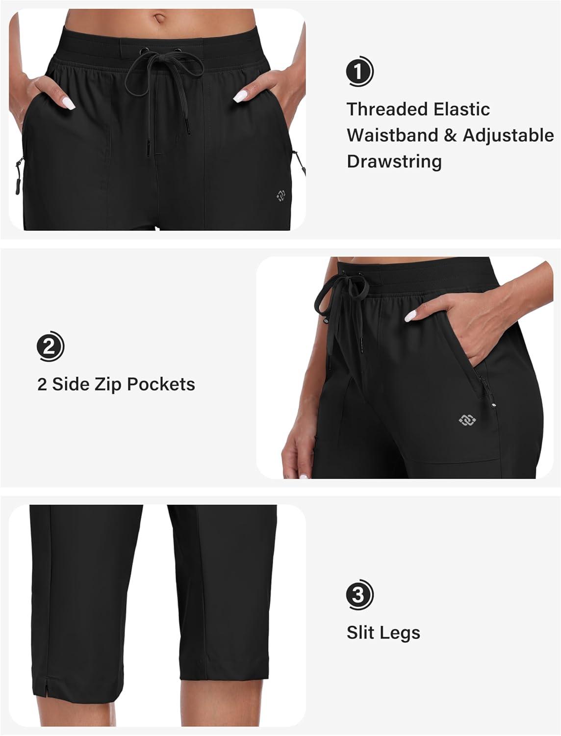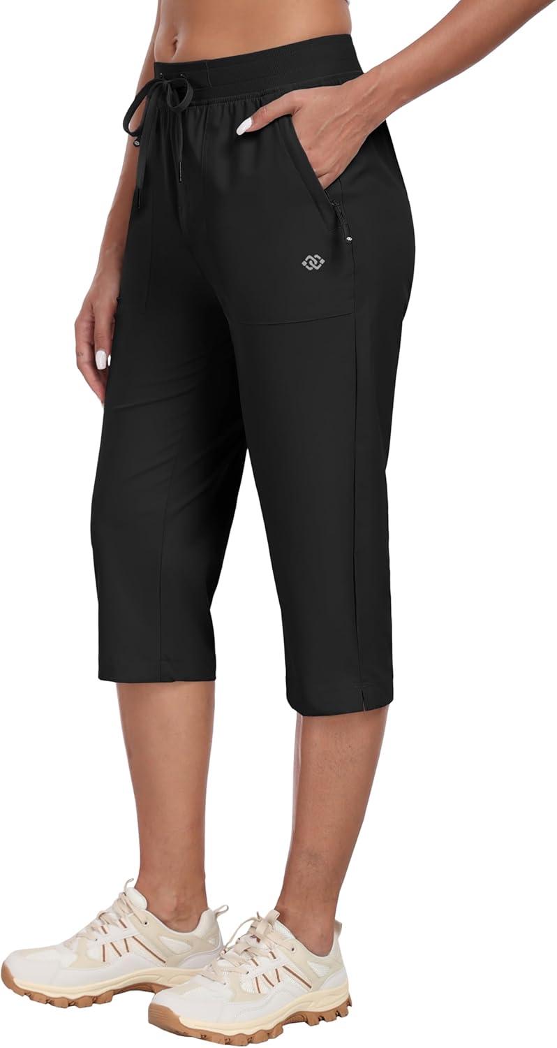 MoFiz Capri Pants for Women Lightweight Ice Cool Capris for Women Casual Summer with Zipper Pockets(D02-black)