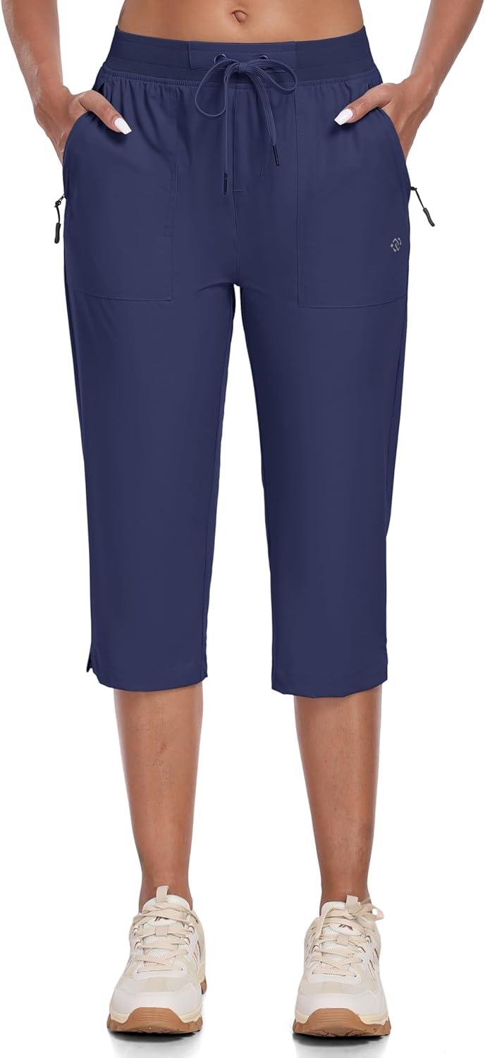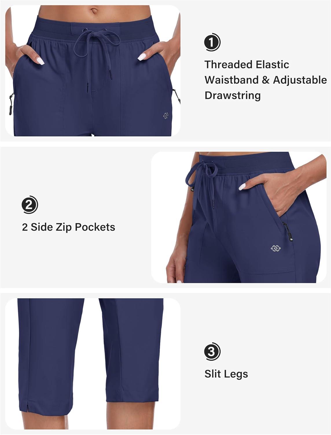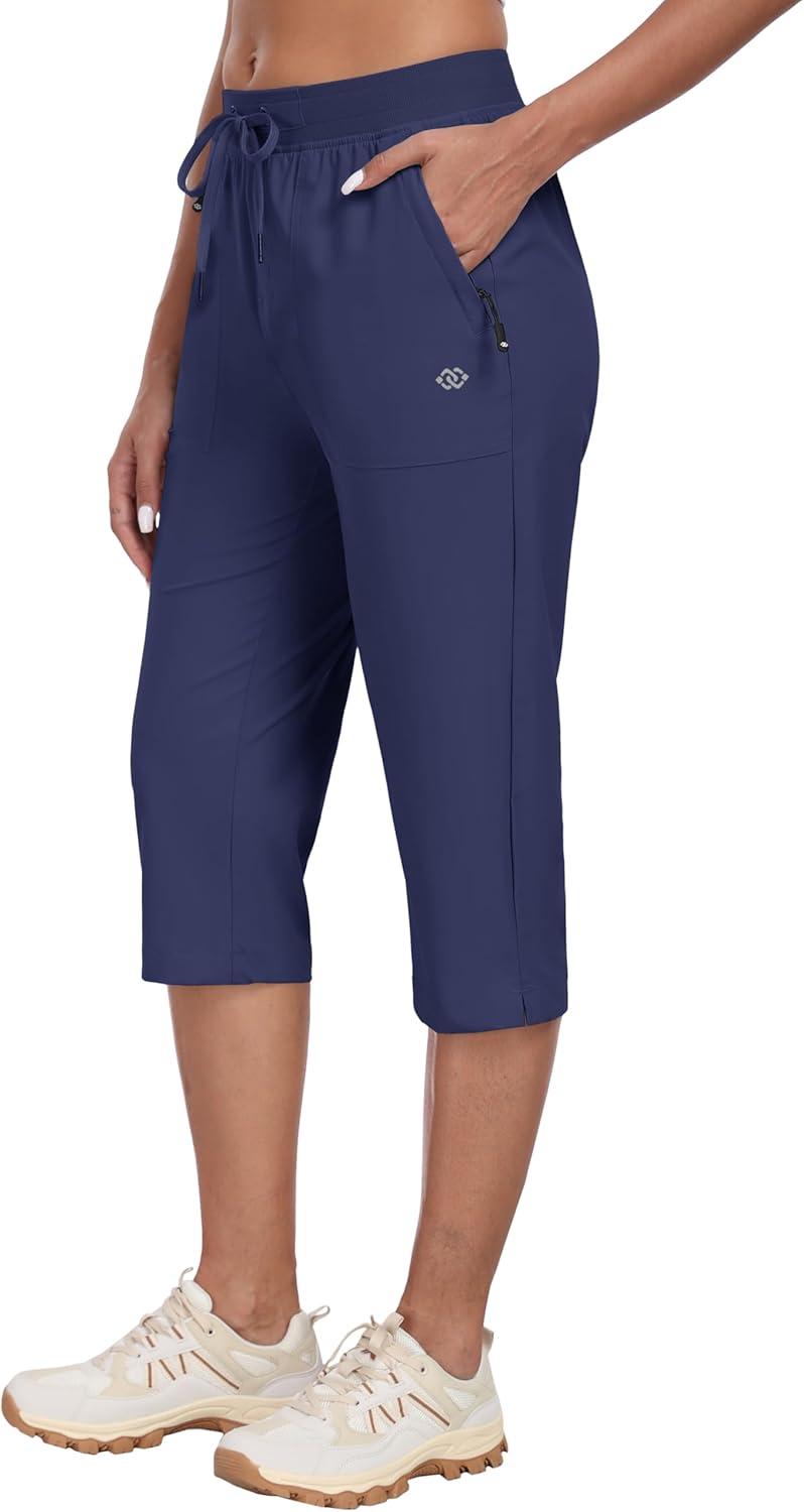 MoFiz Capri Pants for Women Lightweight Ice Cool Capris for Women Casual Summer with Zipper Pockets(D03-navy Blue)