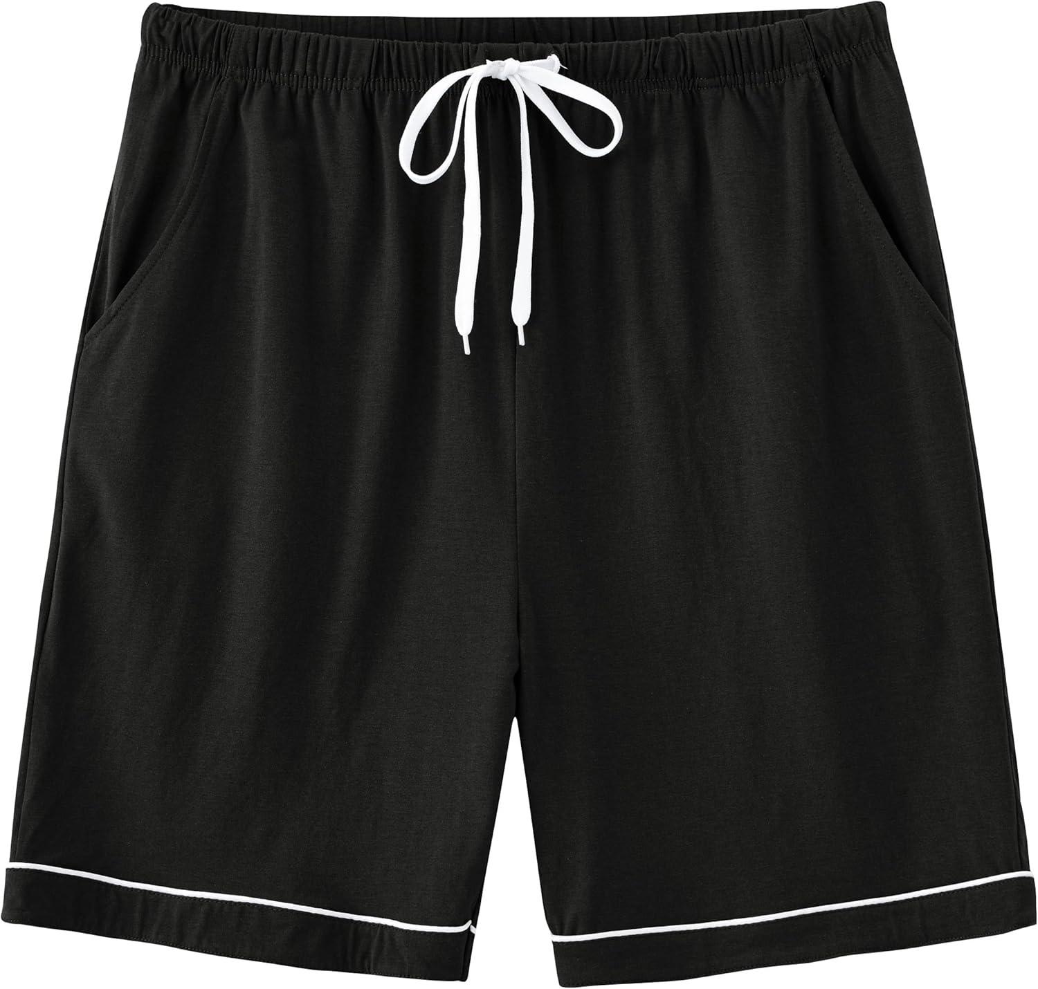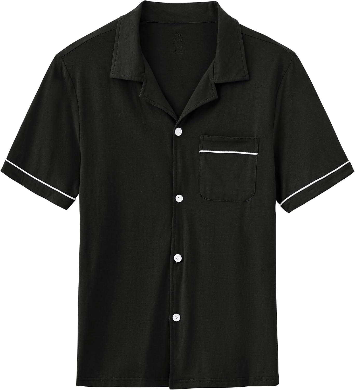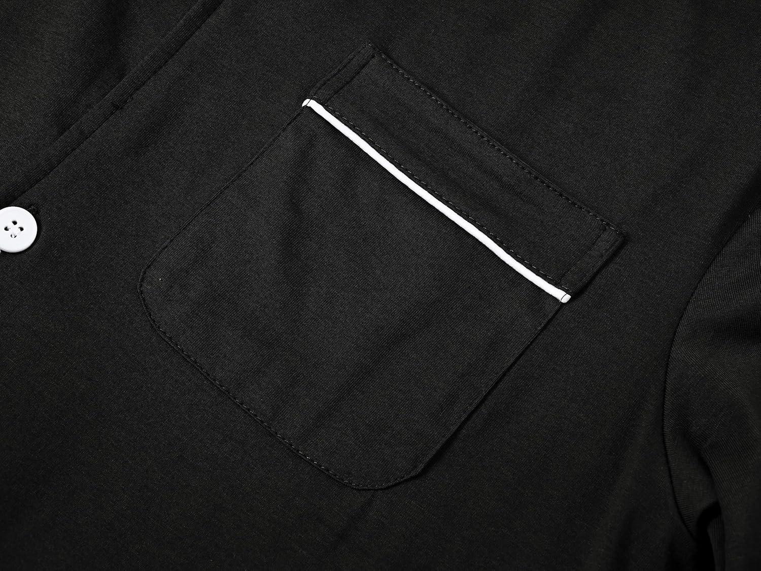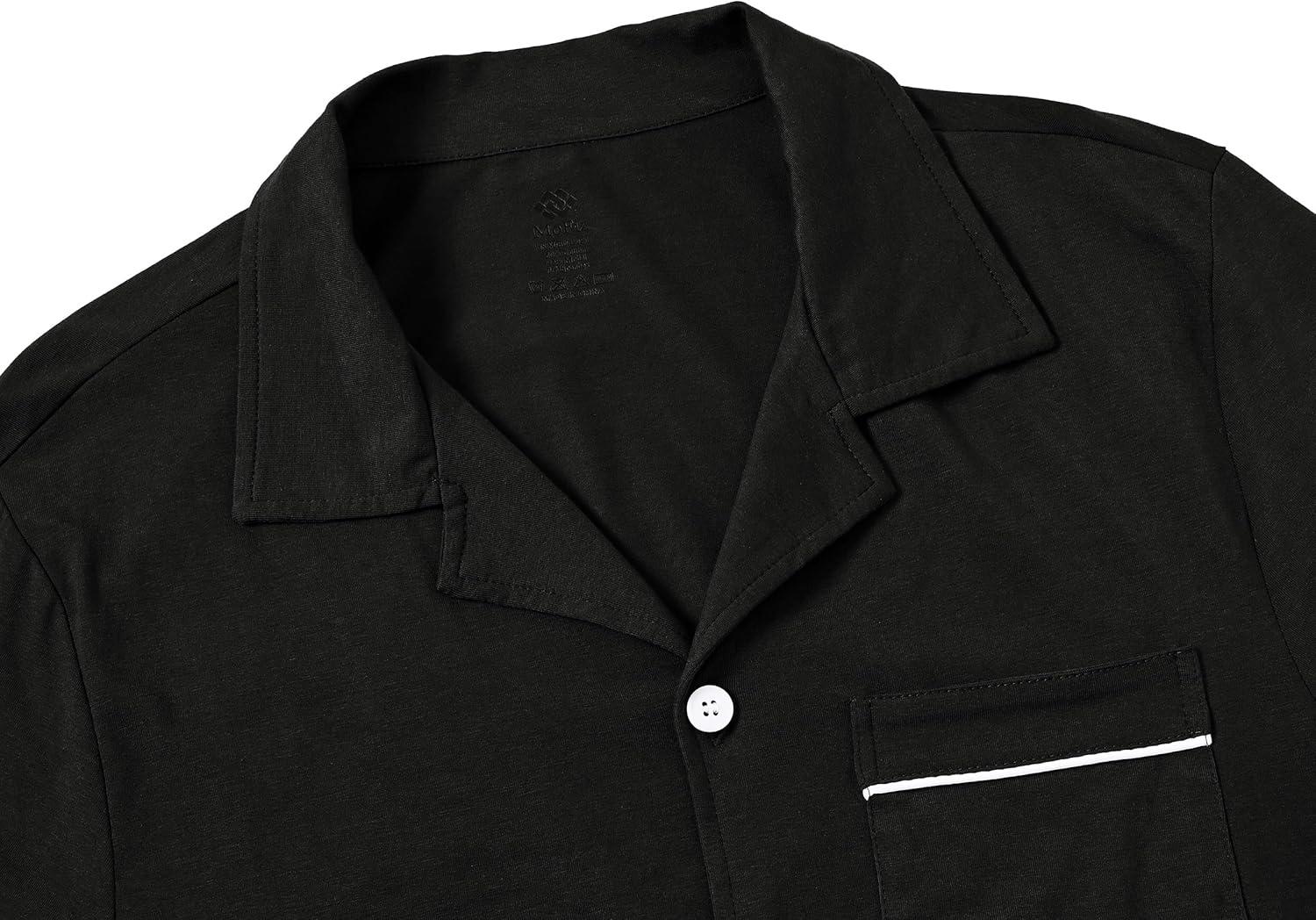 MoFiz Men’s Cotton Pajamas Sets Sleepwear Short Sleeve Button Down Shirt and Pants Loungewear Soft Pjs Lounge Set(Black)