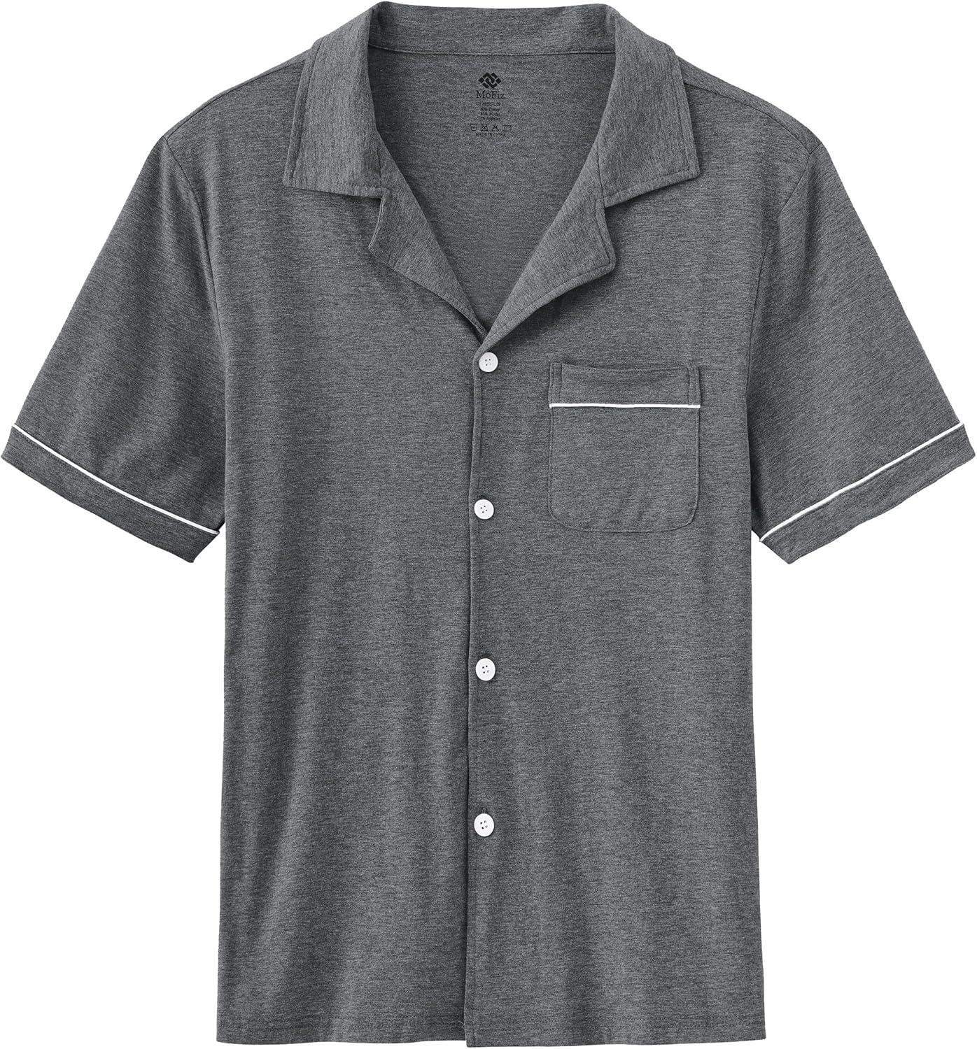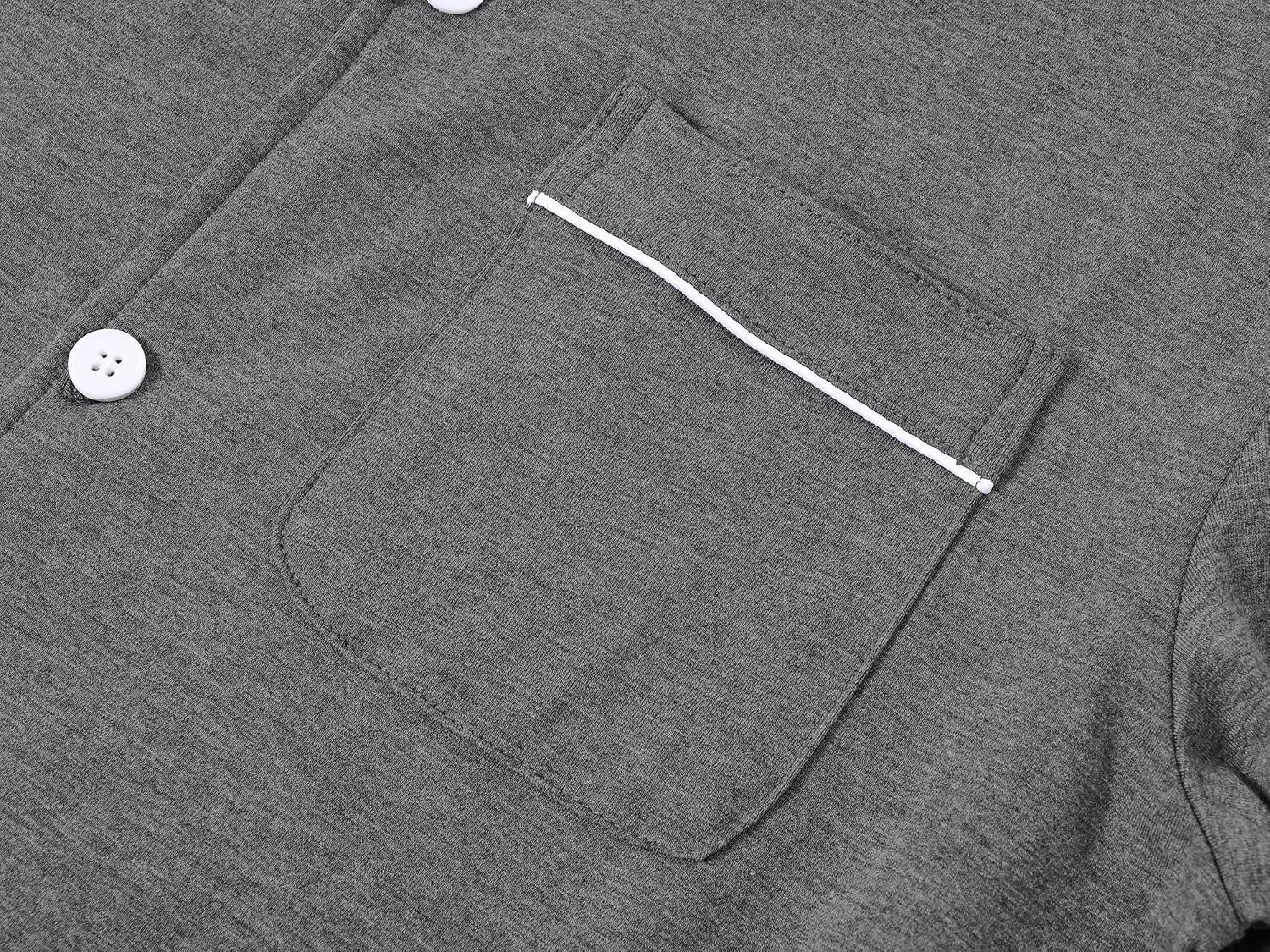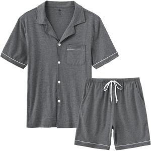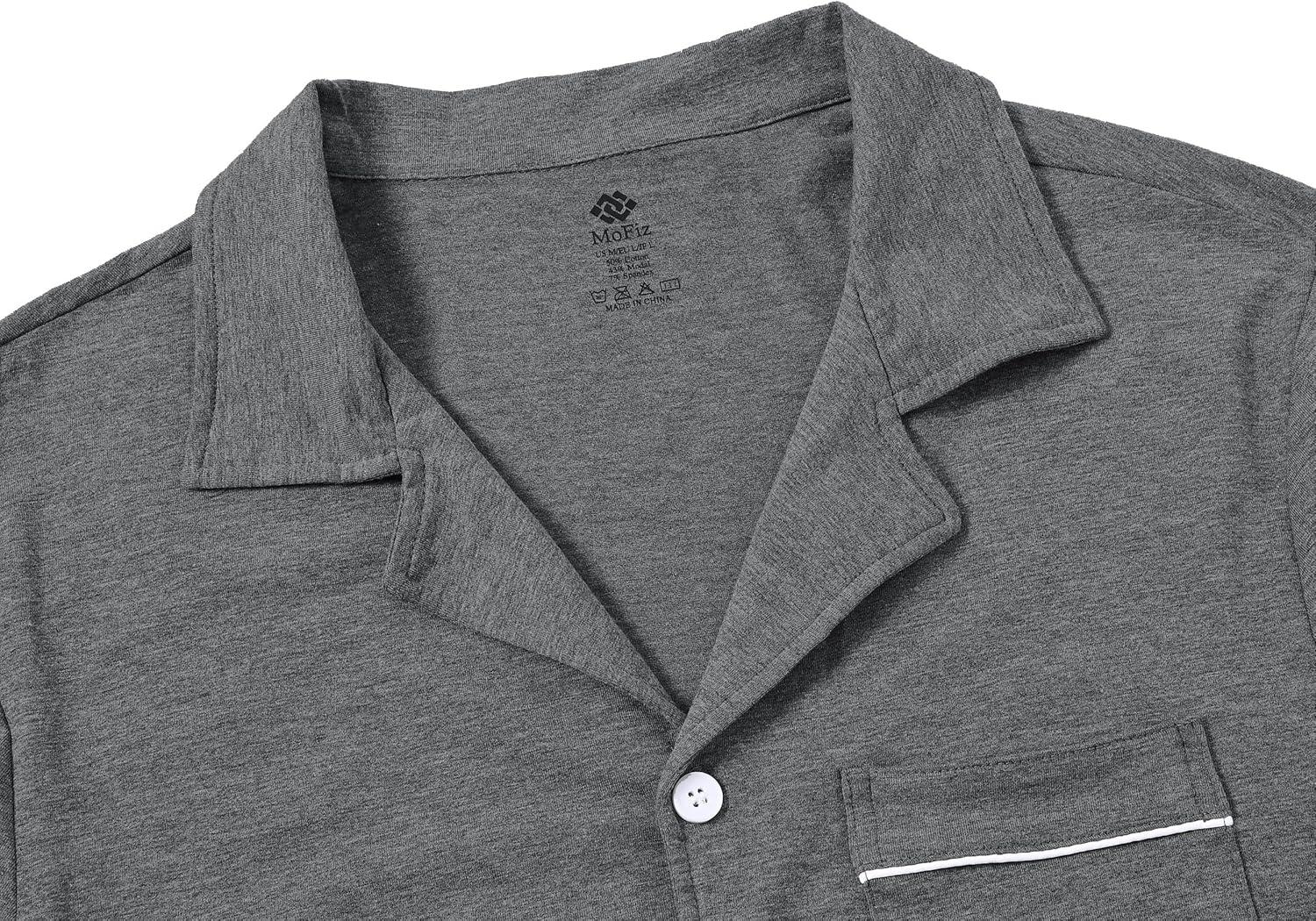 MoFiz Men’s Cotton Pajamas Sets Sleepwear Short Sleeve Button Down Shirt and Pants Loungewear Soft Pjs Lounge Set(Dark Grey)