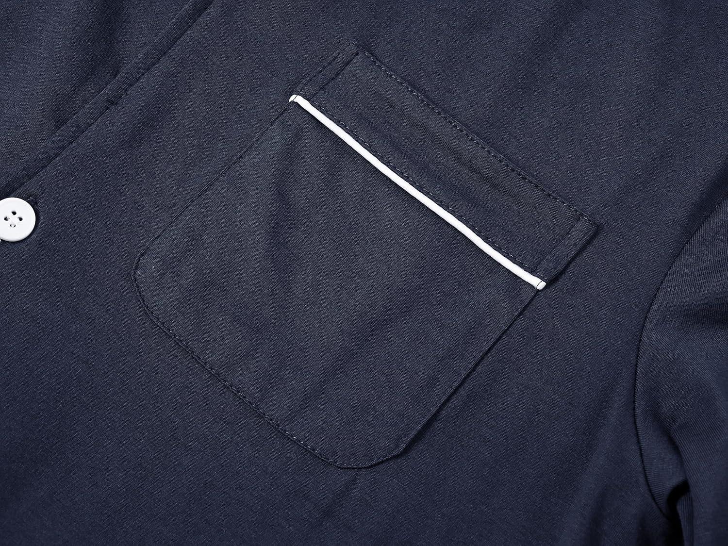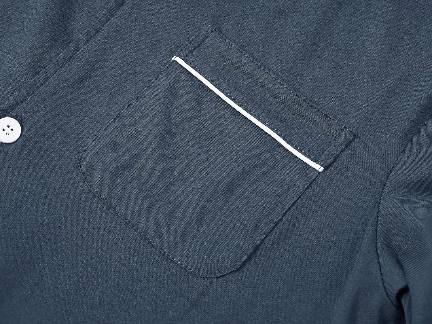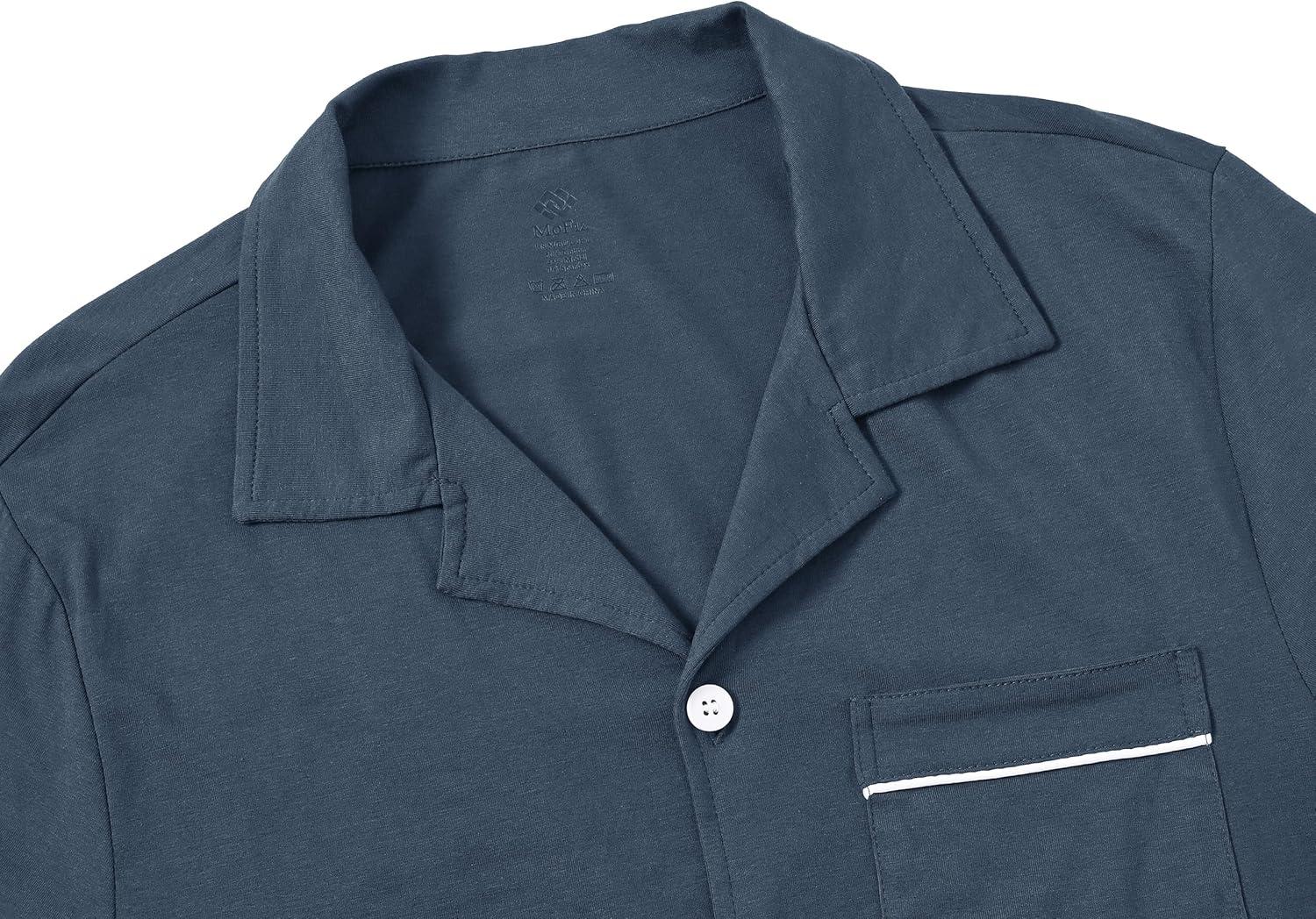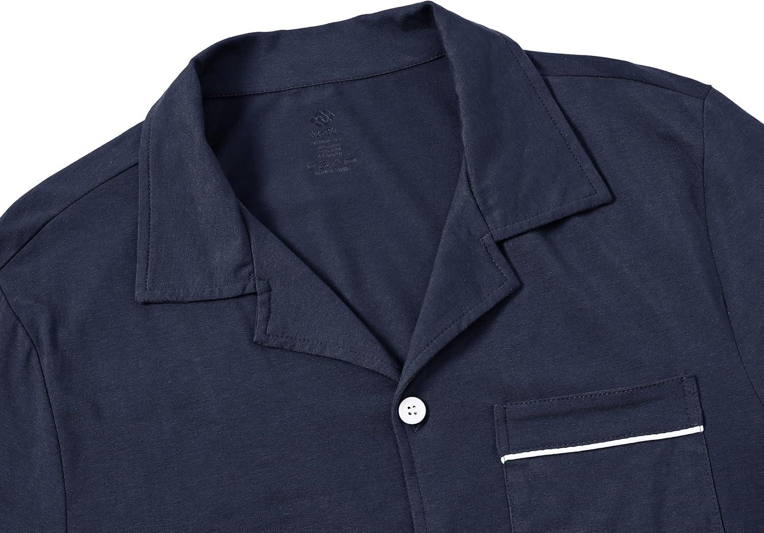 MoFiz Men’s Cotton Pajamas Sets Sleepwear Short Sleeve Button Down Shirt and Pants Loungewear Soft Pjs Lounge Set(Navy Blue)