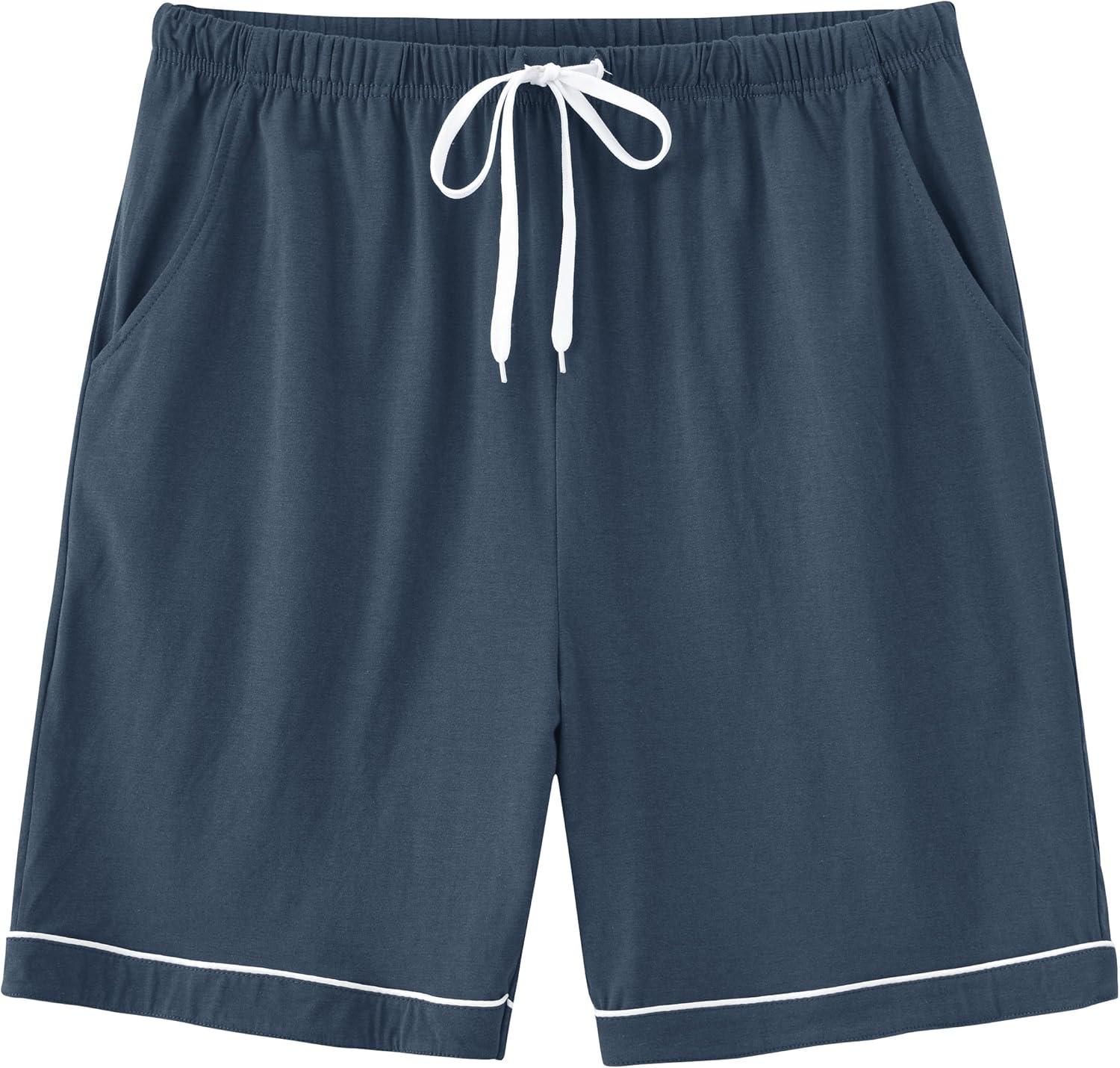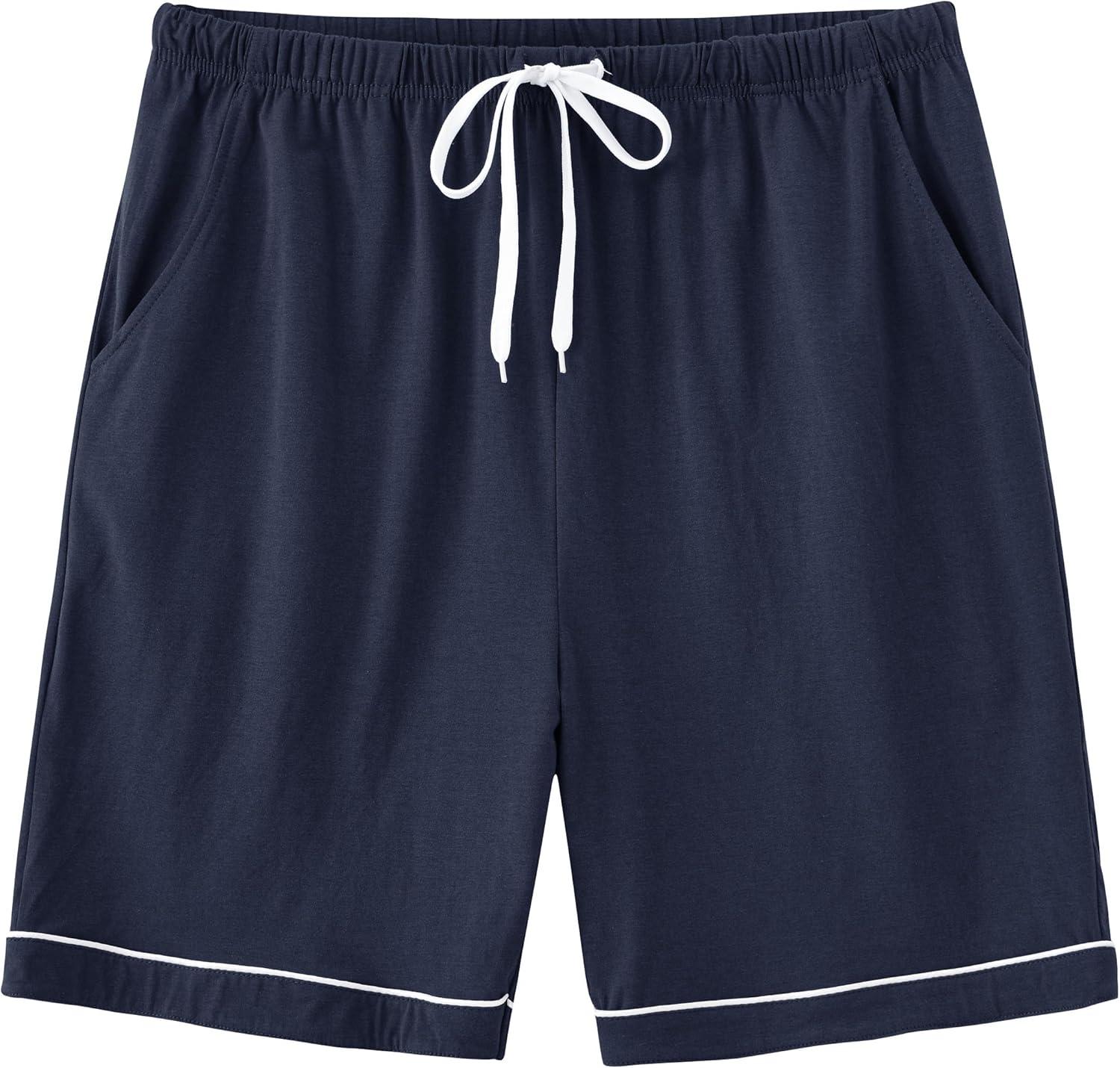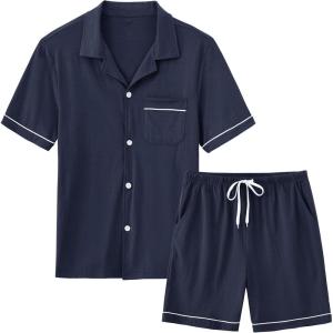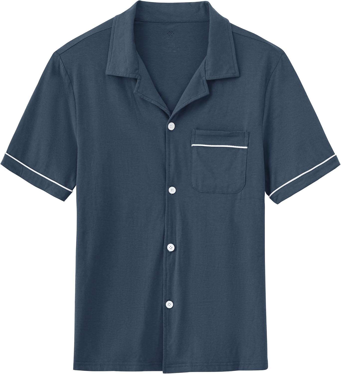 MoFiz Men’s Cotton Pajamas Sets Sleepwear Short Sleeve Button Down Shirt and Pants Loungewear Soft Pjs Lounge Set(Navy Blue)