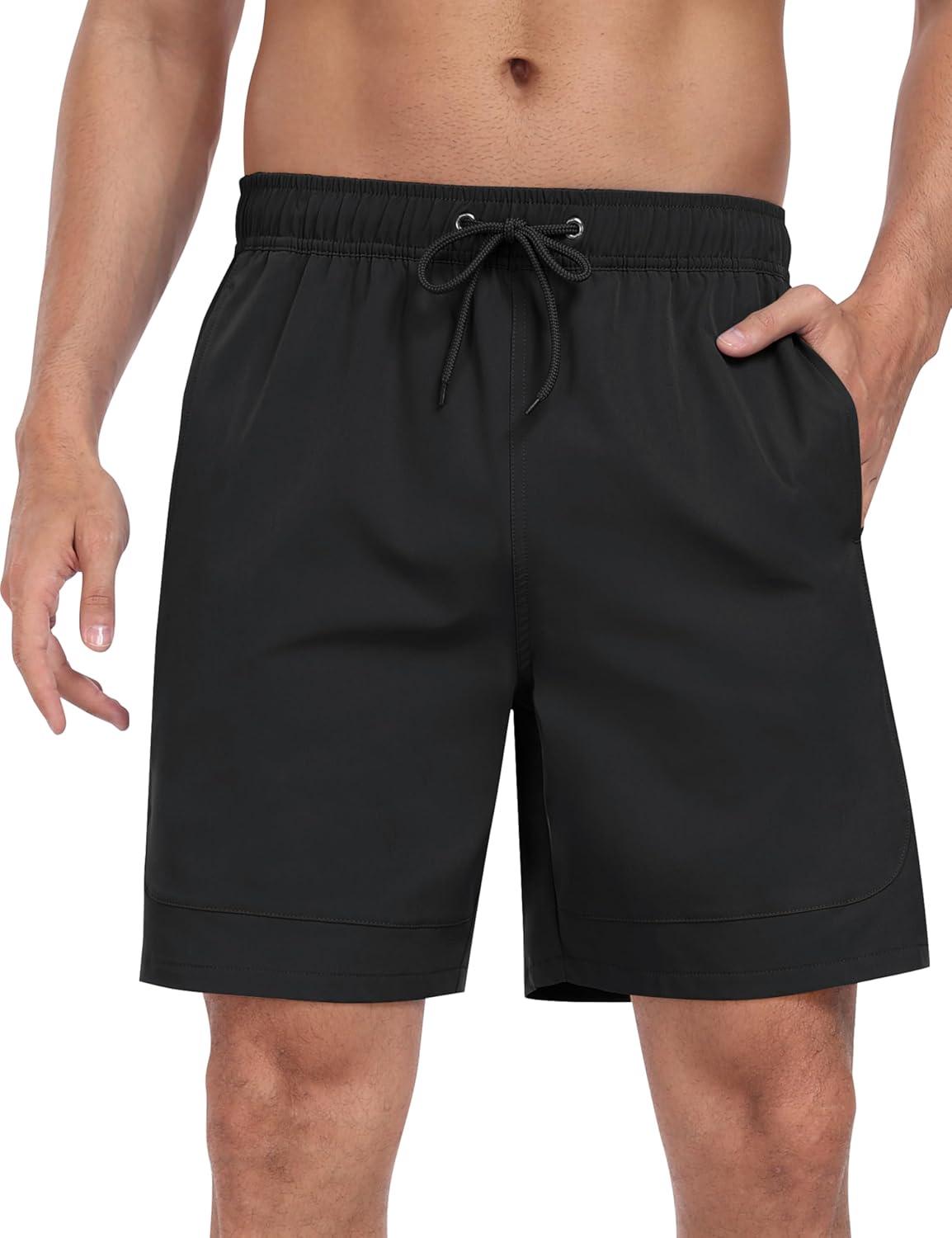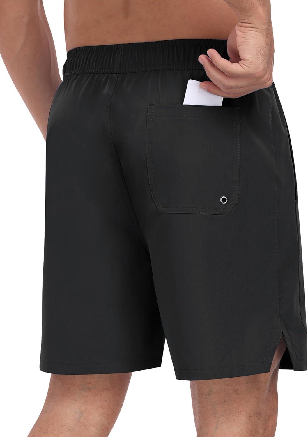 MoFiz Men’s Swim Trunks 9″ Quick Dry Mens Broad Beach Shorts Stretch Mens Swim Shorts(Black)