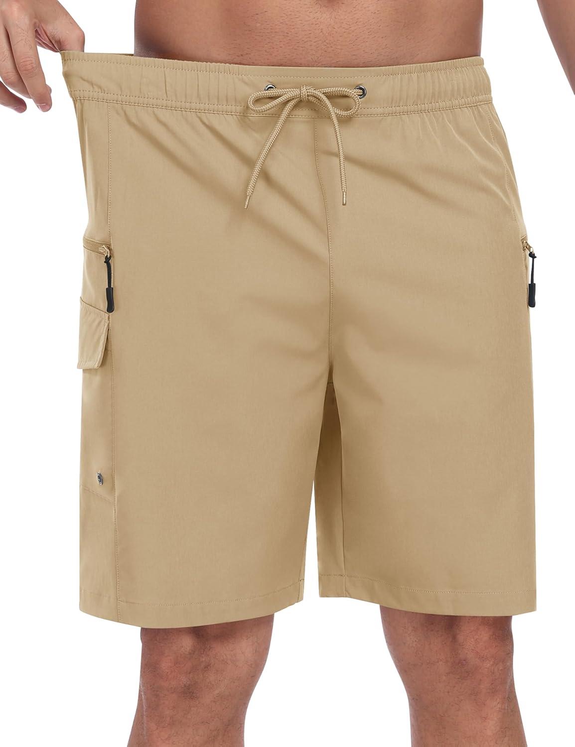 MoFiz Men’s Swim Trunks 9″ Quick Dry Mens Broad Beach Shorts Stretch Mens Swim Shorts(Khaki)