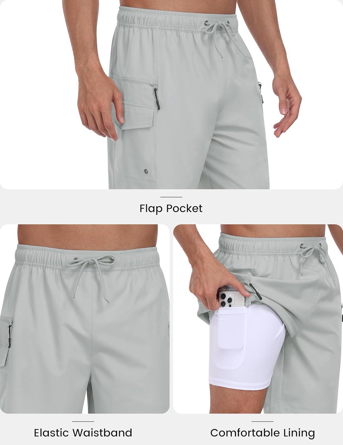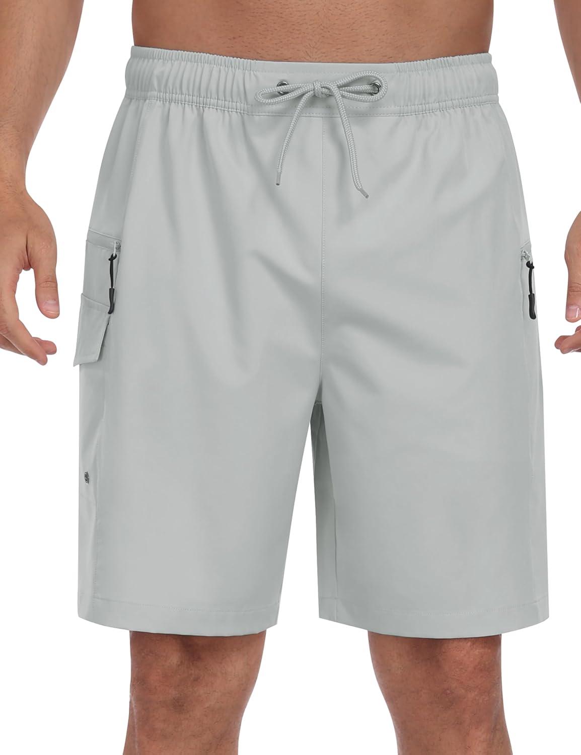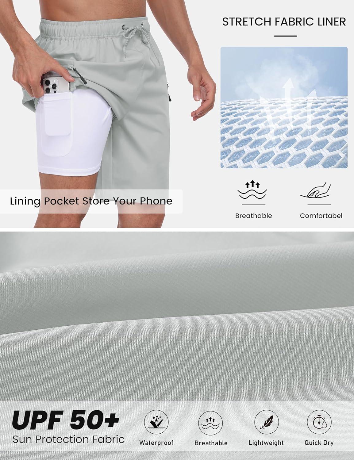 MoFiz Men’s Swim Trunks 9″ Quick Dry Mens Broad Beach Shorts Stretch Mens Swim Shorts(Light Grey)