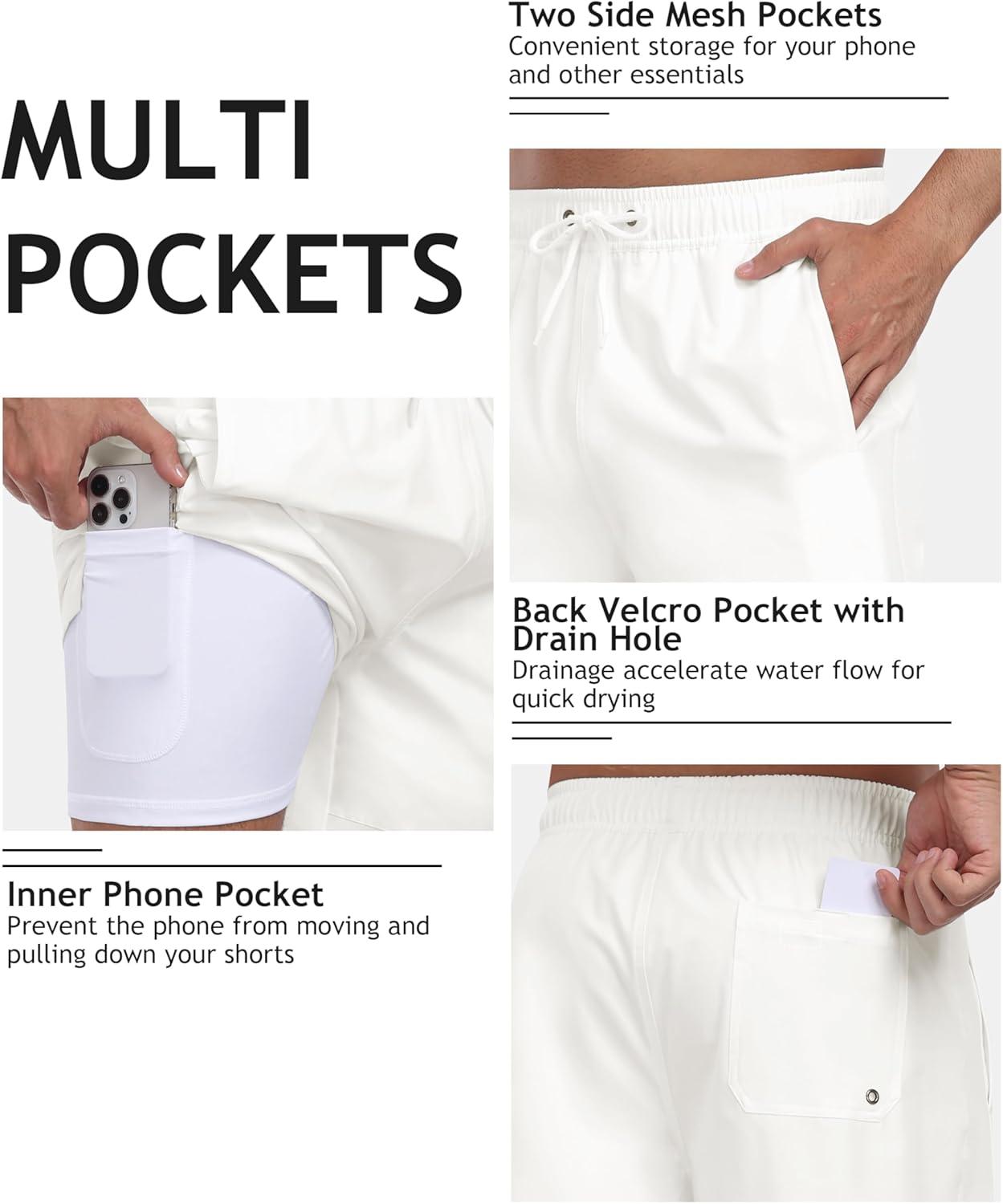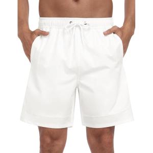 MoFiz Men’s Swim Trunks 9″ Quick Dry Mens Broad Beach Shorts Stretch Mens Swim Shorts(White)