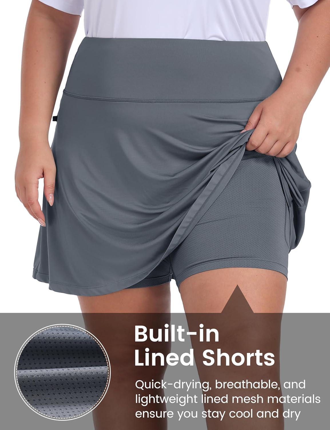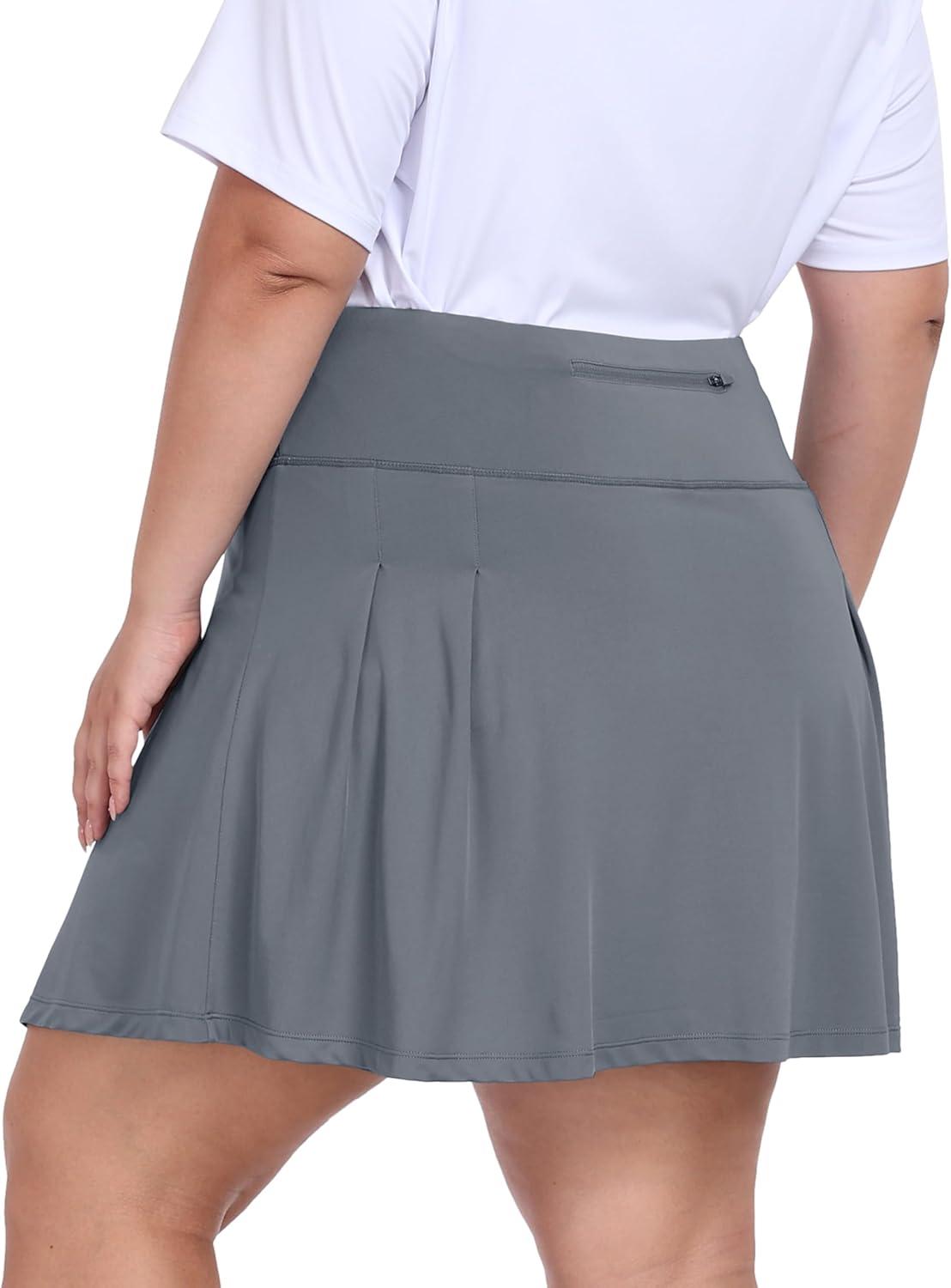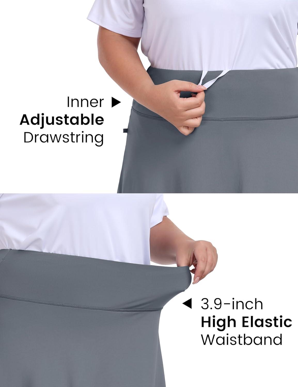 • MoFiz Plus Size 20″ Knee Length Skorts Skirts for Women Golf Tennis Skort High Waisted Athletic Skirt for Summer Casual(Grey)