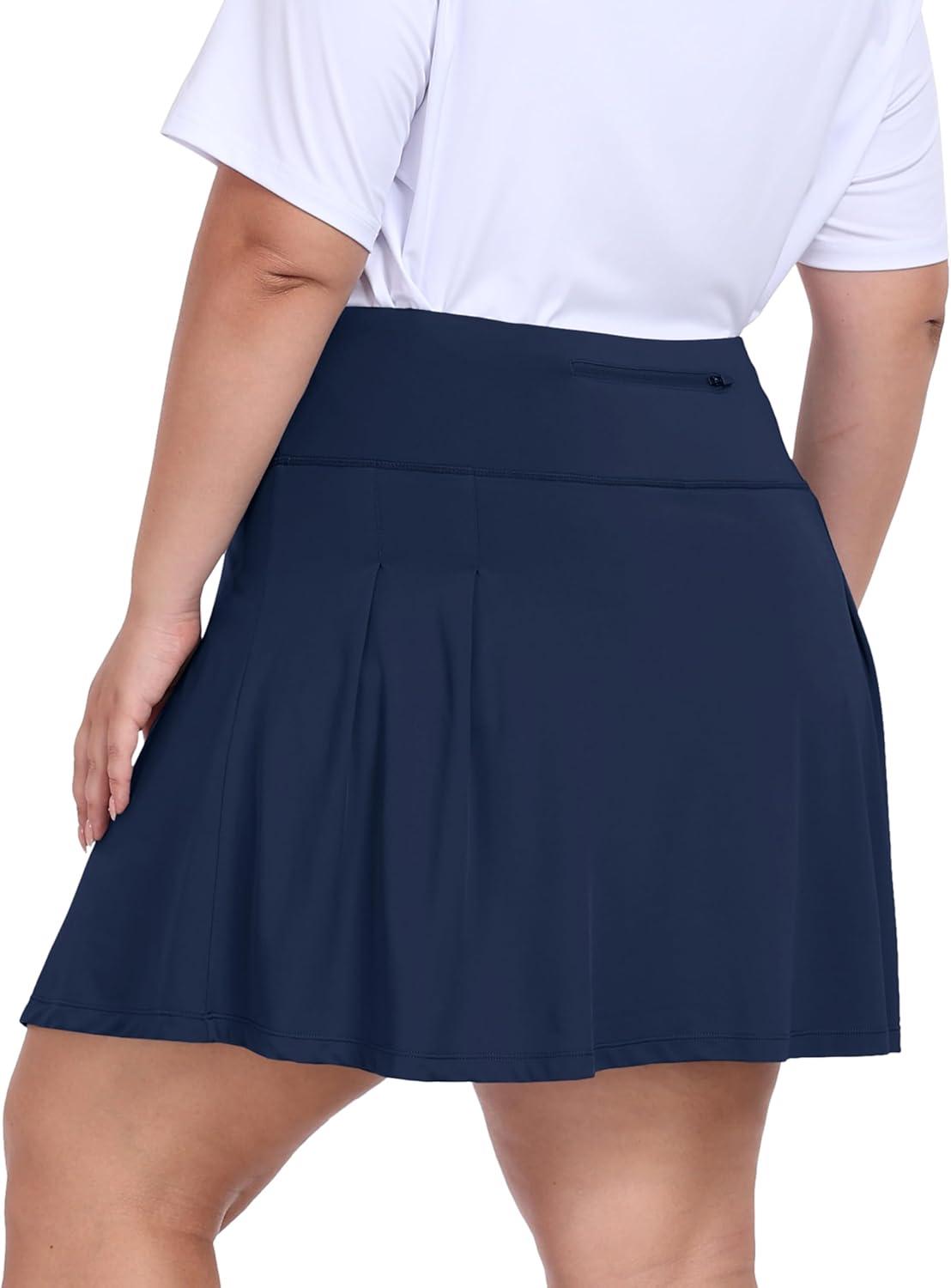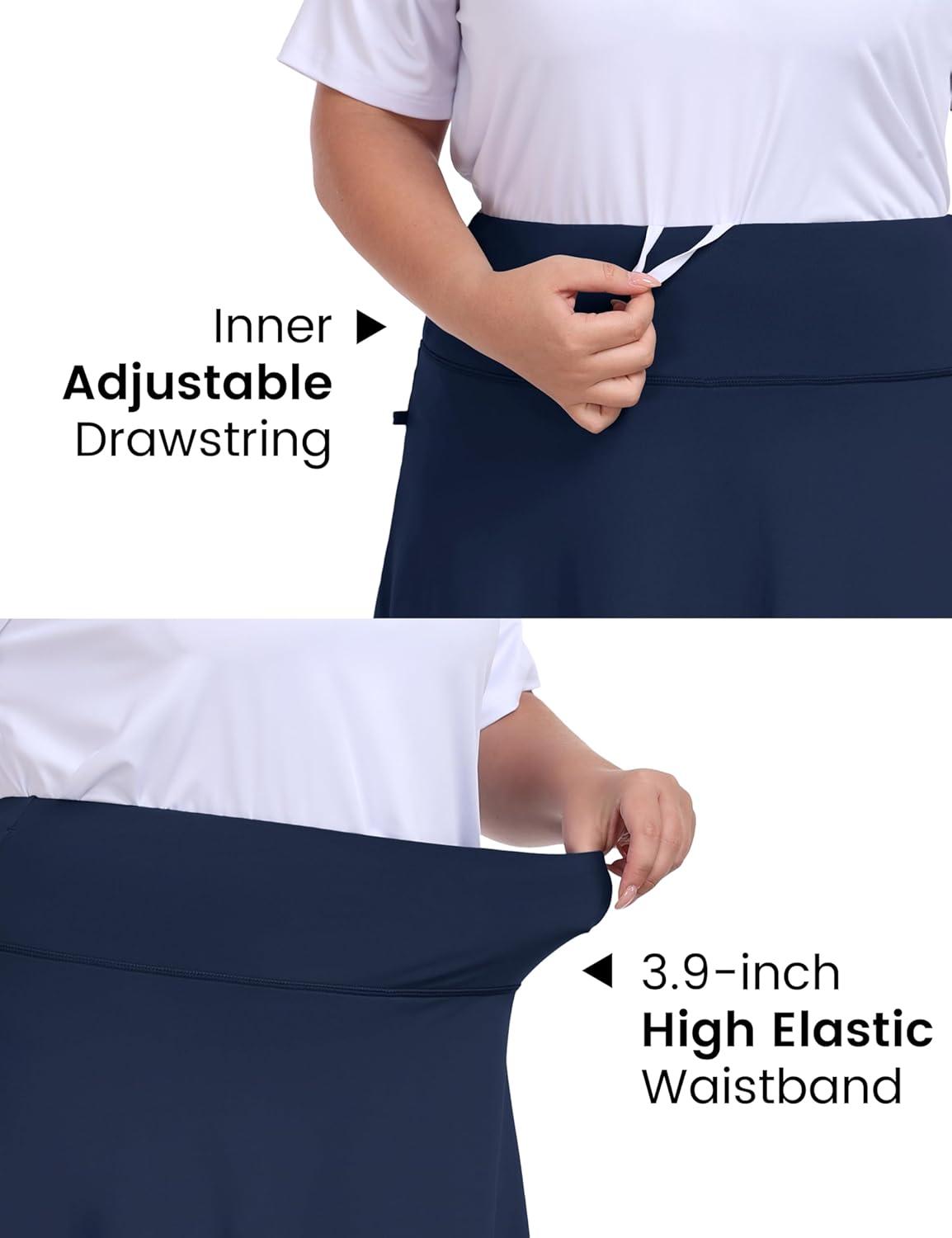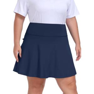 • MoFiz Plus Size 20″ Knee Length Skorts Skirts for Women Golf Tennis Skort High Waisted Athletic Skirt for Summer Casual(Navy Blue)