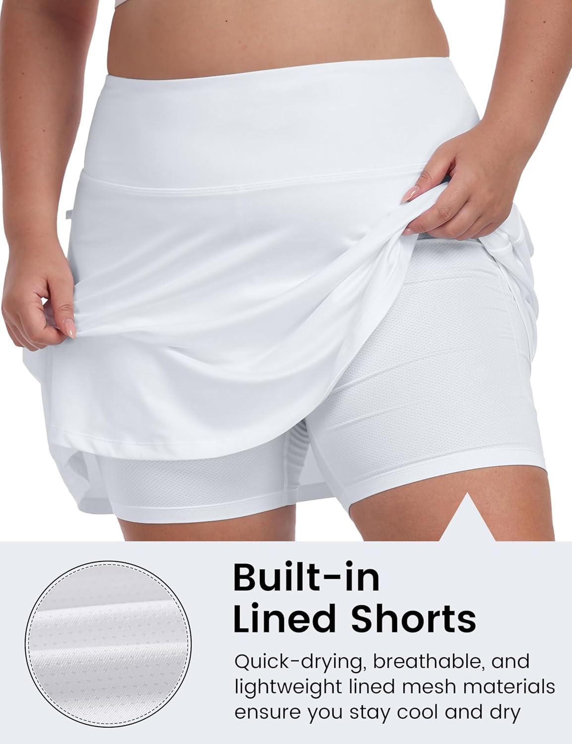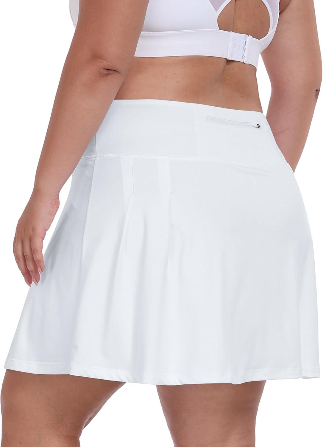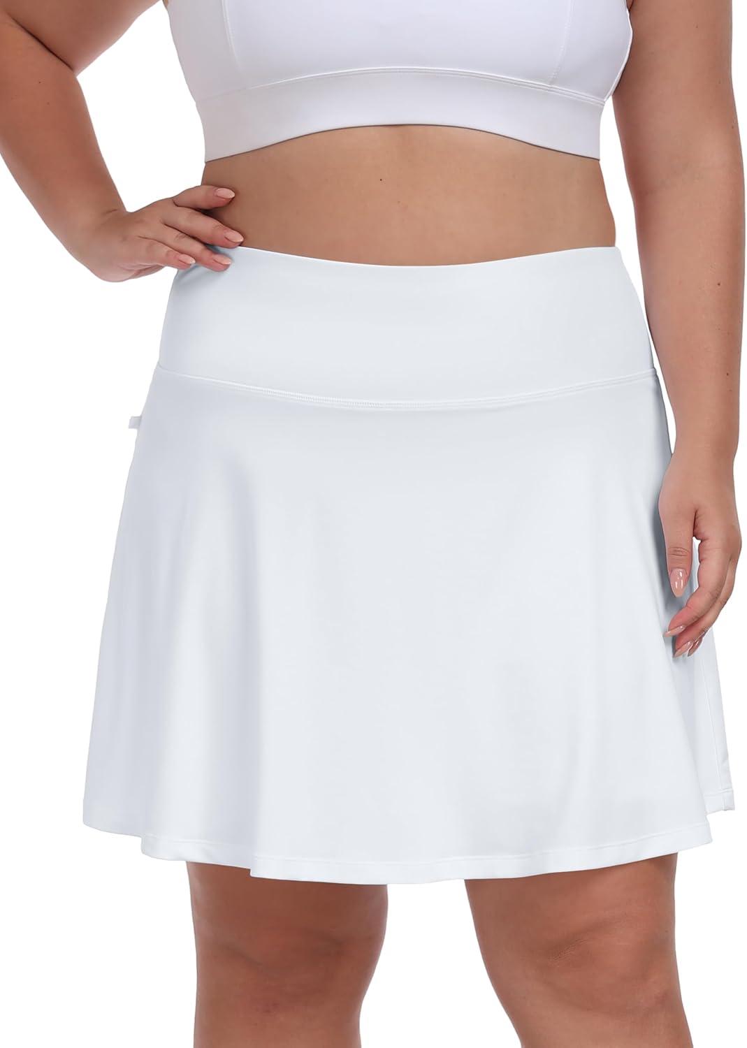 • MoFiz Plus Size 20″ Knee Length Skorts Skirts for Women Golf Tennis Skort High Waisted Athletic Skirt for Summer Casual(White)