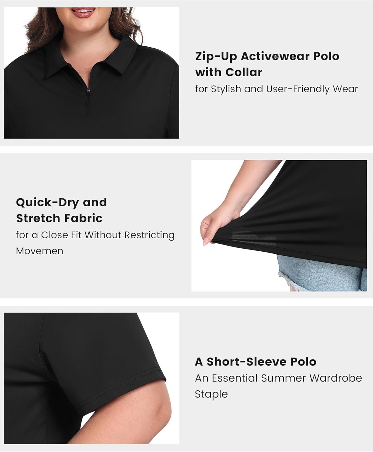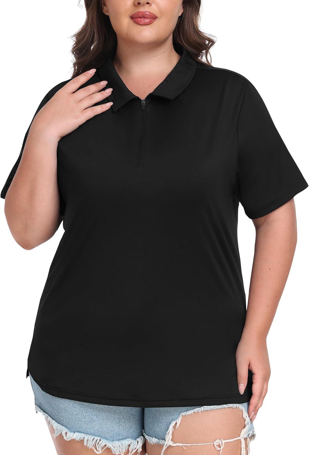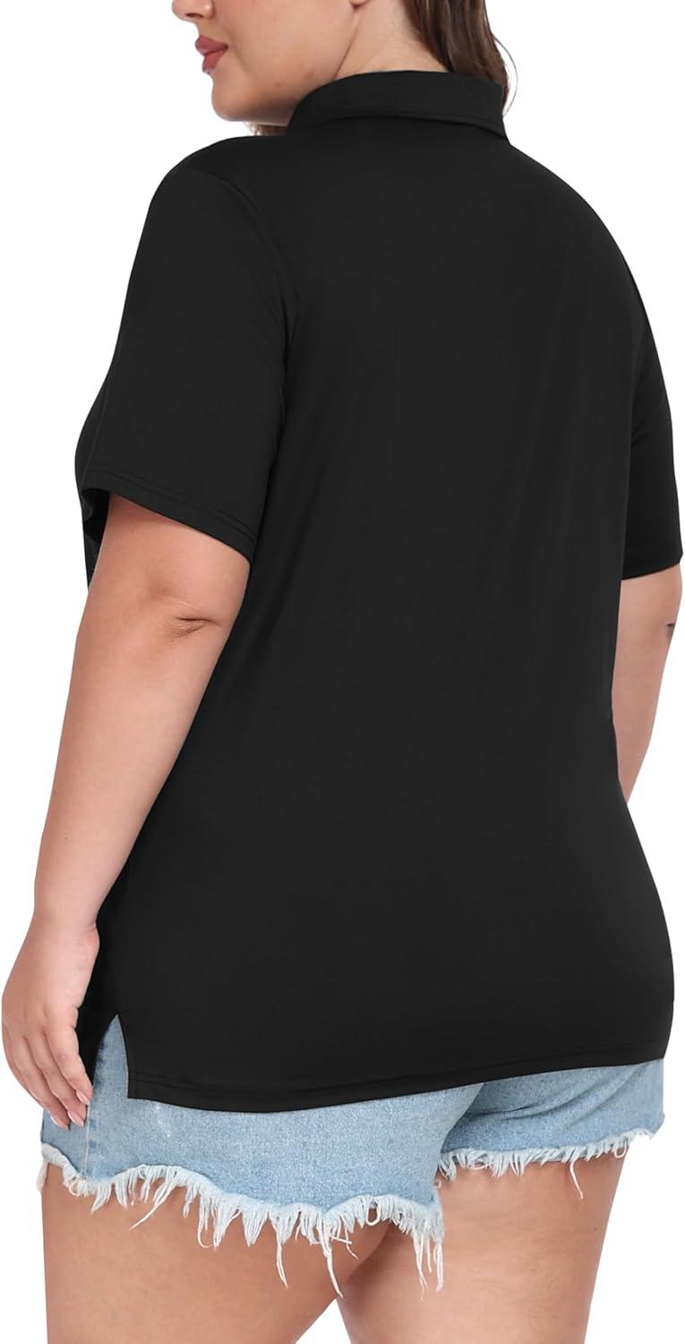 • MoFiz Plus Size Golf Polo Shirts for Women Zip Up Short Sleeve Collared Tennis Workout Tops Sport Athletic Activewear XL-5XL(Black)
