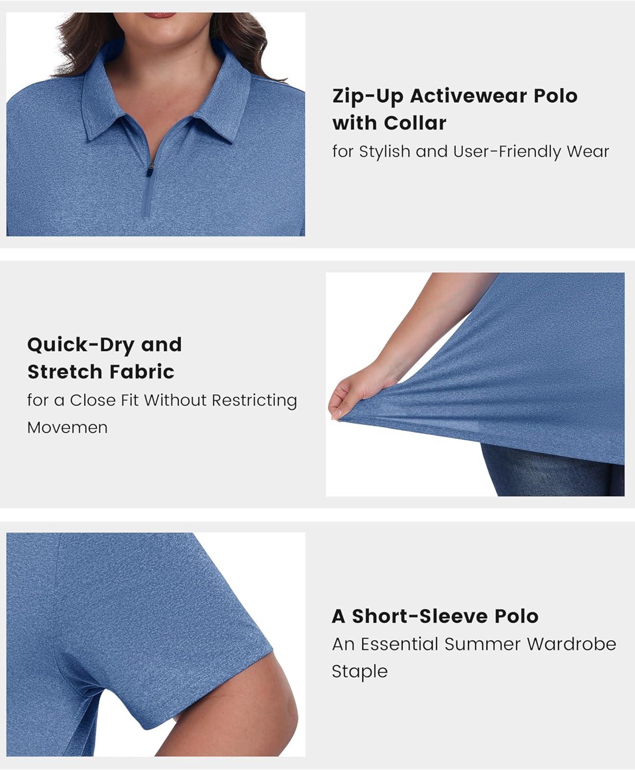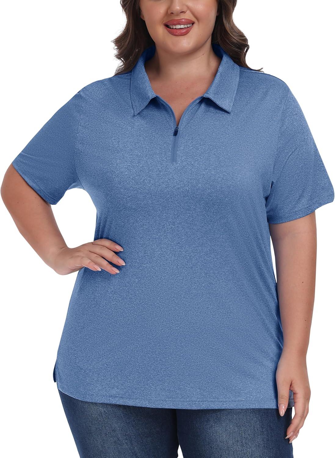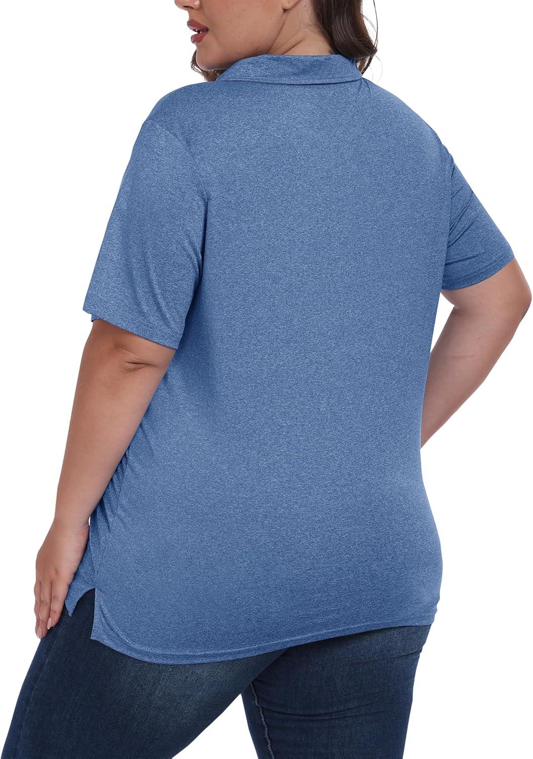 • MoFiz Plus Size Golf Polo Shirts for Women Zip Up Short Sleeve Collared Tennis Workout Tops Sport Athletic Activewear XL-5XL(Blue)