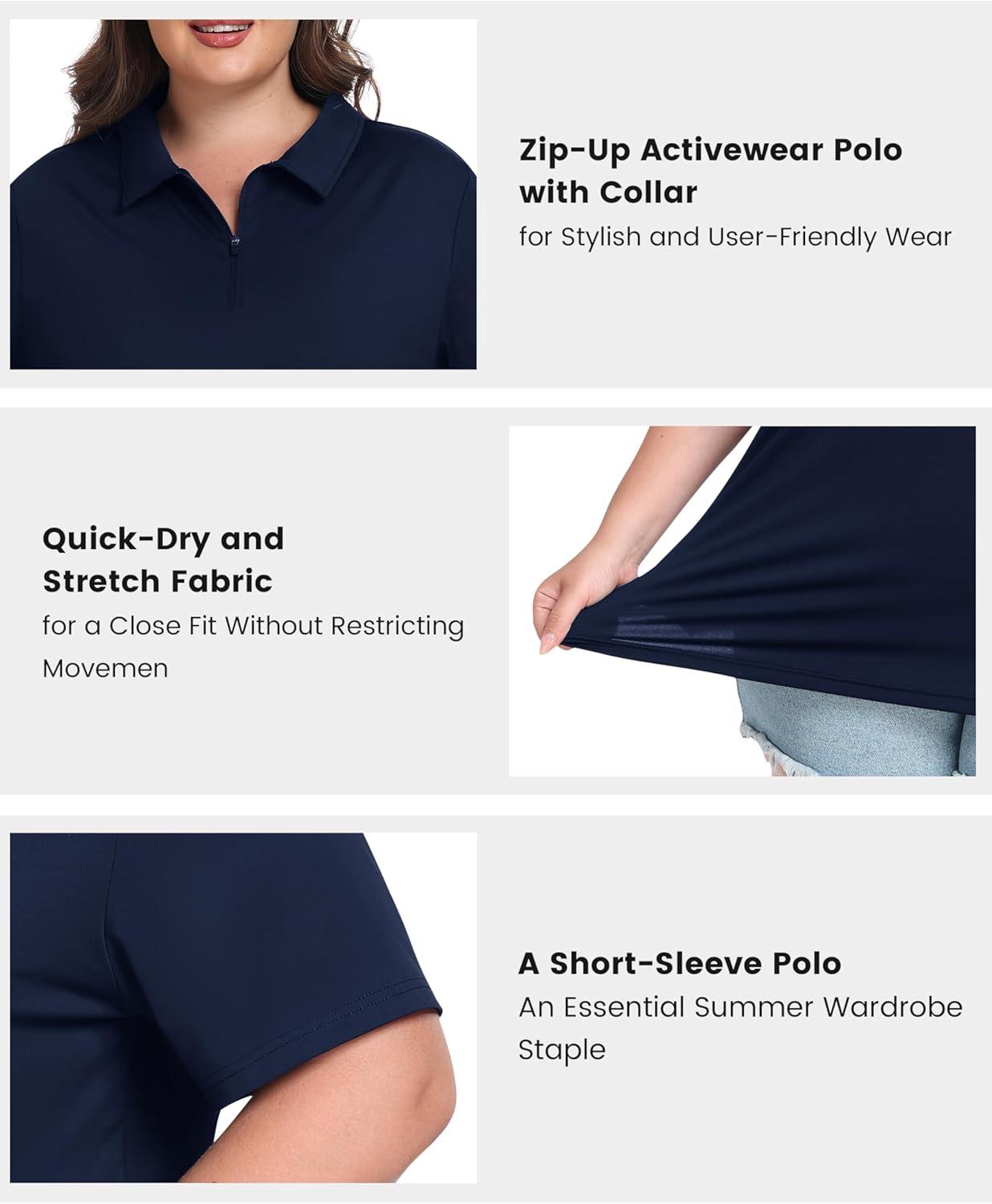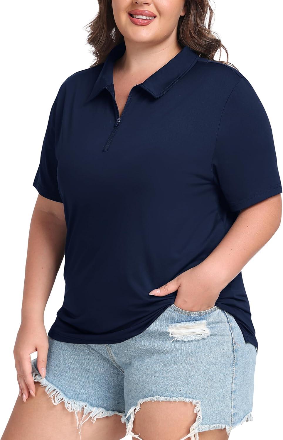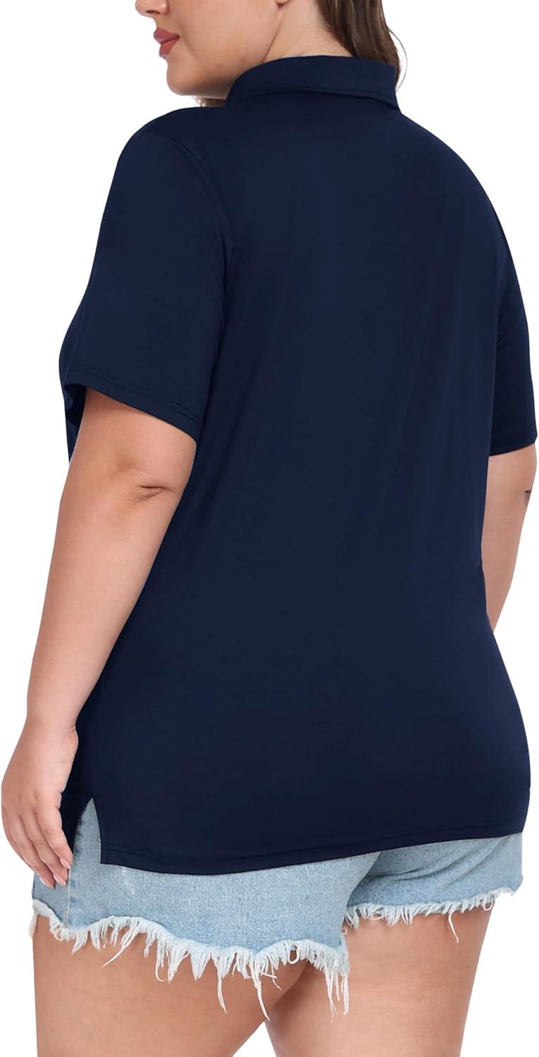 • MoFiz Plus Size Golf Polo Shirts for Women Zip Up Short Sleeve Collared Tennis Workout Tops Sport Athletic Activewear XL-5XL(Navy Blue)