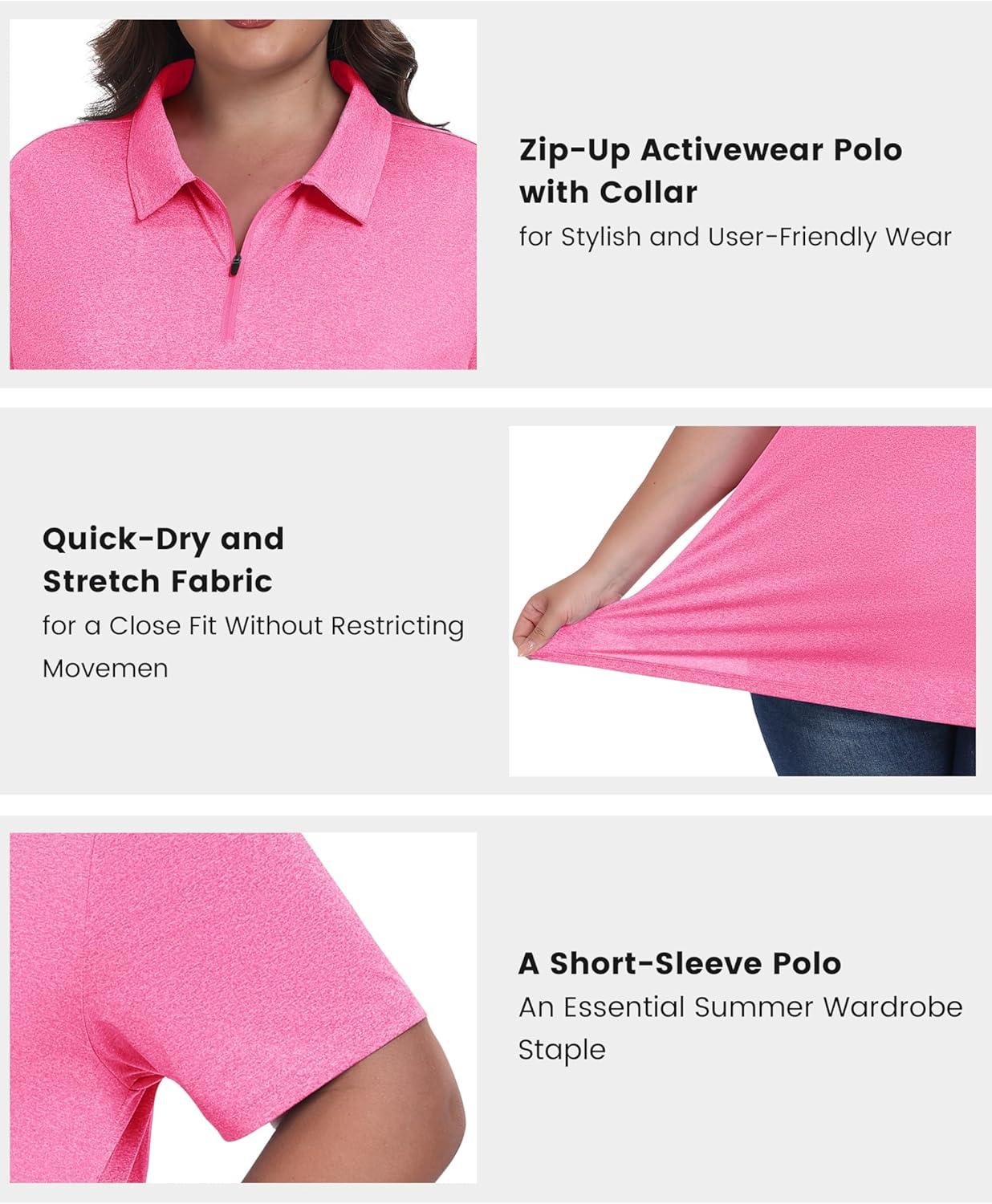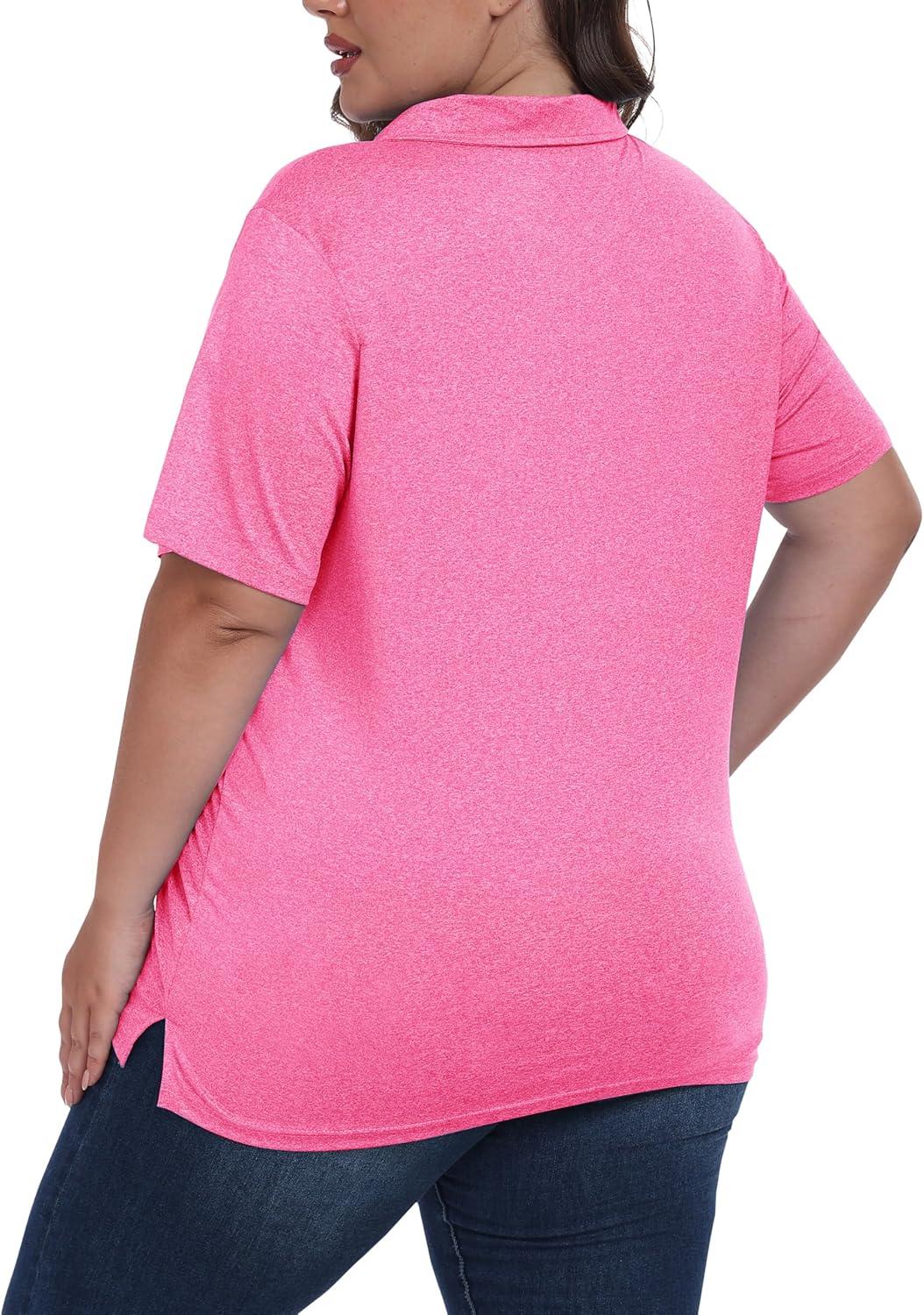 • MoFiz Plus Size Golf Polo Shirts for Women Zip Up Short Sleeve Collared Tennis Workout Tops Sport Athletic Activewear XL-5XL(Rose Red)