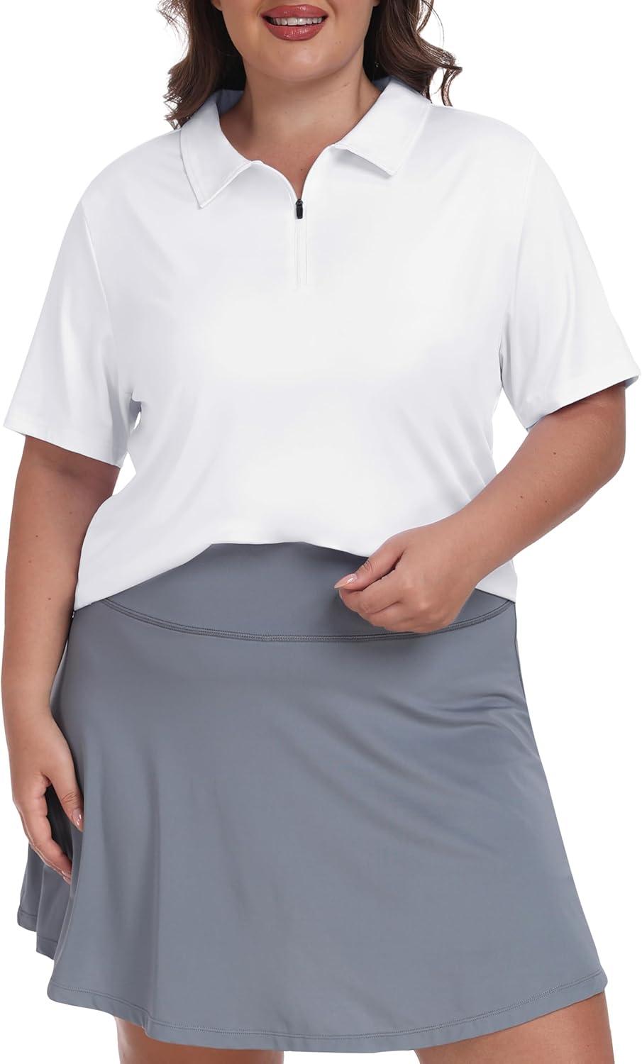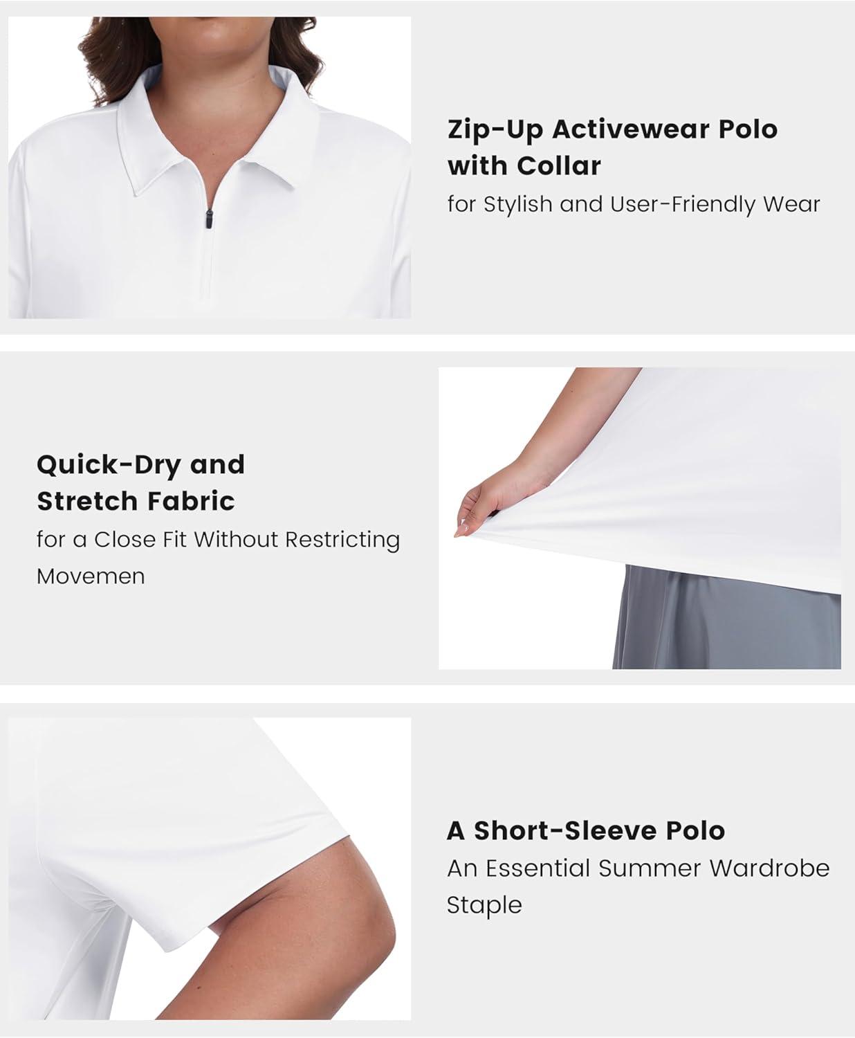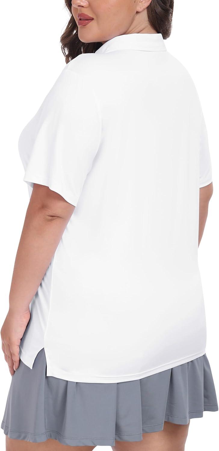 • MoFiz Plus Size Golf Polo Shirts for Women Zip Up Short Sleeve Collared Tennis Workout Tops Sport Athletic Activewear XL-5XL(White)