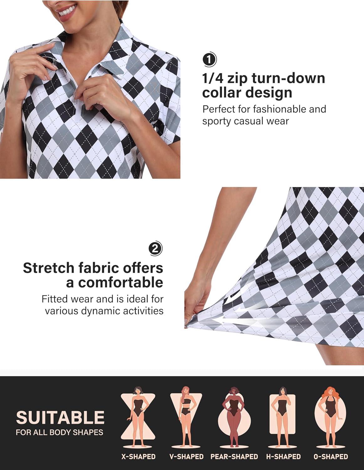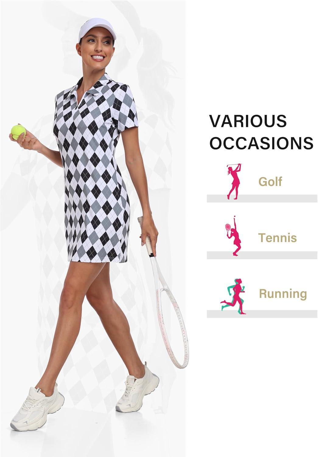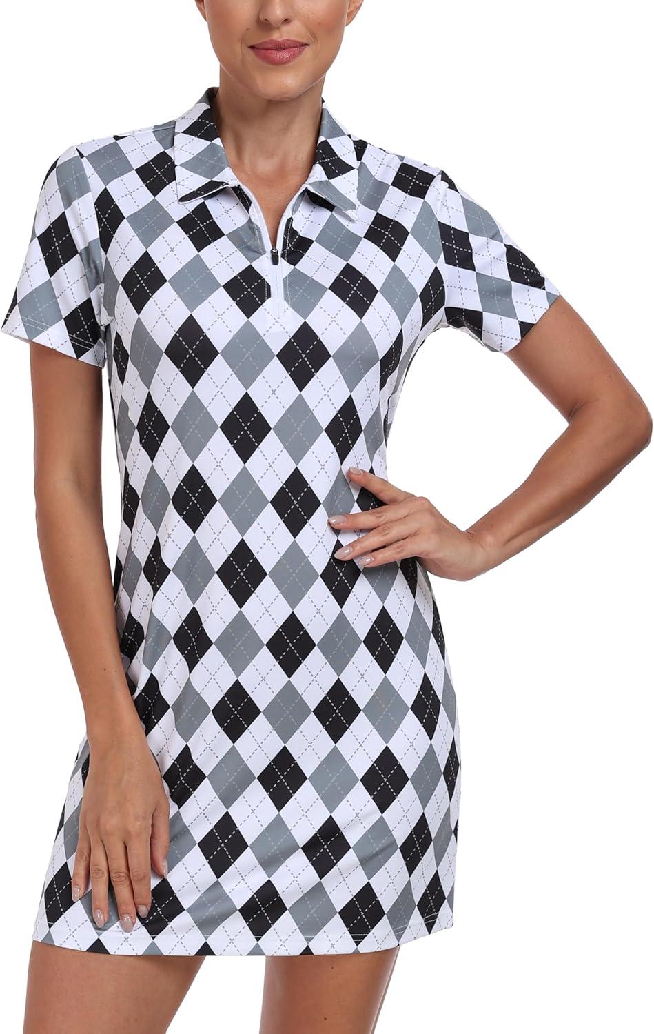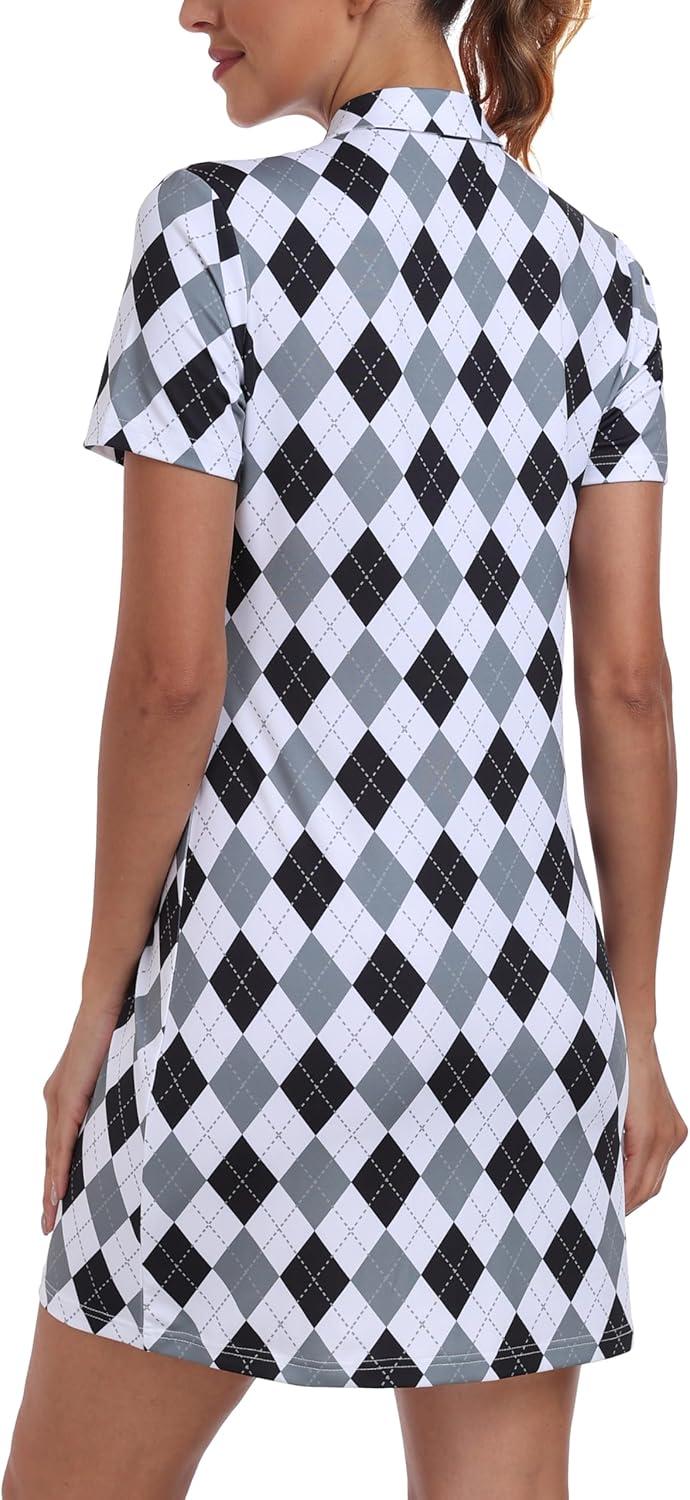 • MoFiz Short Sleeve Polo Dresses with Zipper for Women Comfy Stretchy Tennis Dress Sport Casual Wear Golf Outfits(2025-black Plaid)