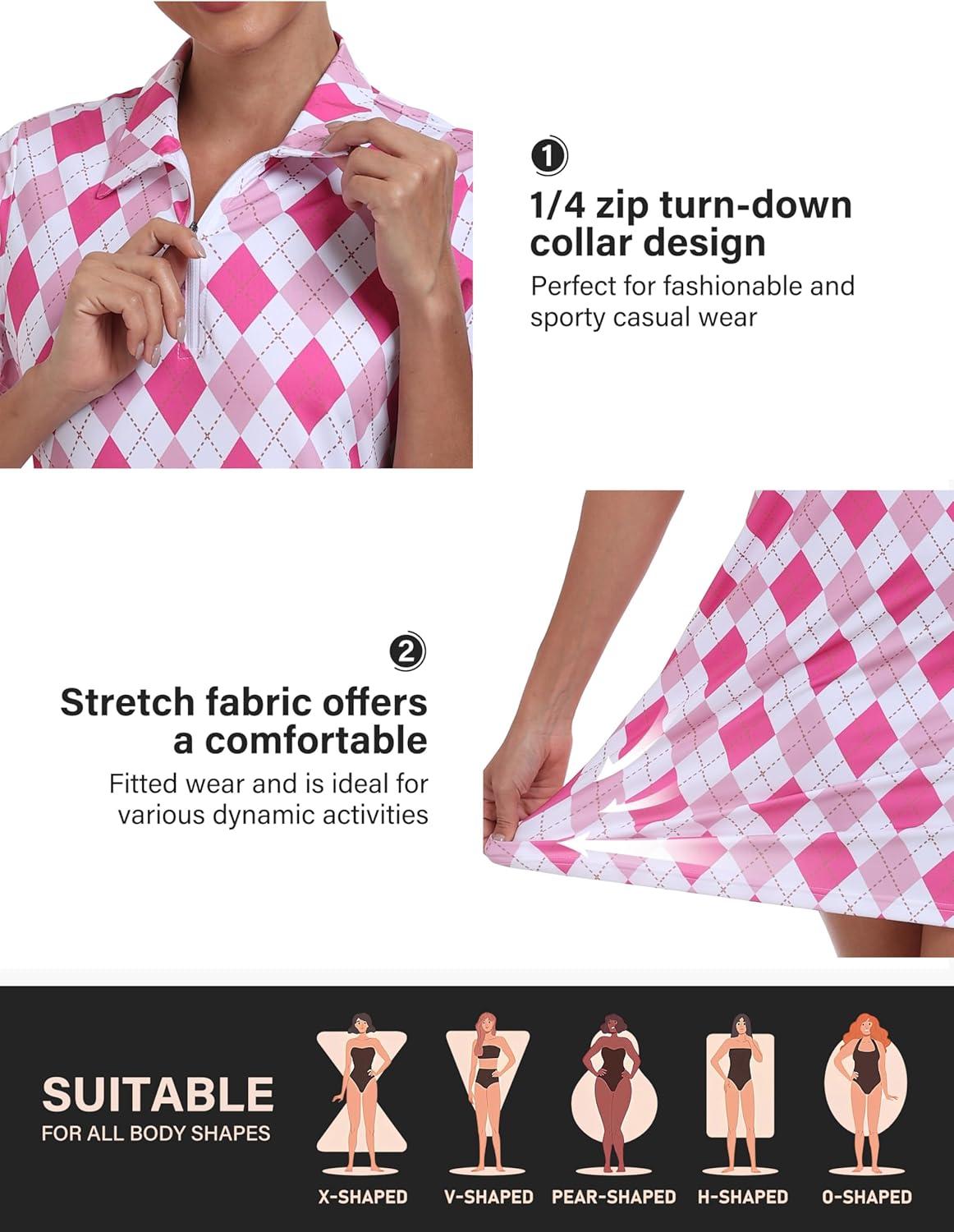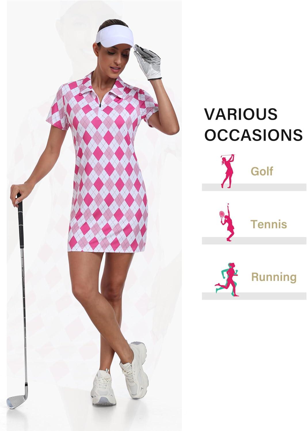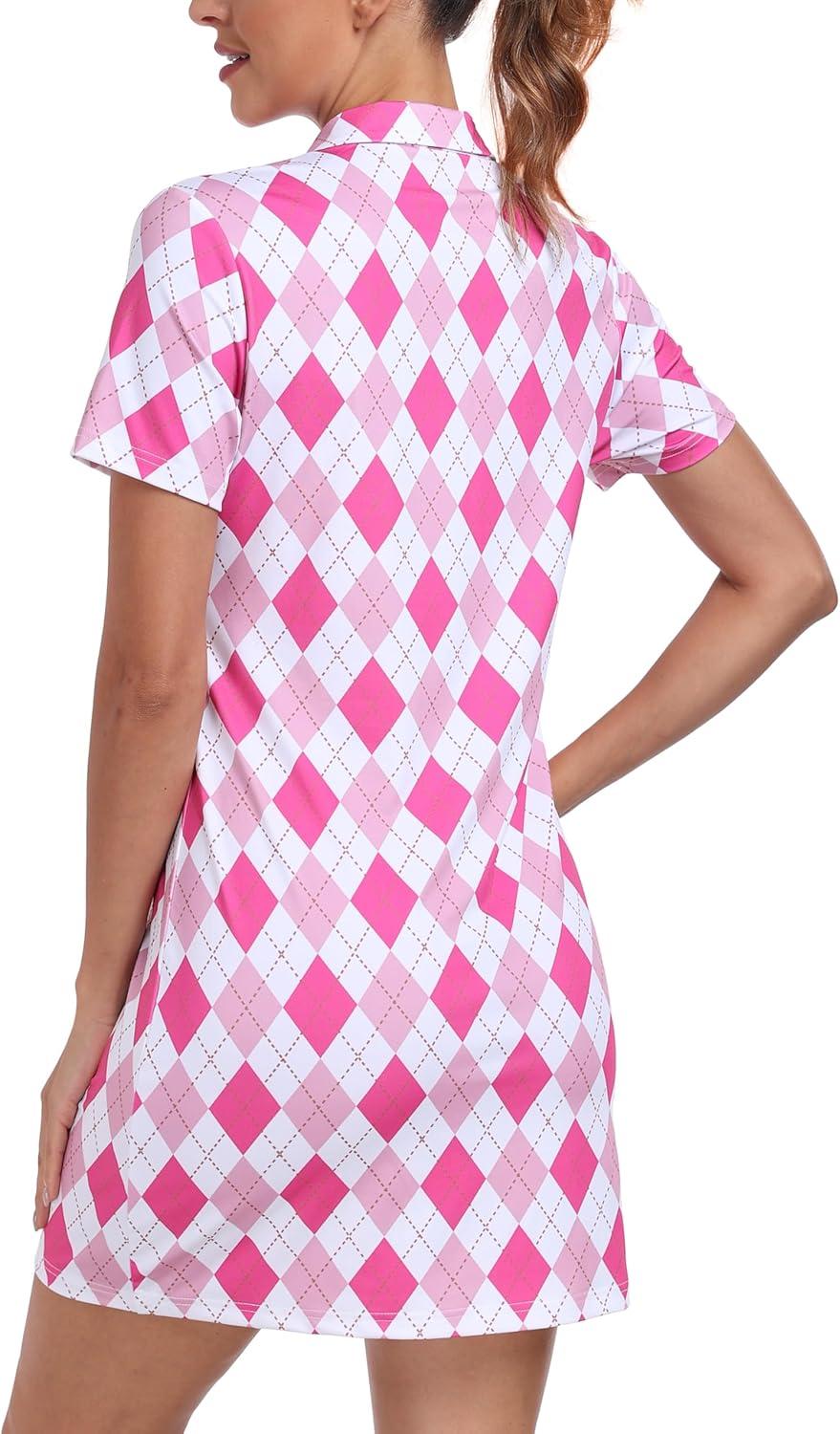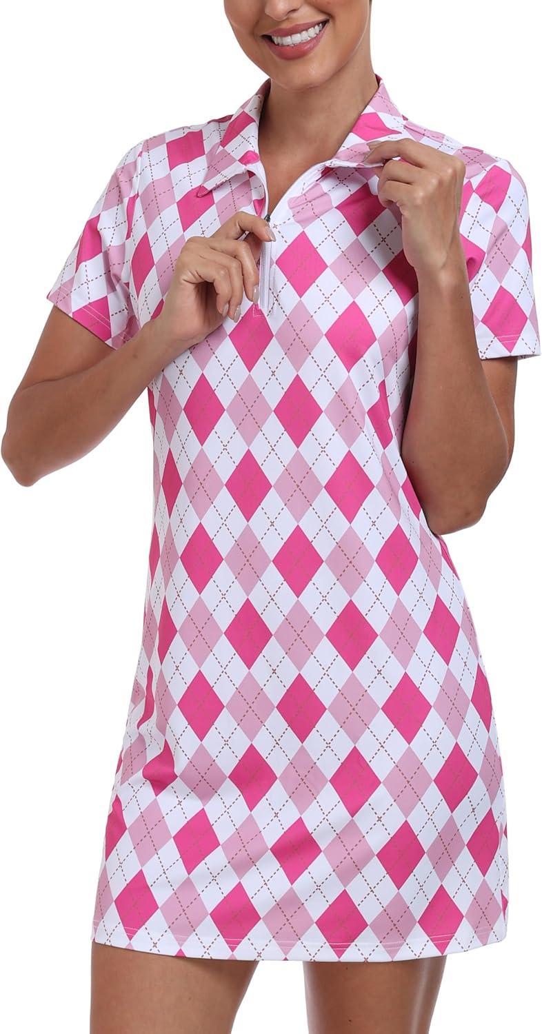 • MoFiz Short Sleeve Polo Dresses with Zipper for Women Comfy Stretchy Tennis Dress Sport Casual Wear Golf Outfits(2025-pink Plaid)