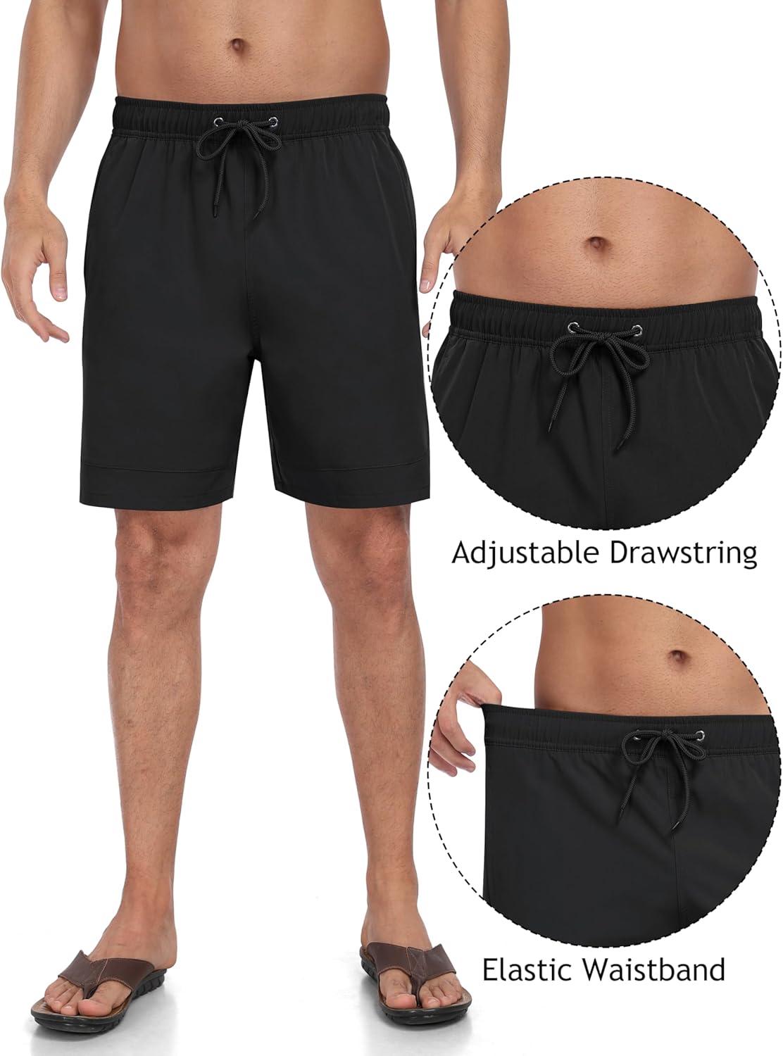 • MoFiz Mens Swim Trunks 7 Inch Swim Shorts with Compression Liner Swimming Suits Board Shorts Surf Short Bathing Suit(Black)