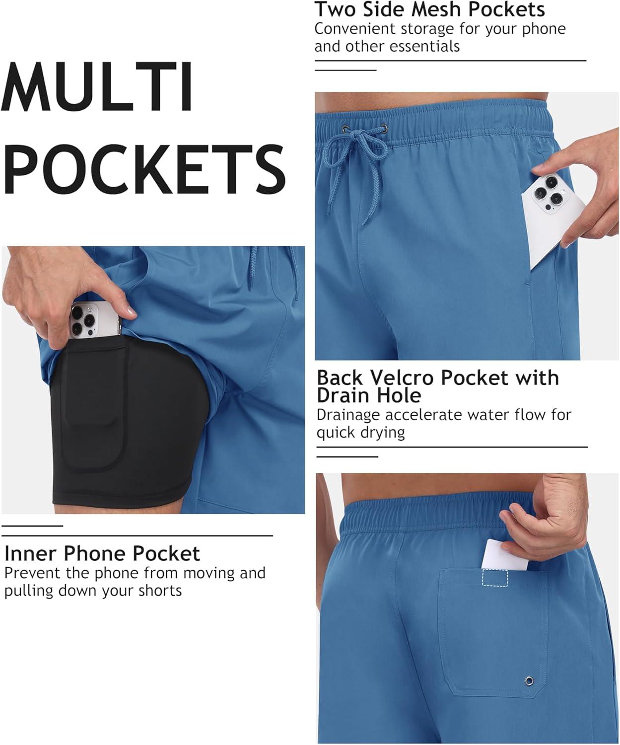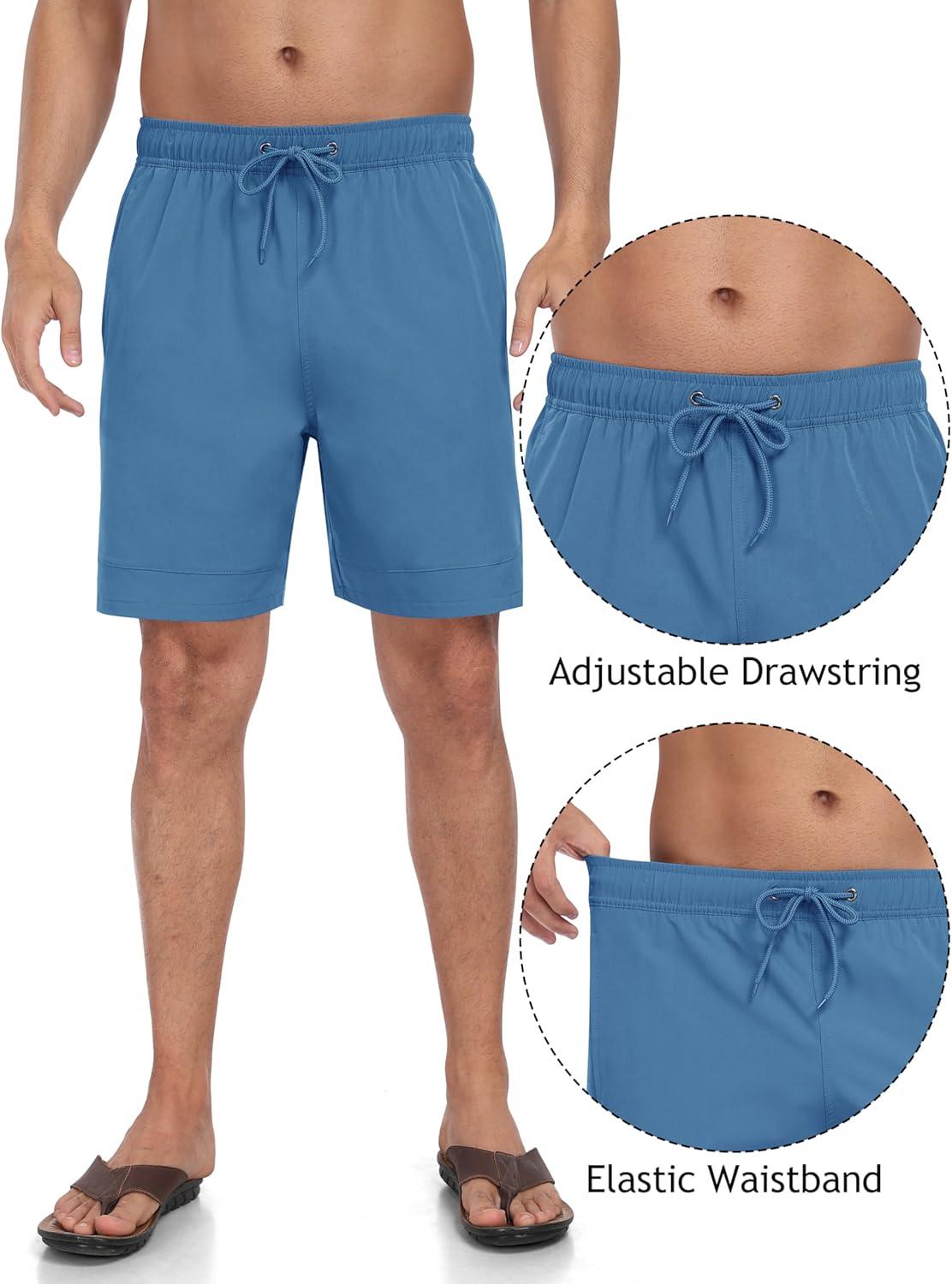 • MoFiz Mens Swim Trunks 7 Inch Swim Shorts with Compression Liner Swimming Suits Board Shorts Surf Short Bathing Suit(Blue)
