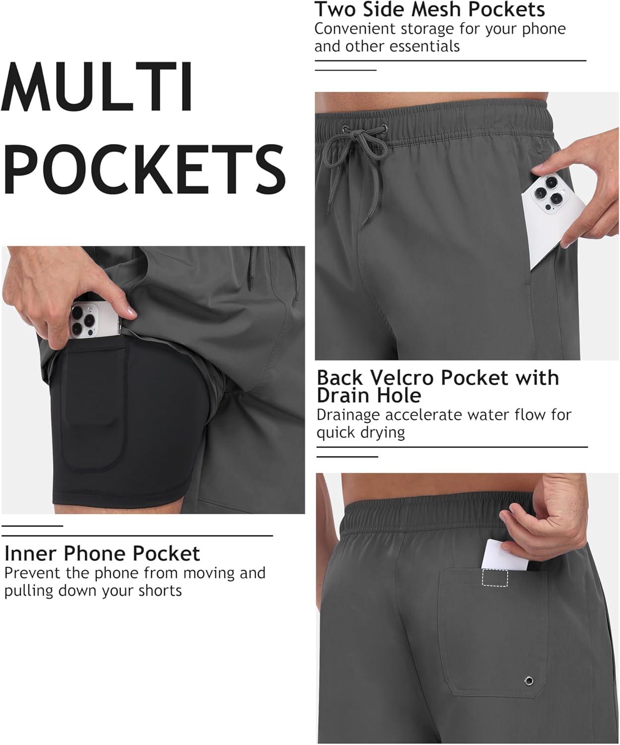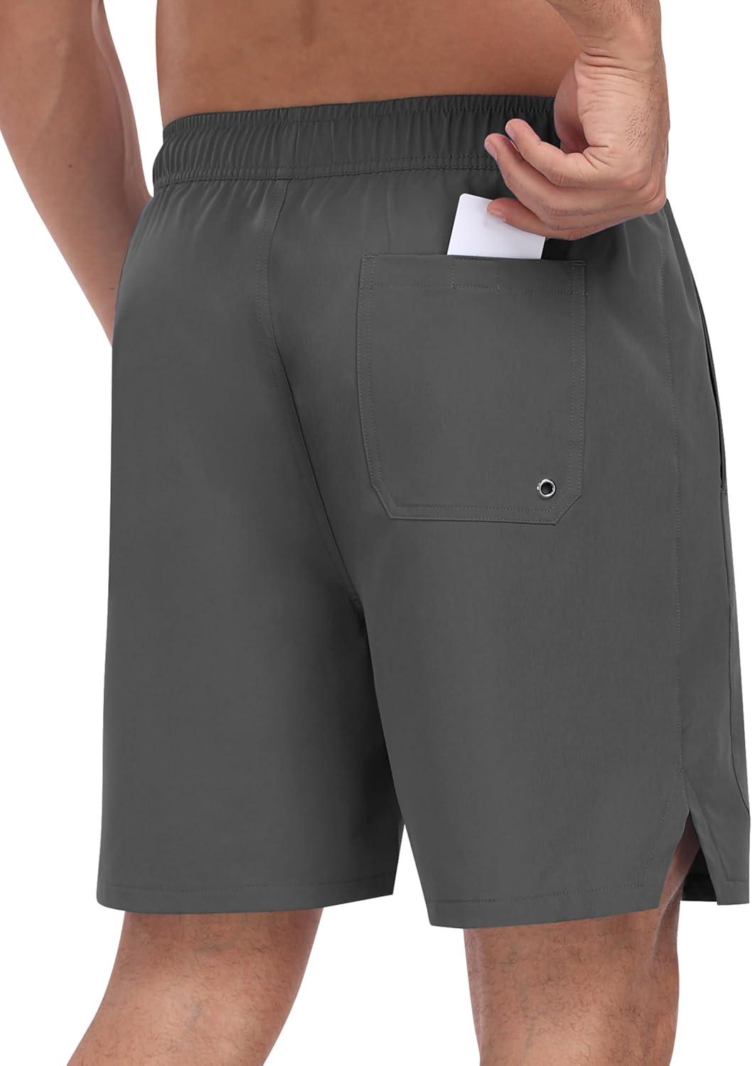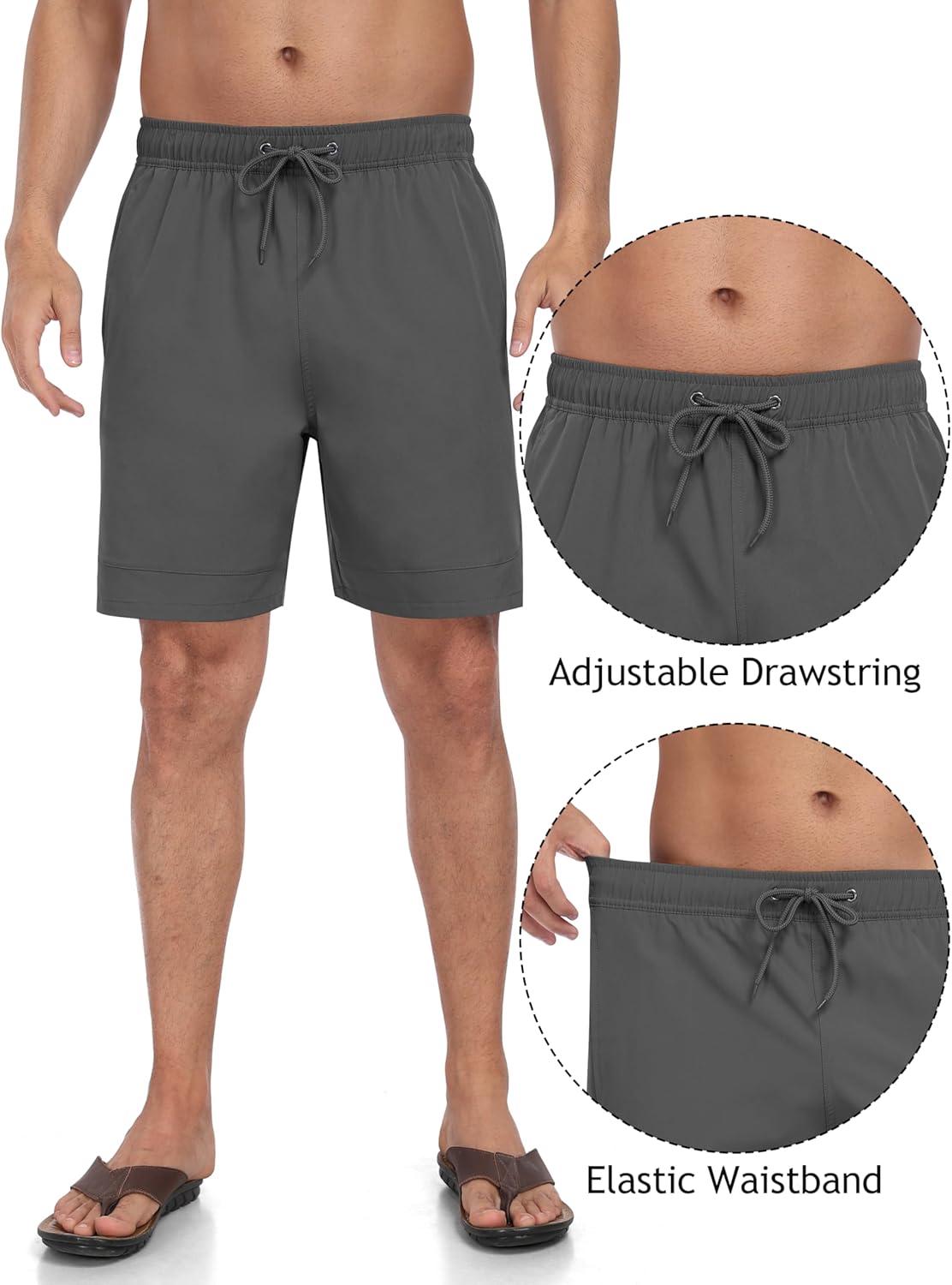 • MoFiz Mens Swim Trunks 7 Inch Swim Shorts with Compression Liner Swimming Suits Board Shorts Surf Short Bathing Suit(Deep Grey)