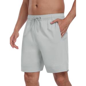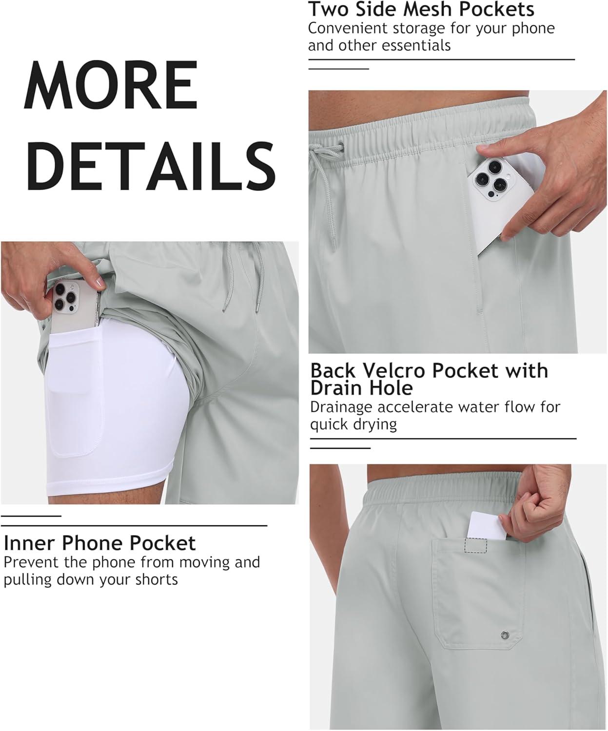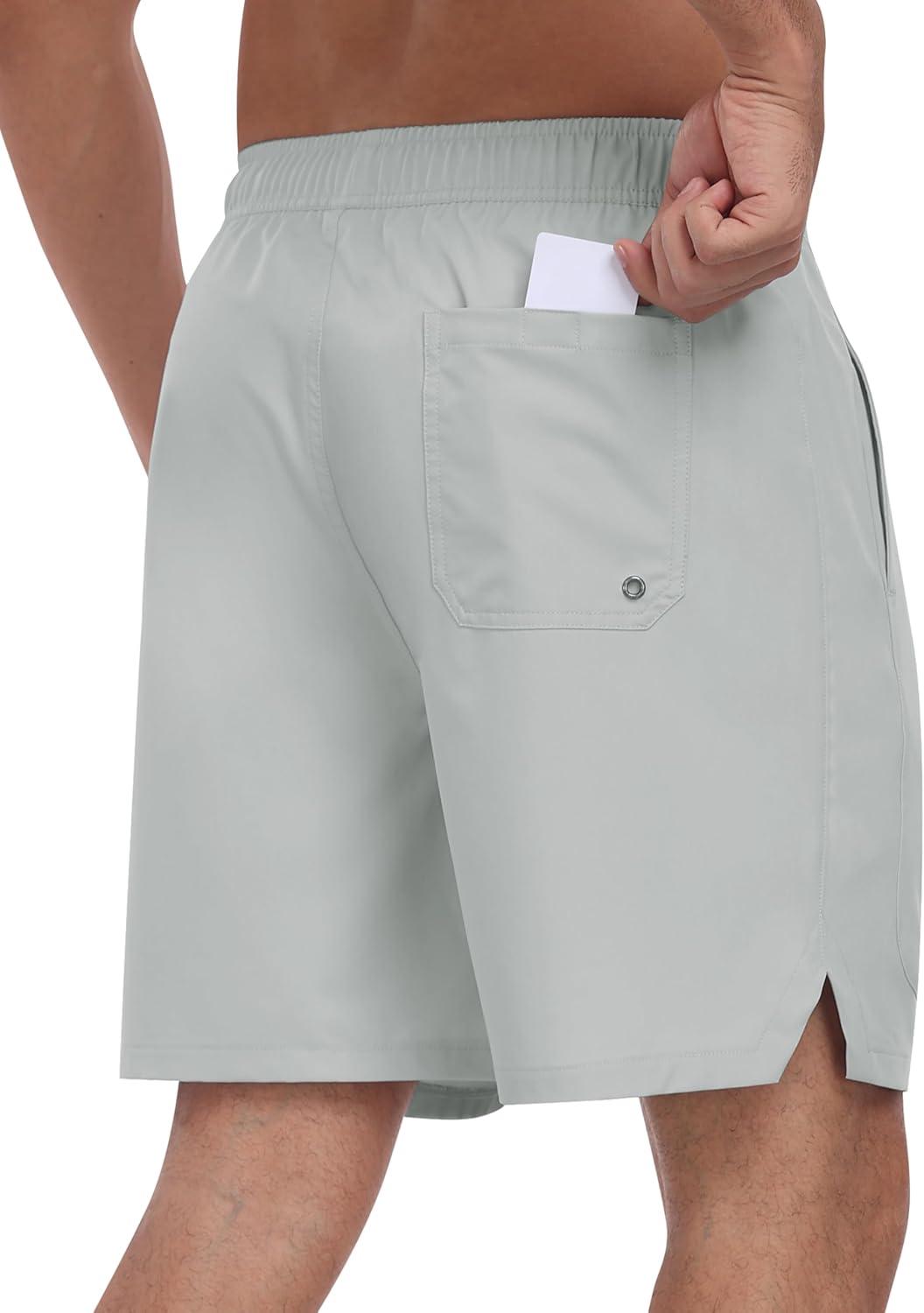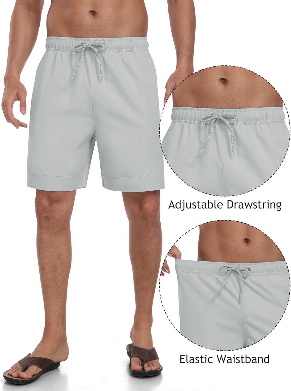 • MoFiz Mens Swim Trunks 7 Inch Swim Shorts with Compression Liner Swimming Suits Board Shorts Surf Short Bathing Suit(Light Grey)