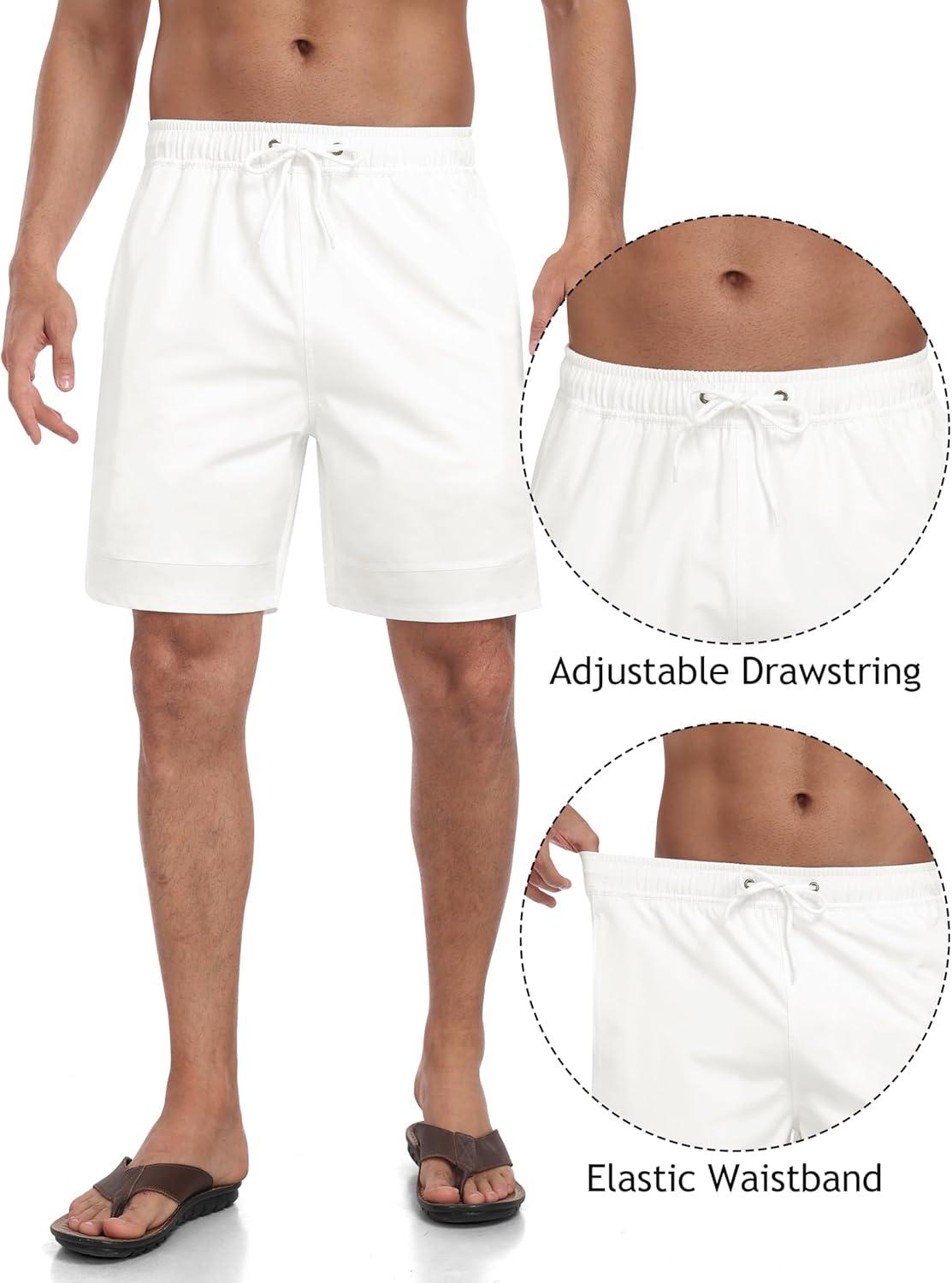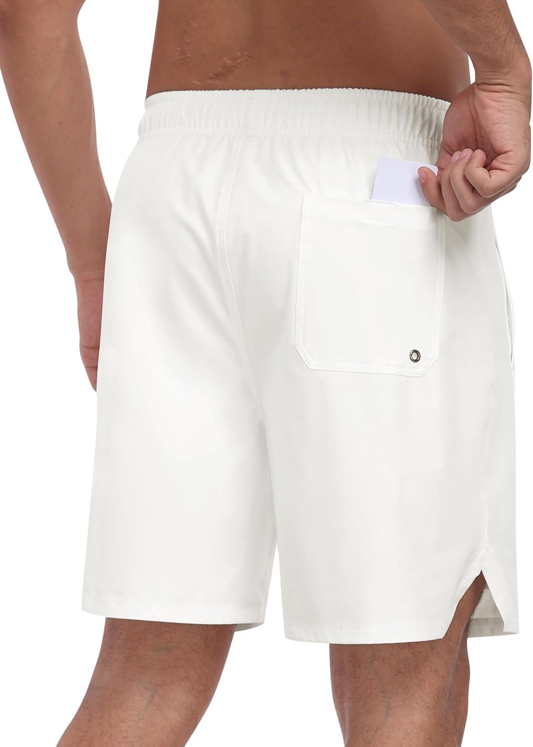 • MoFiz Mens Swim Trunks 7 Inch Swim Shorts with Compression Liner Swimming Suits Board Shorts Surf Short Bathing Suit(White)