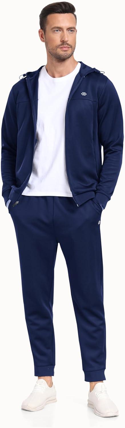 MoFiz Mens 2 Piece Tracksuit Casual Sweatsuits Full Zip Track Suits Jogging Athletic Hooded Gym Sport Running Suit Sets Zipper Pockets Navy L