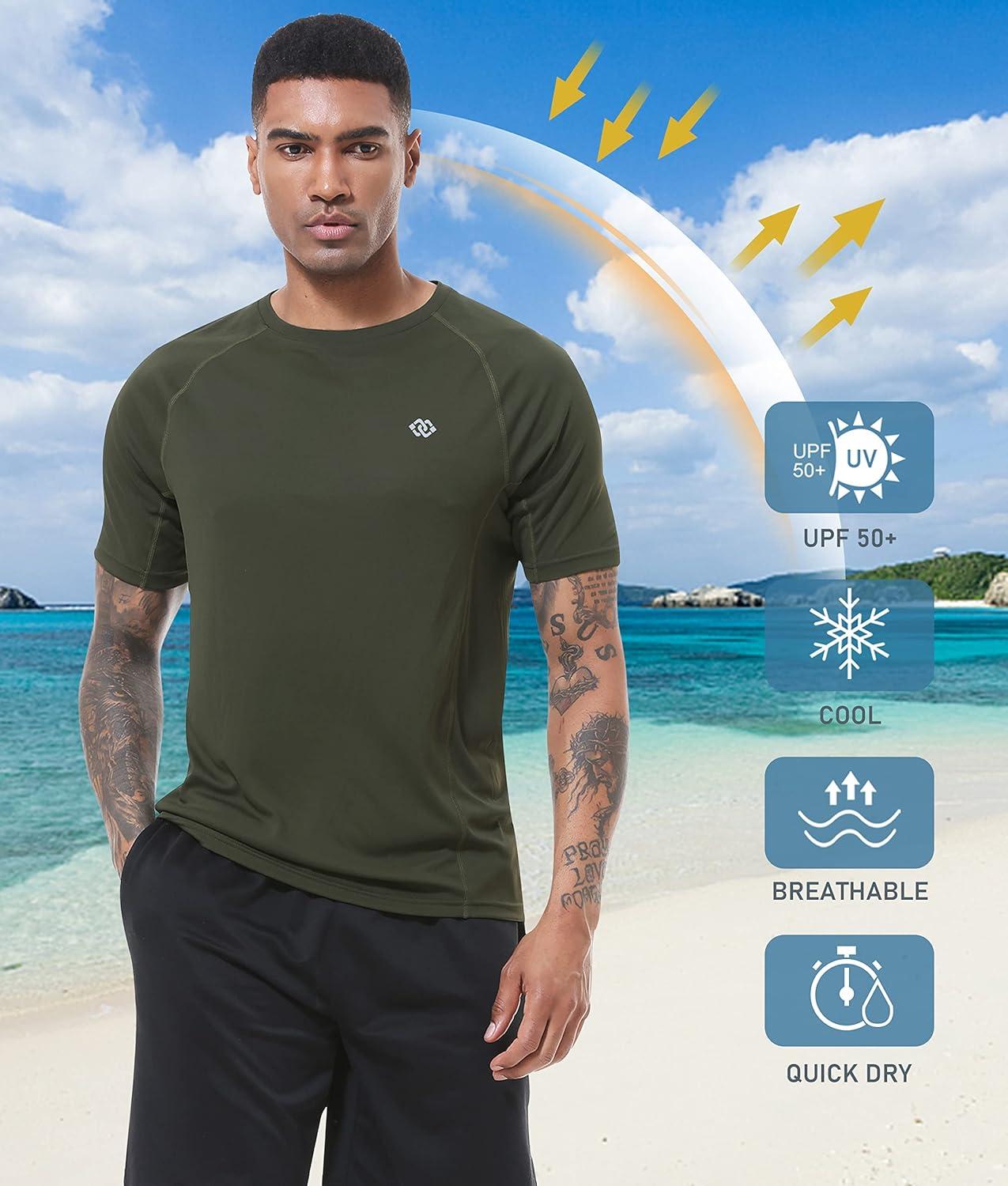 MoFiz Men’s Short Sleeve Rash Guard, UPF50+ UV Sun Protection Tee Quick Dry Swimming Shirts Army Green XL