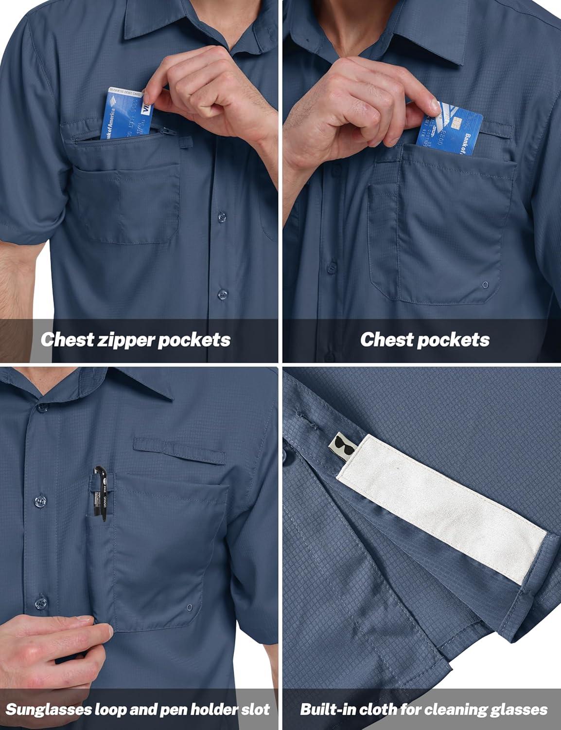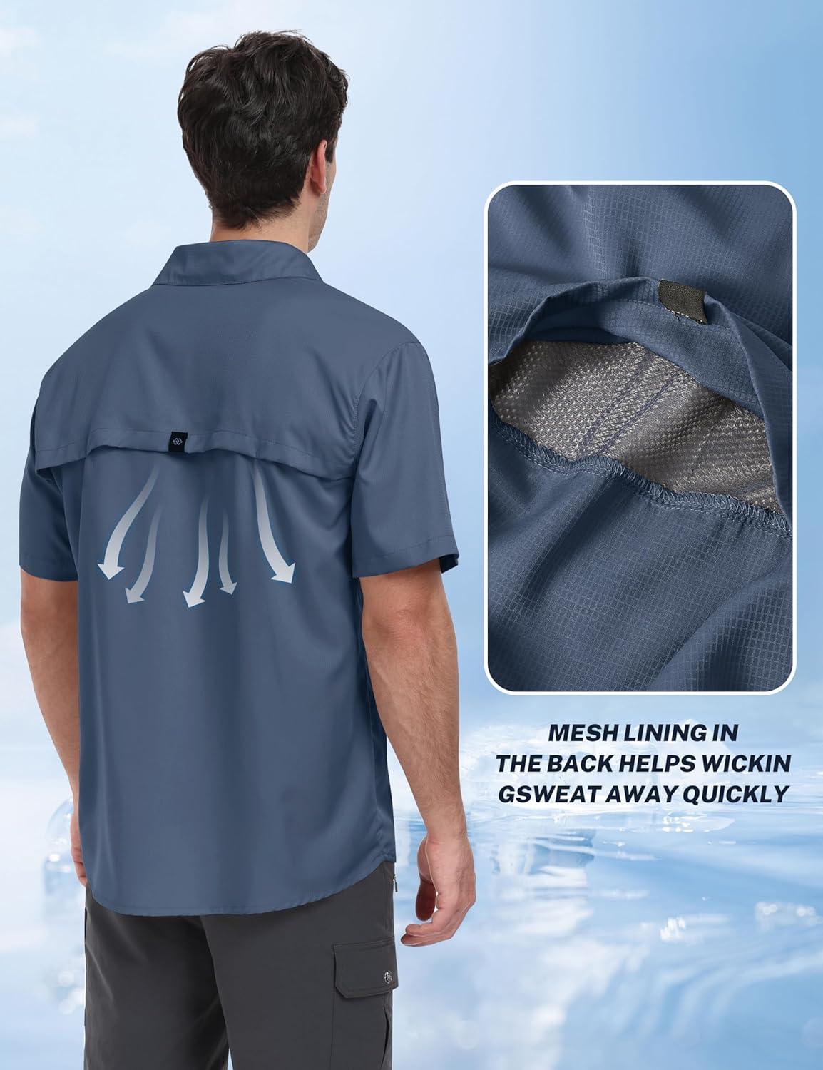 MoFiz Men’s Short Sleeve Sun Protection Shirt UPF 50+ Travel Work Shirts for Men Quick Dry Cooling Hiking Fishing Shirts
