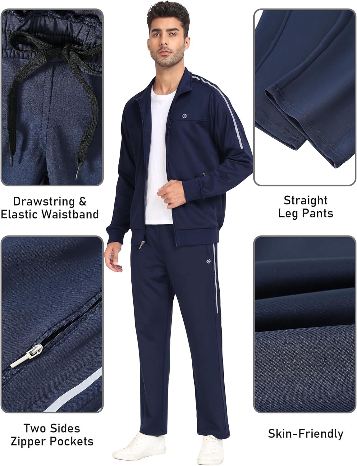 MoFiz Men’s Tracksuits Sweatsuits for Men Athletic Set 2 Piece Track Suits Jogging Casual Warm Up Full Zip Running Sports(A02-navy)