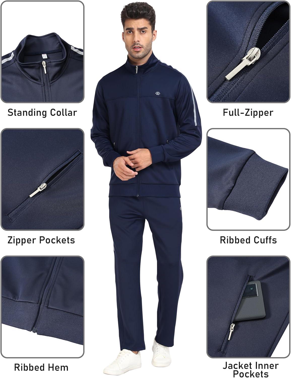 MoFiz Men’s Tracksuits for Men Athletic Sweatsuits Set 2 Piece Track Suits Jogging Casual Warm Up Full Zip Running Sports(A02-navy)