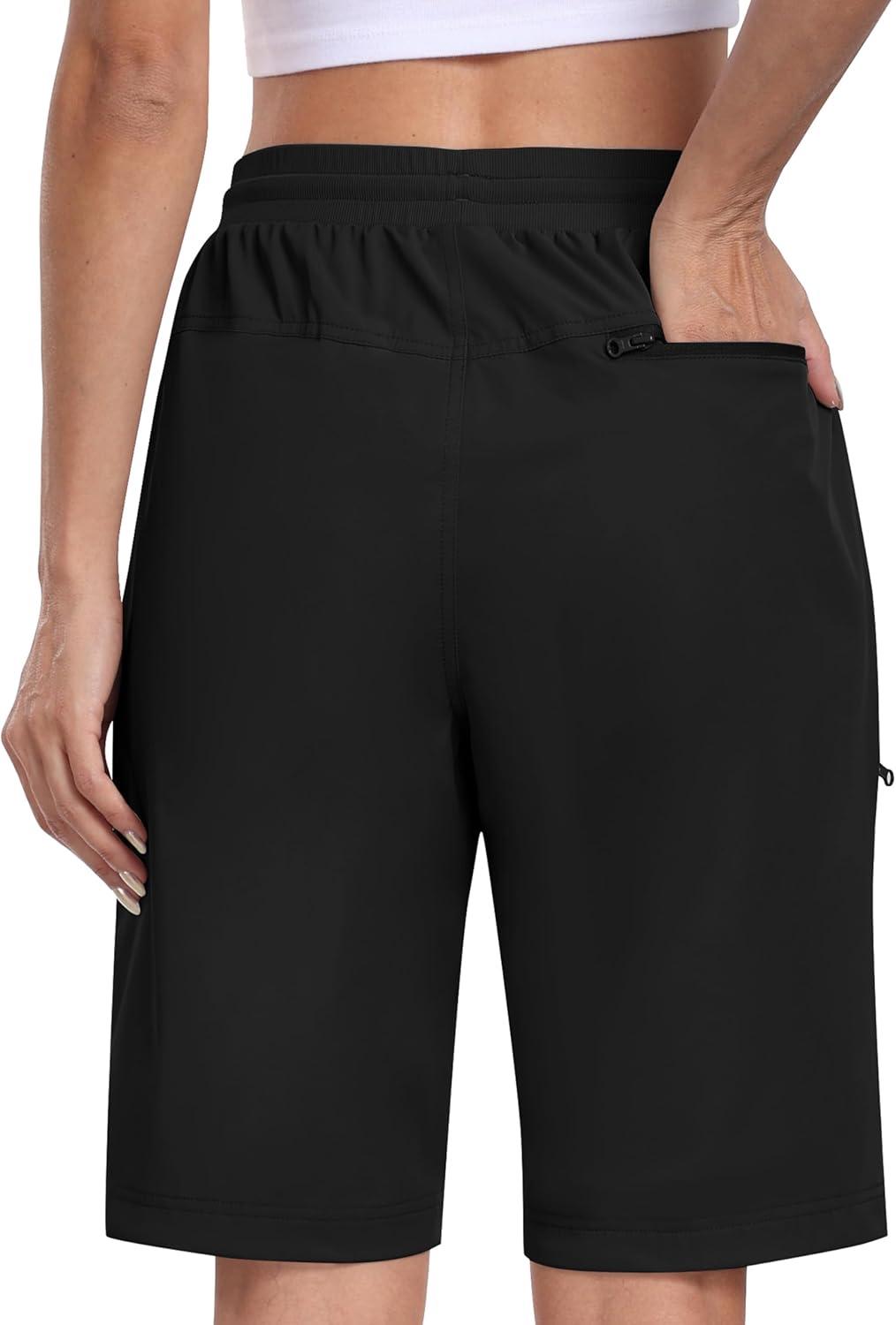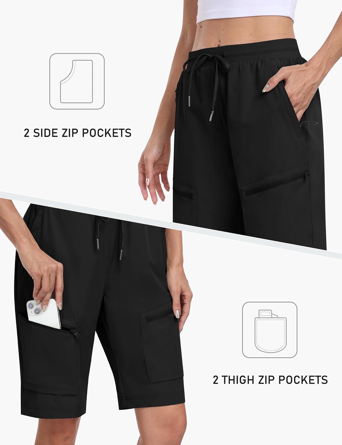 MoFiz Womens 10″ Long Shorts for Women Knee Length Quick Dry Women Hiking Cargo Athletic Travel Golf Shorts with Zip Pockets(Aa-black)