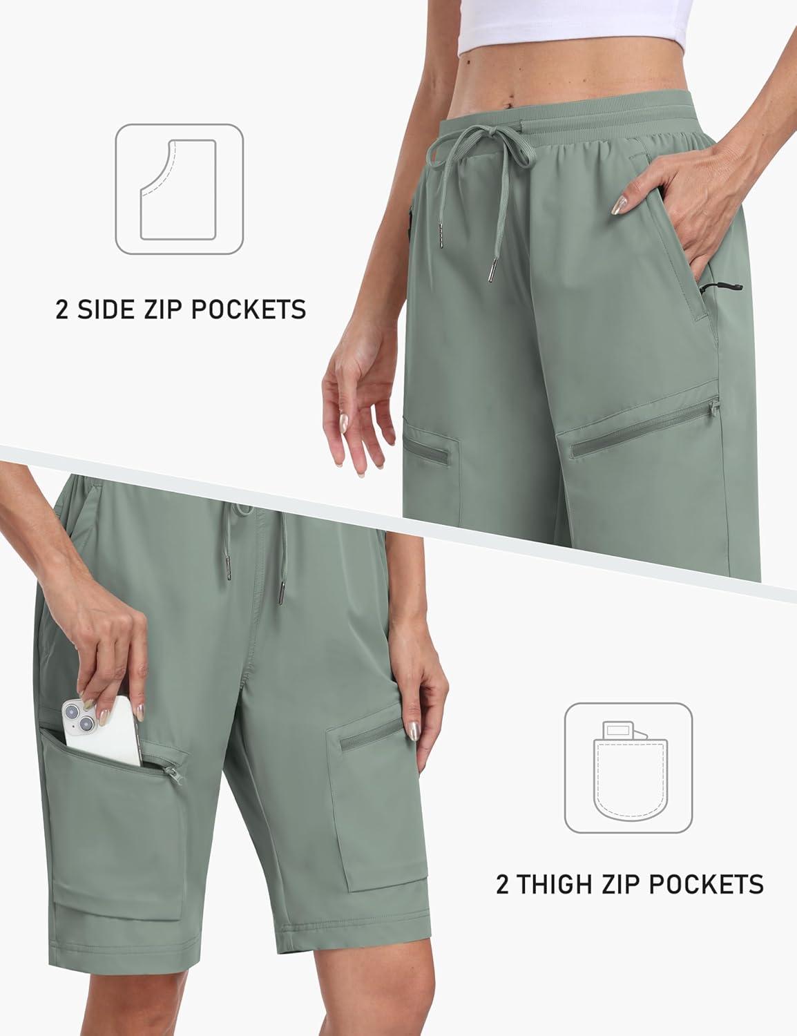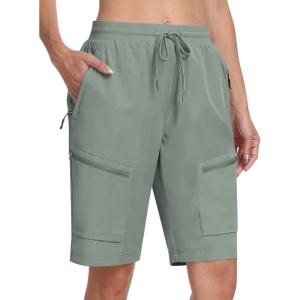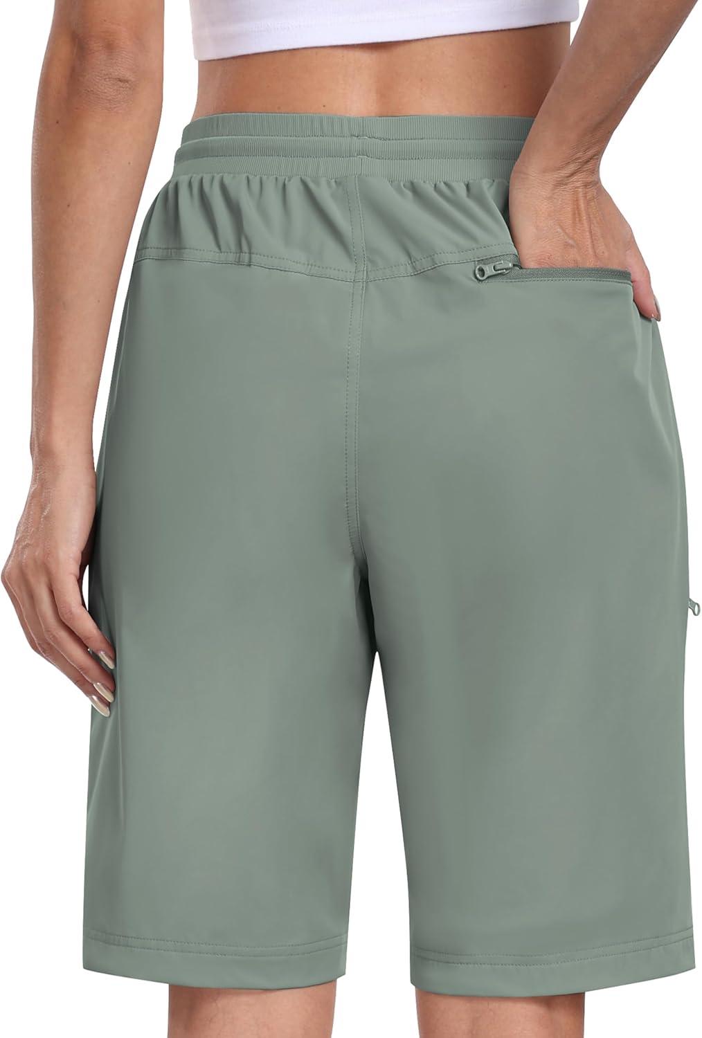 MoFiz Womens 10″ Long Shorts for Women Knee Length Quick Dry Women Hiking Cargo Athletic Travel Golf Shorts with Zip Pockets(Ab-gray Green)
