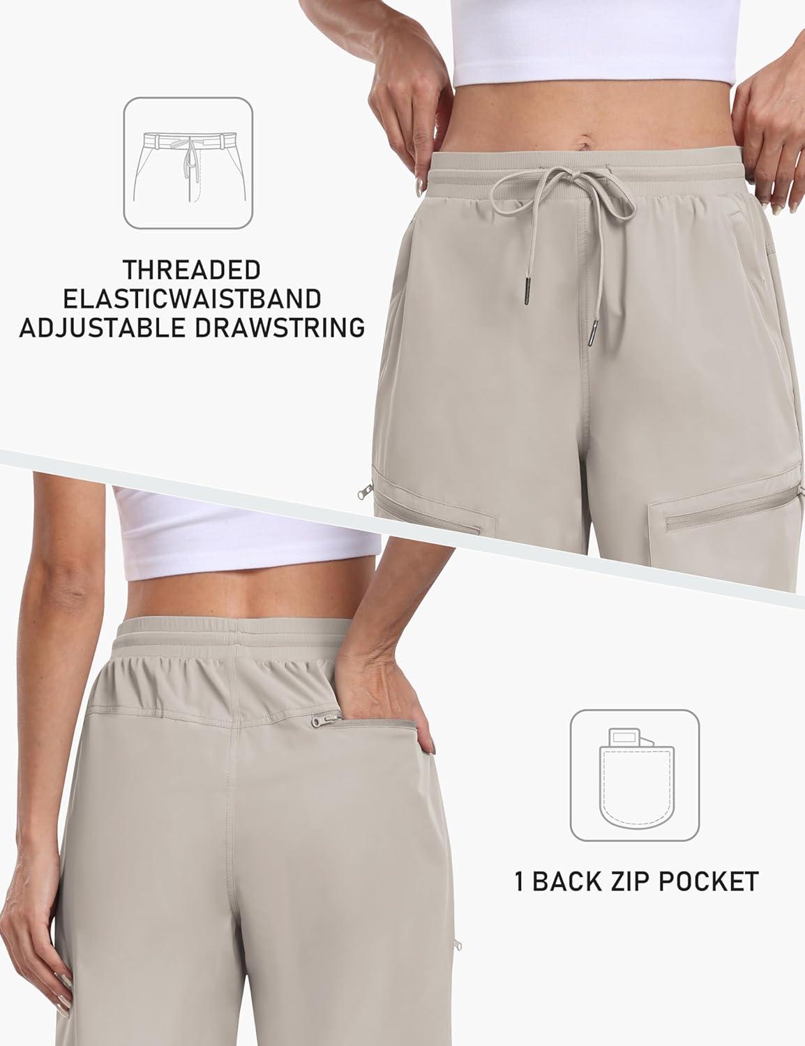 MoFiz Women’s Cargo Shorts Quick Dry Athletic Shorts Lightweight Running Summer Hiking Shorts with Pockets(Khaki)