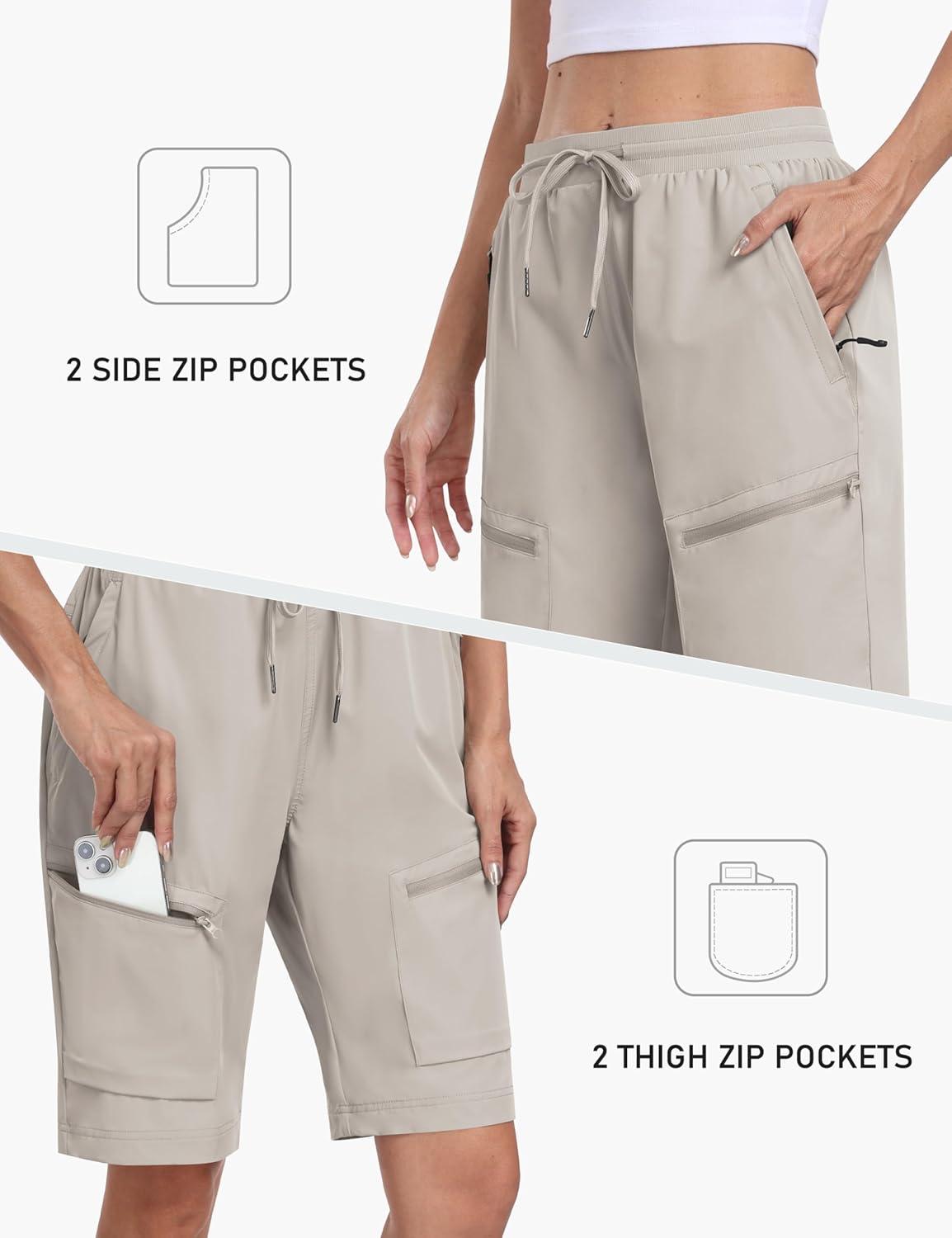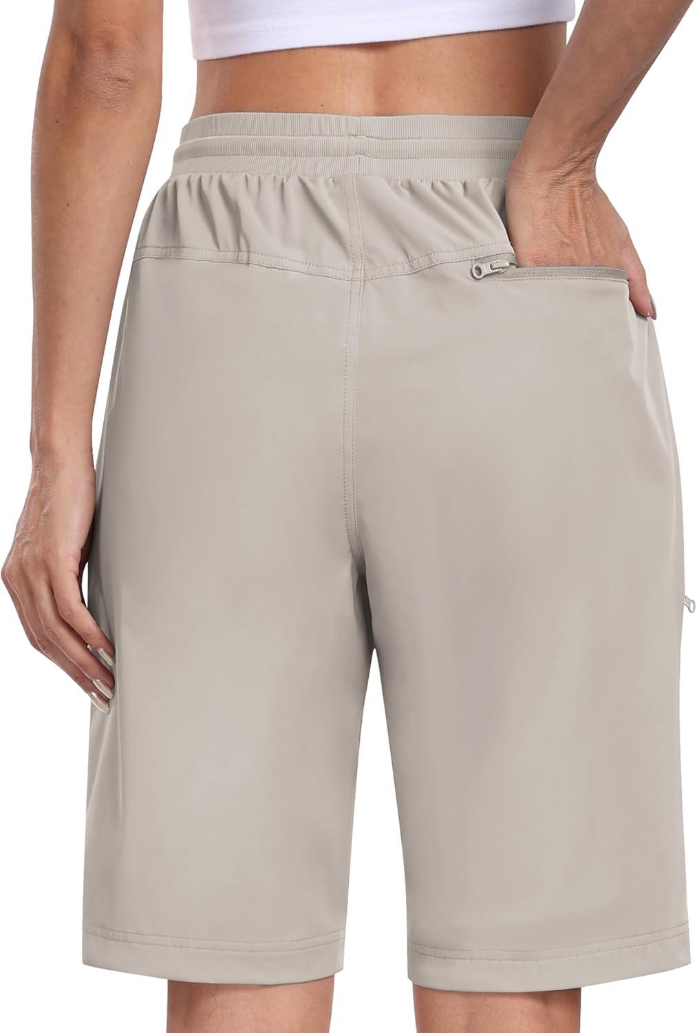 MoFiz Womens 10″ Long Shorts for Women Knee Length Quick Dry Women Hiking Cargo Athletic Travel Golf Shorts with Zip Pockets(Ac-light Khaki)