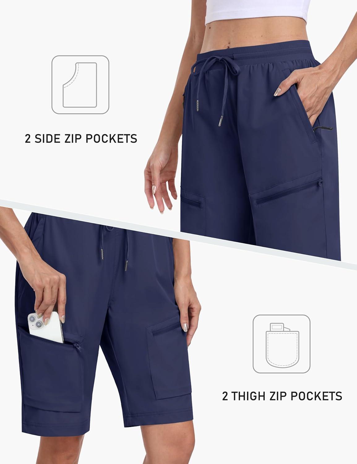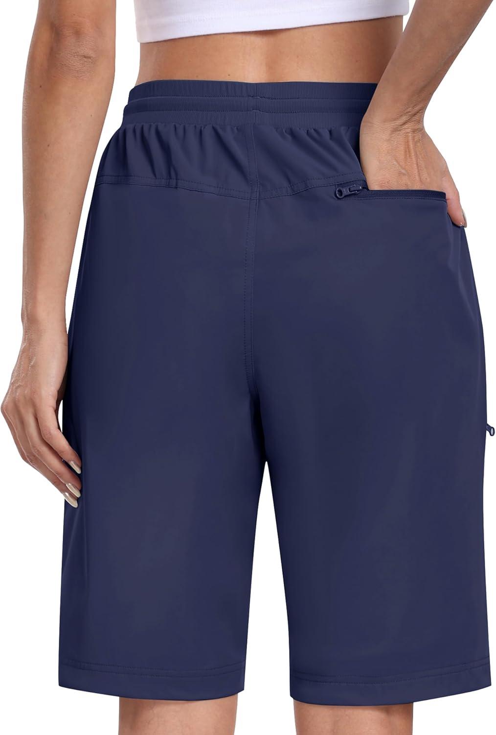 MoFiz Womens 10″ Long Shorts for Women Knee Length Quick Dry Women Hiking Cargo Athletic Travel Golf Shorts with Zip Pockets(Ad-navy Blue)