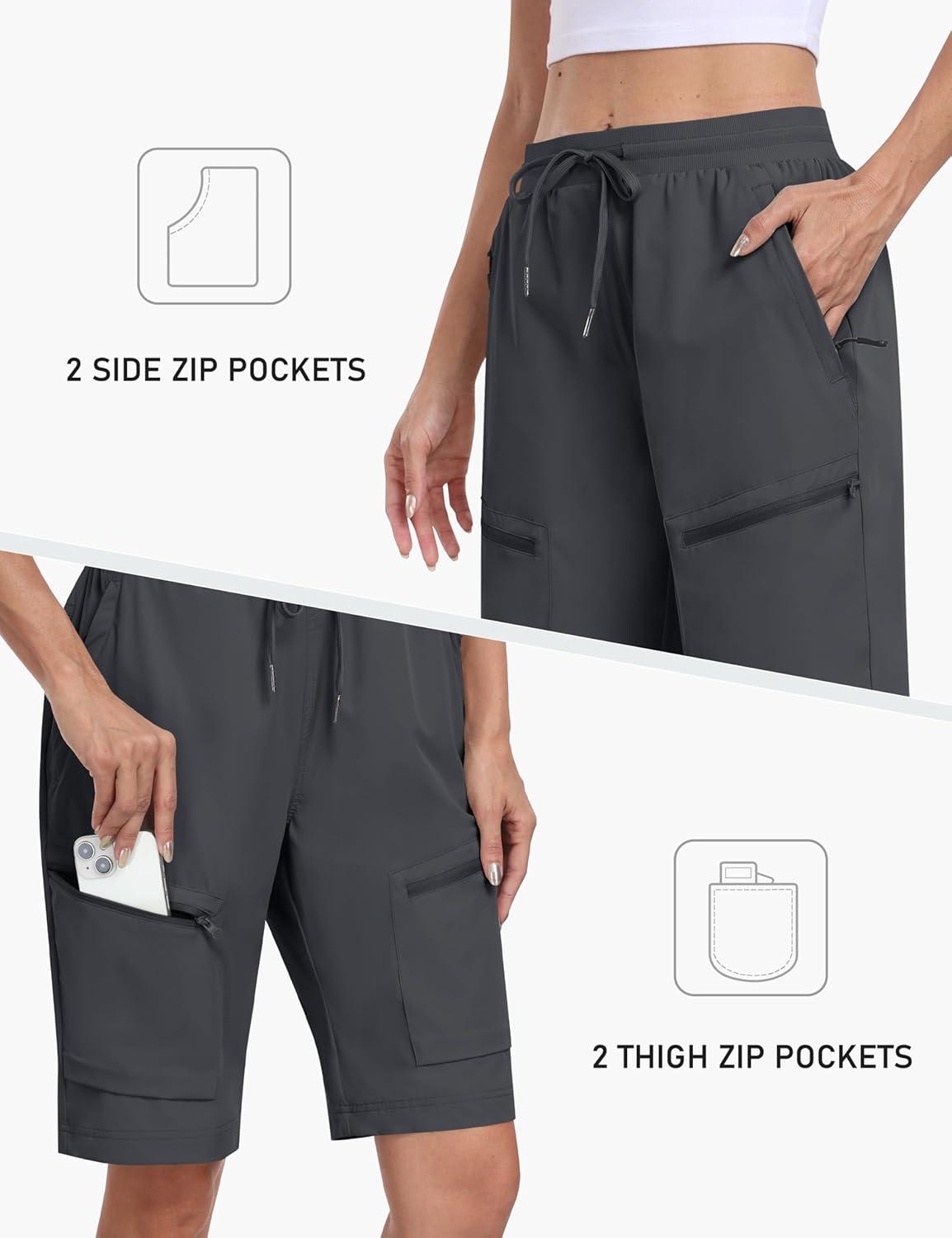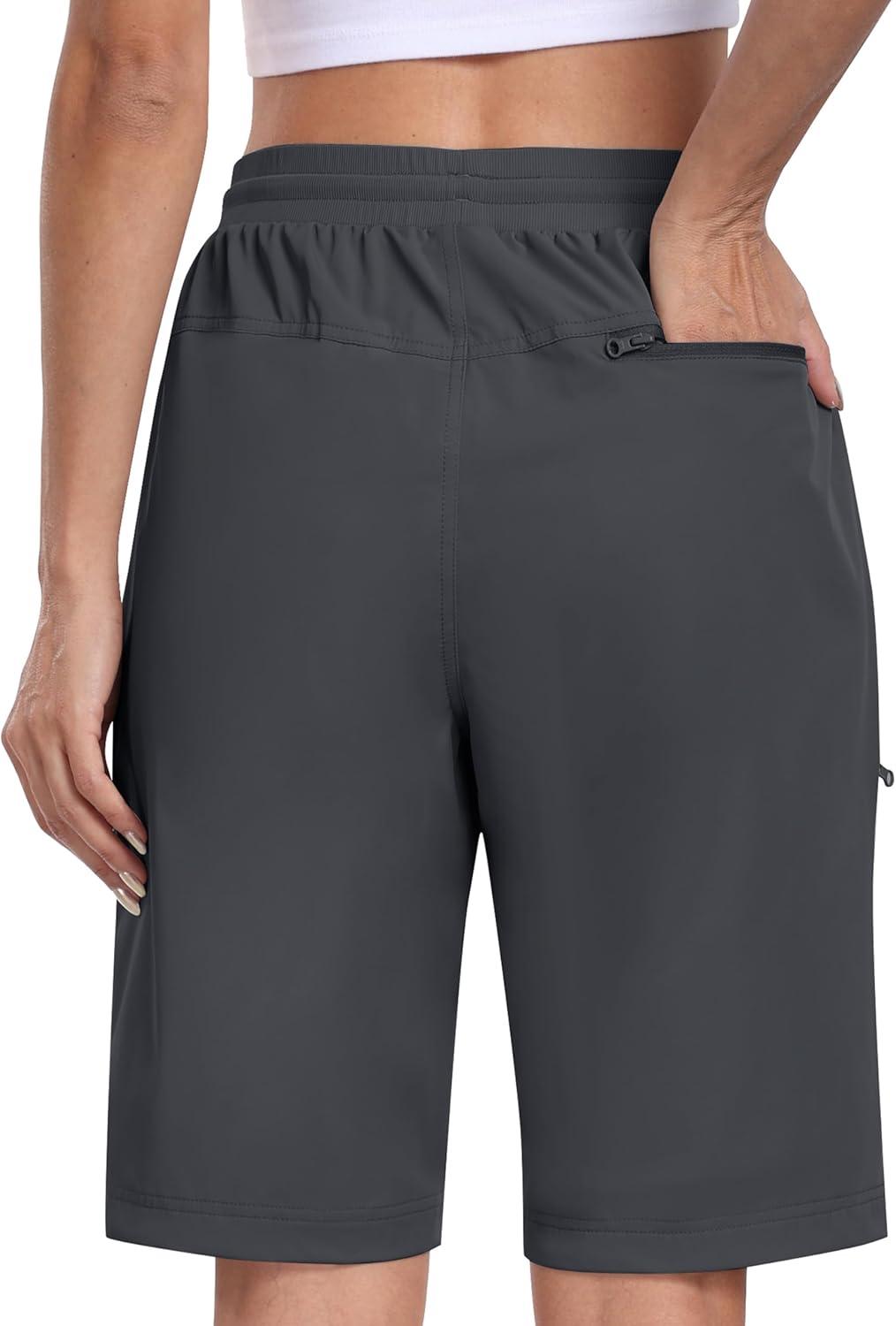 MoFiz Womens 10″ Long Shorts for Women Knee Length Quick Dry Women Hiking Cargo Athletic Travel Golf Shorts with Zip Pockets(Ae-dark Gray)