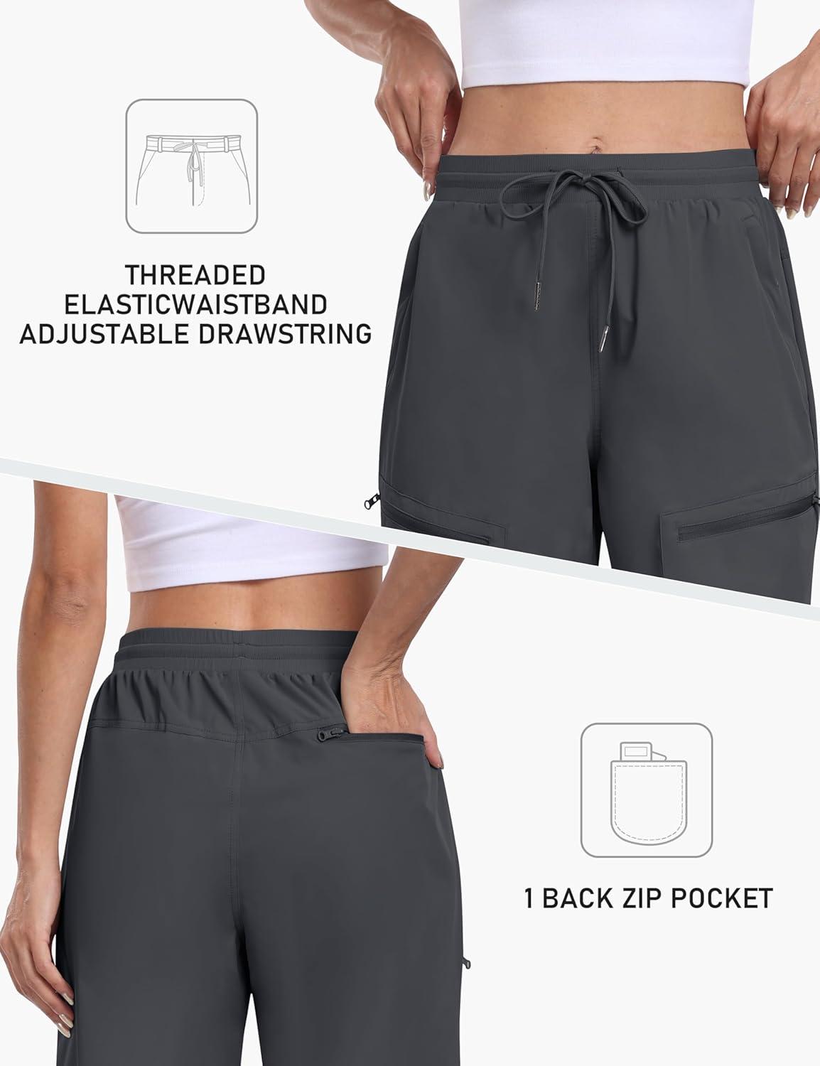 MoFiz Women’s Cargo Shorts Quick Dry Athletic Shorts Lightweight Running Summer Hiking Shorts with Pockets(Black)