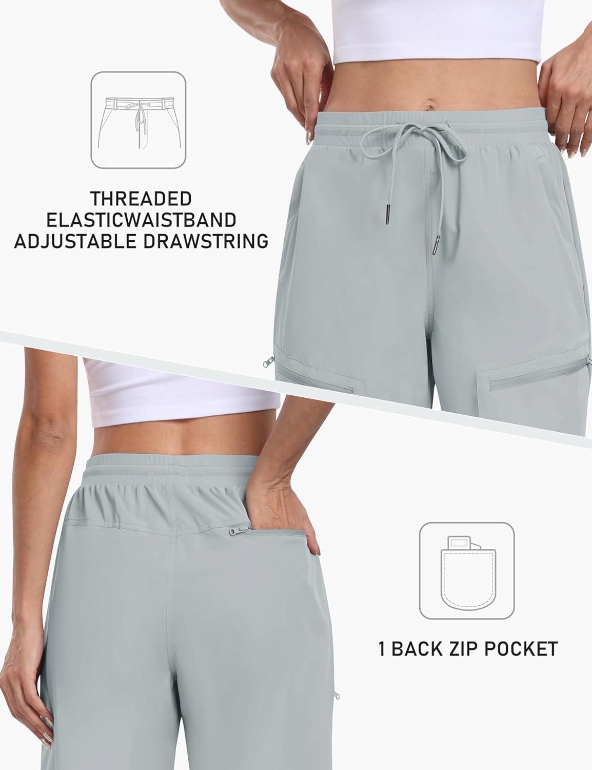 MoFiz Women’s 10″ Hiking Cargo Shorts Lightweight Quick Dry Outdoor Running Athletic Short Summer Travel Loose 6 Pockets(B04-grey Khaki)