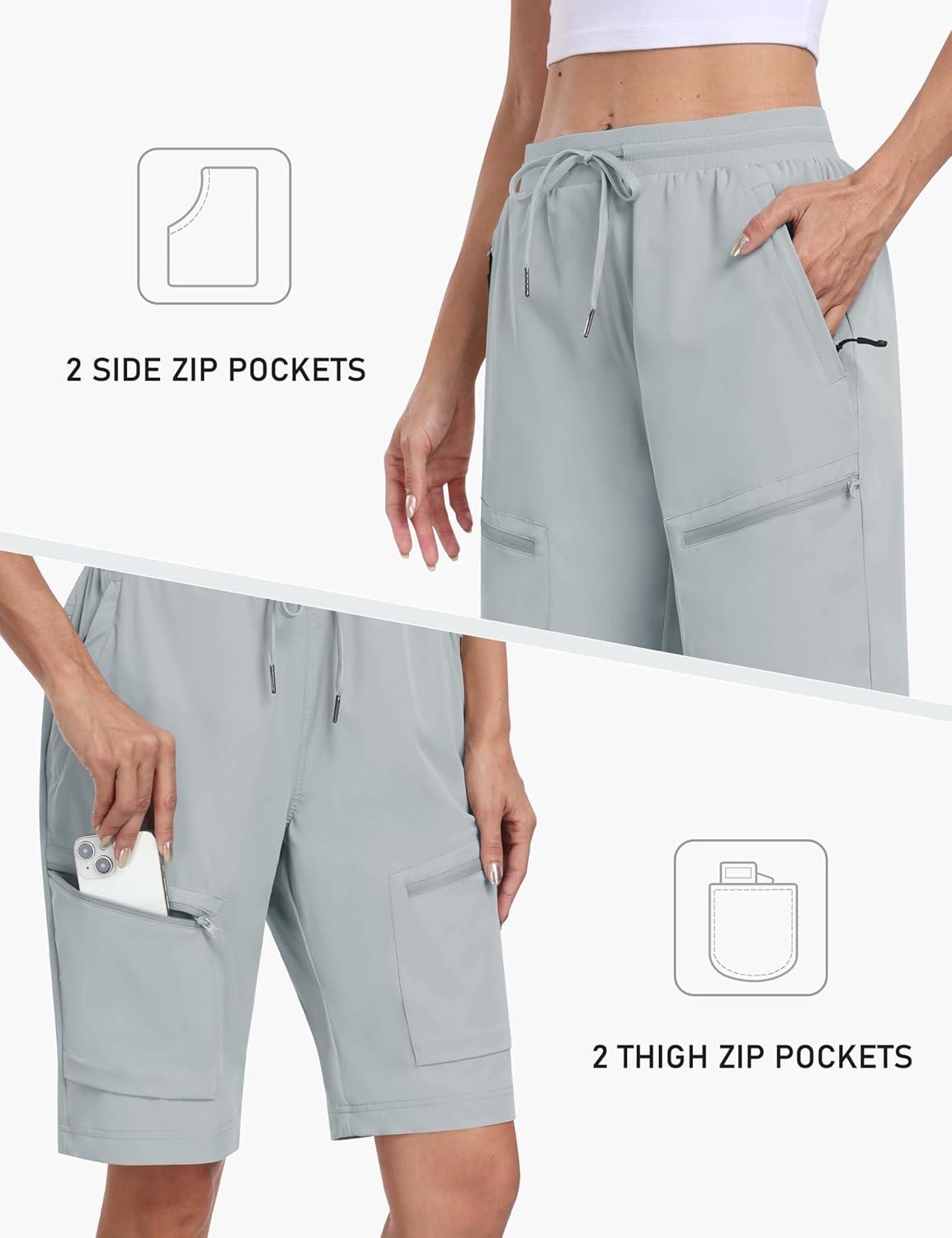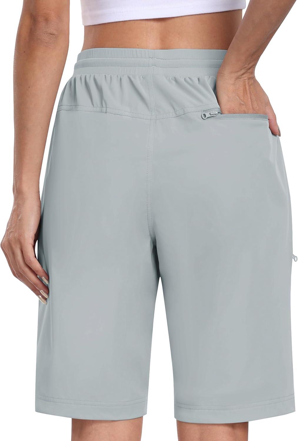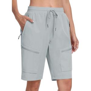 MoFiz Womens 10″ Long Shorts for Women Knee Length Quick Dry Women Hiking Cargo Athletic Travel Golf Shorts with Zip Pockets(Af-light Gray)
