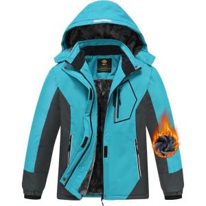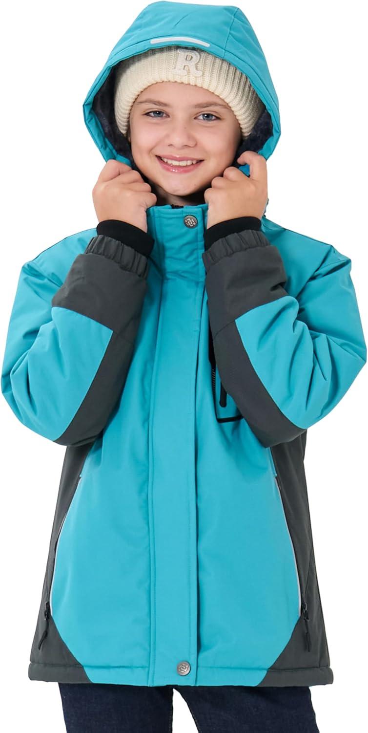 MoFiz Girls Ski Jacket Waterproof Fleece Lined Snowboard Jacket Warm Winter Snow Coats with Removable Hood(Blue)