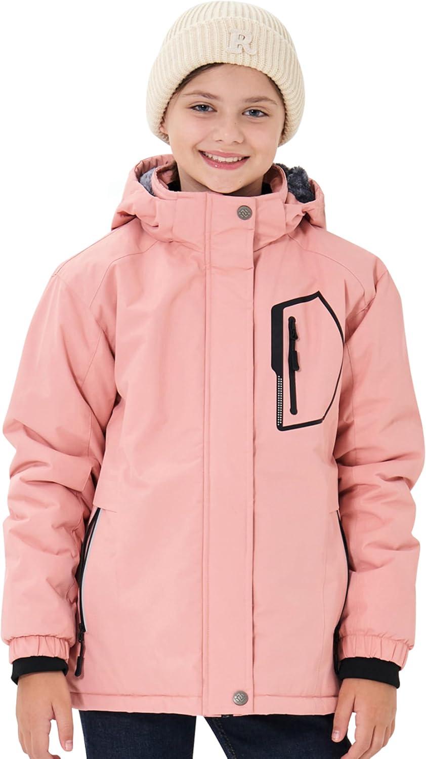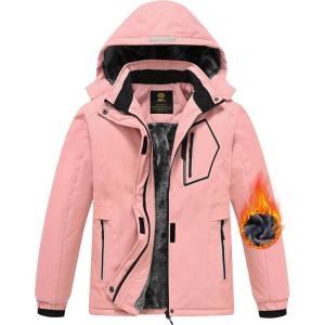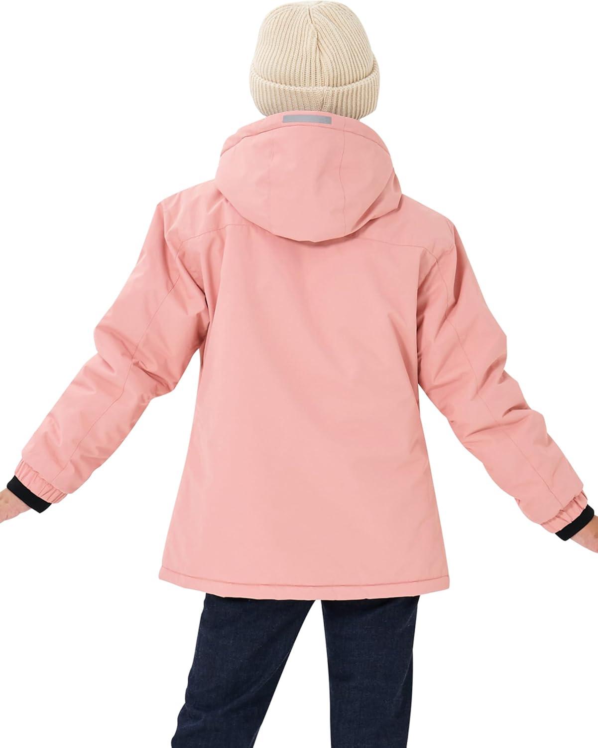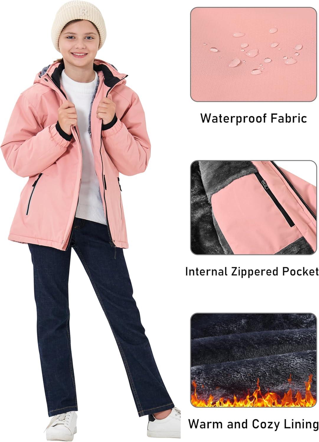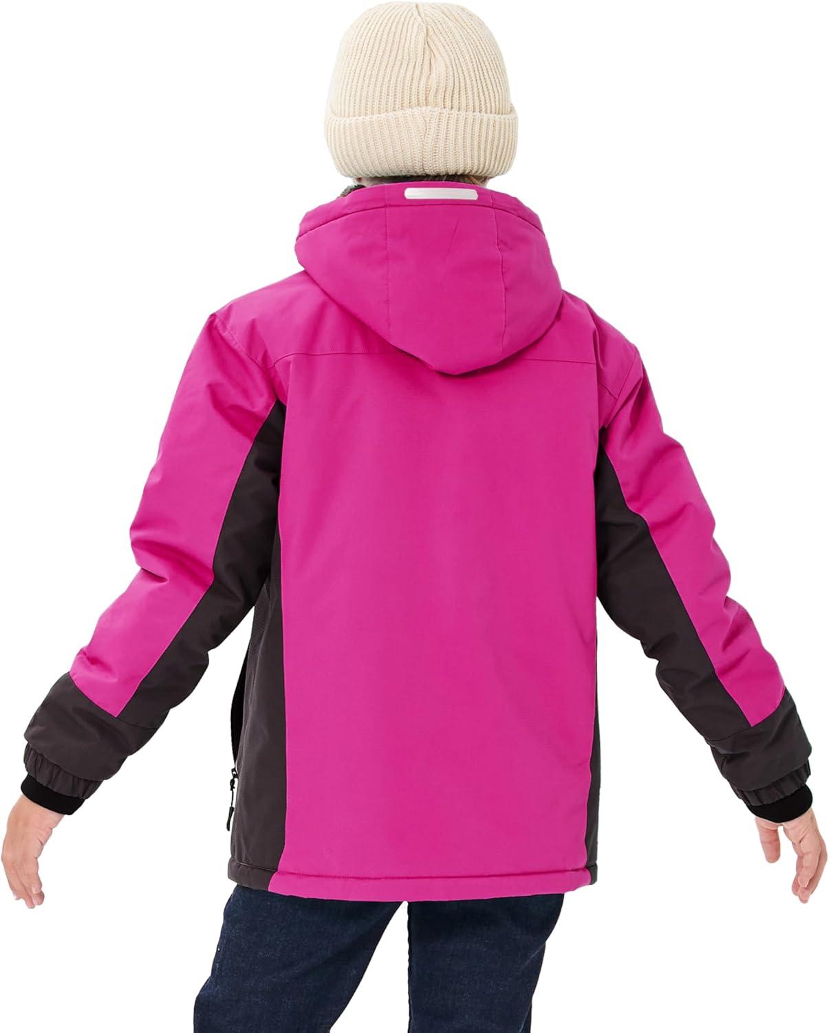 MoFiz Girls Ski Jacket Waterproof Fleece Lined Snowboard Jacket Warm Winter Snow Coats with Removable Hood(Pink)