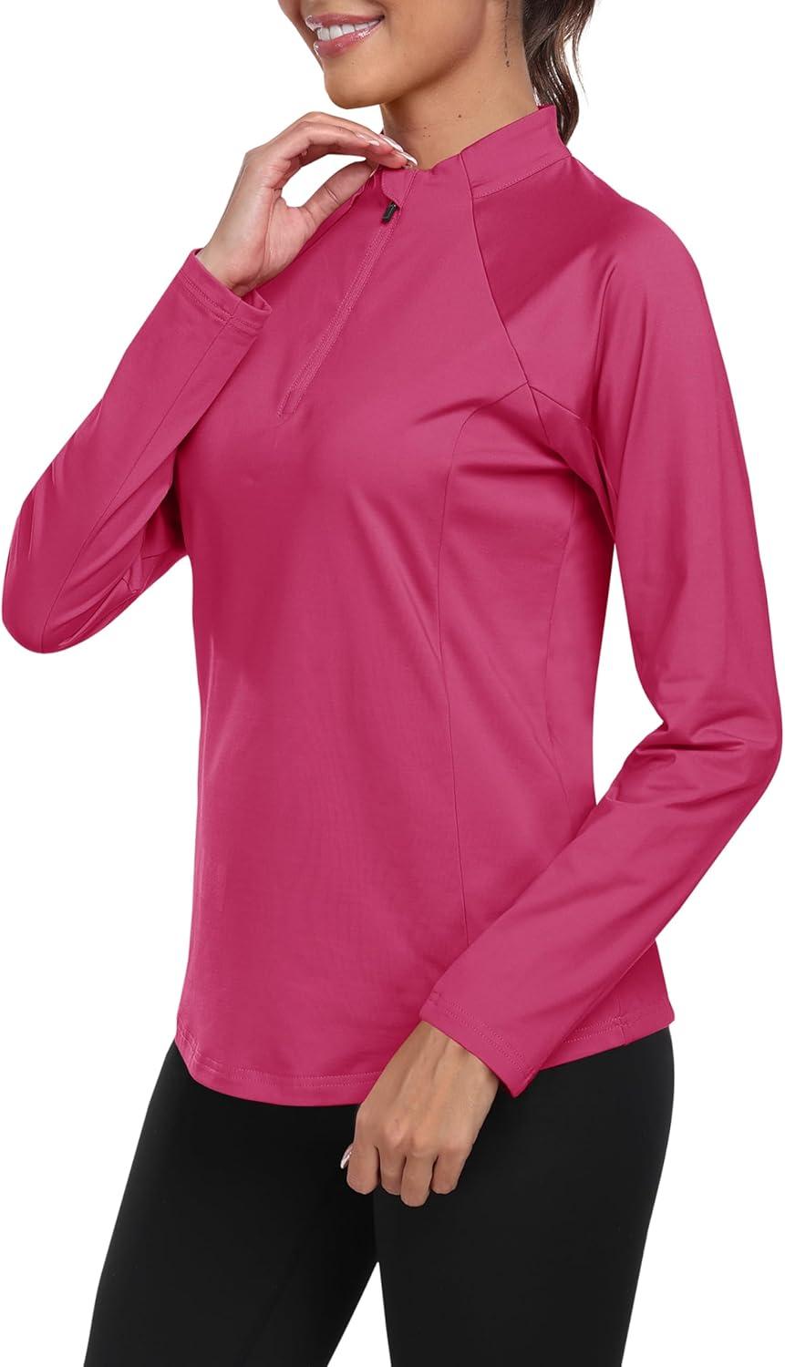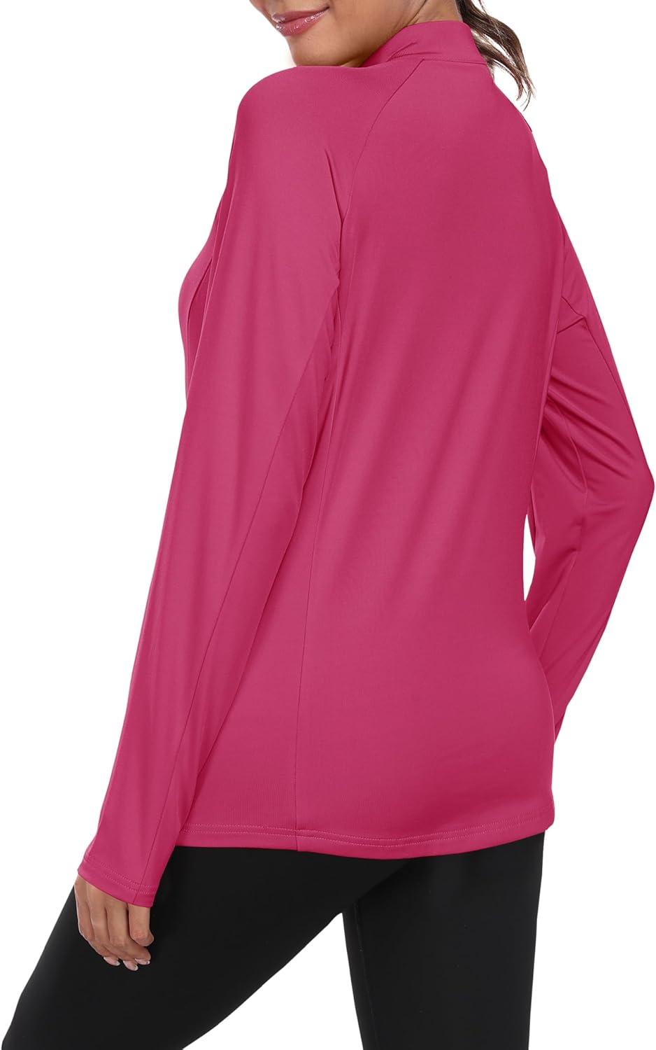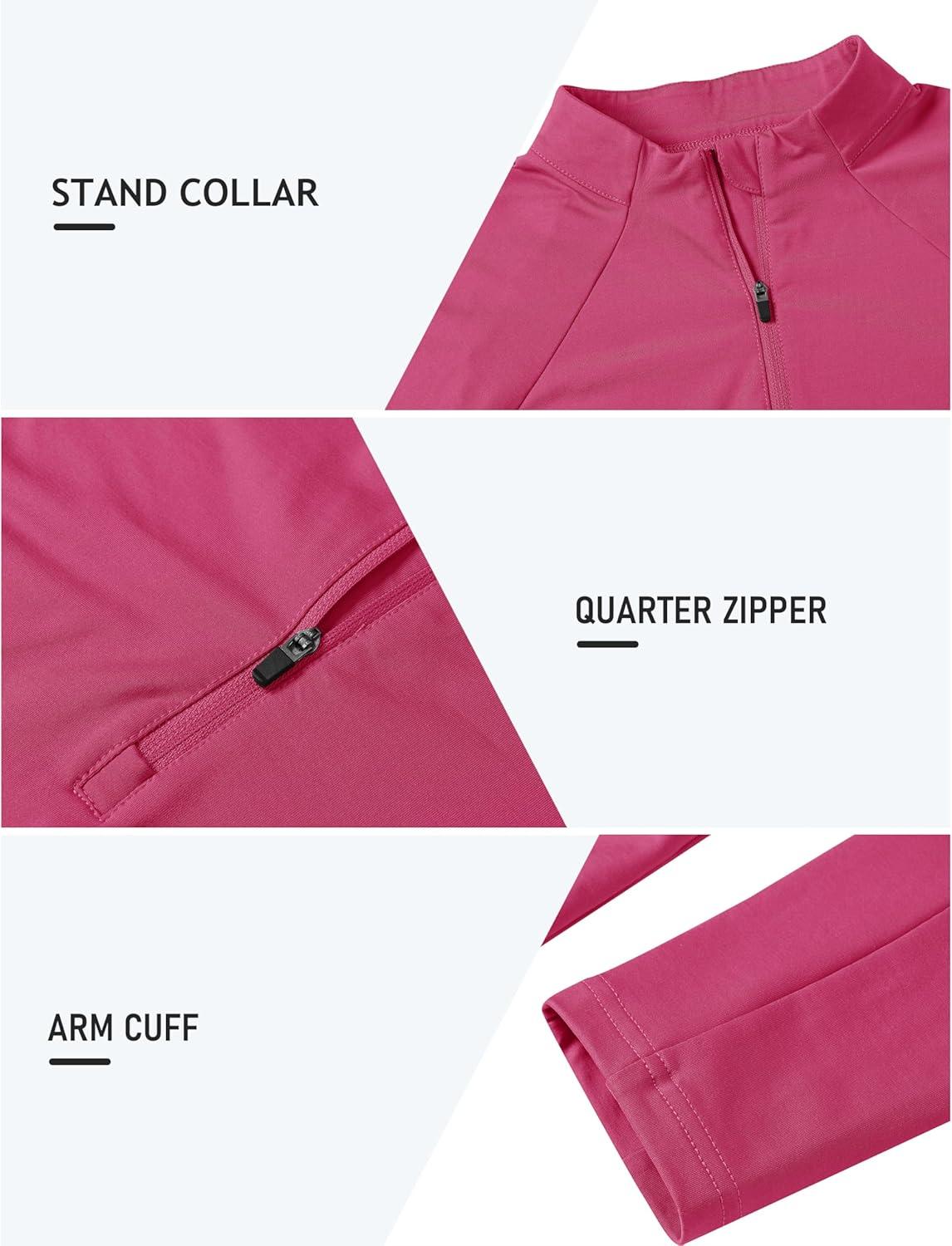 AIRIKE Women’s Quick Dry Long Sleeve Golf Shirts Stand Collar for Sports Tennis 1/4 Zip Pullover Tops Rose-Red M