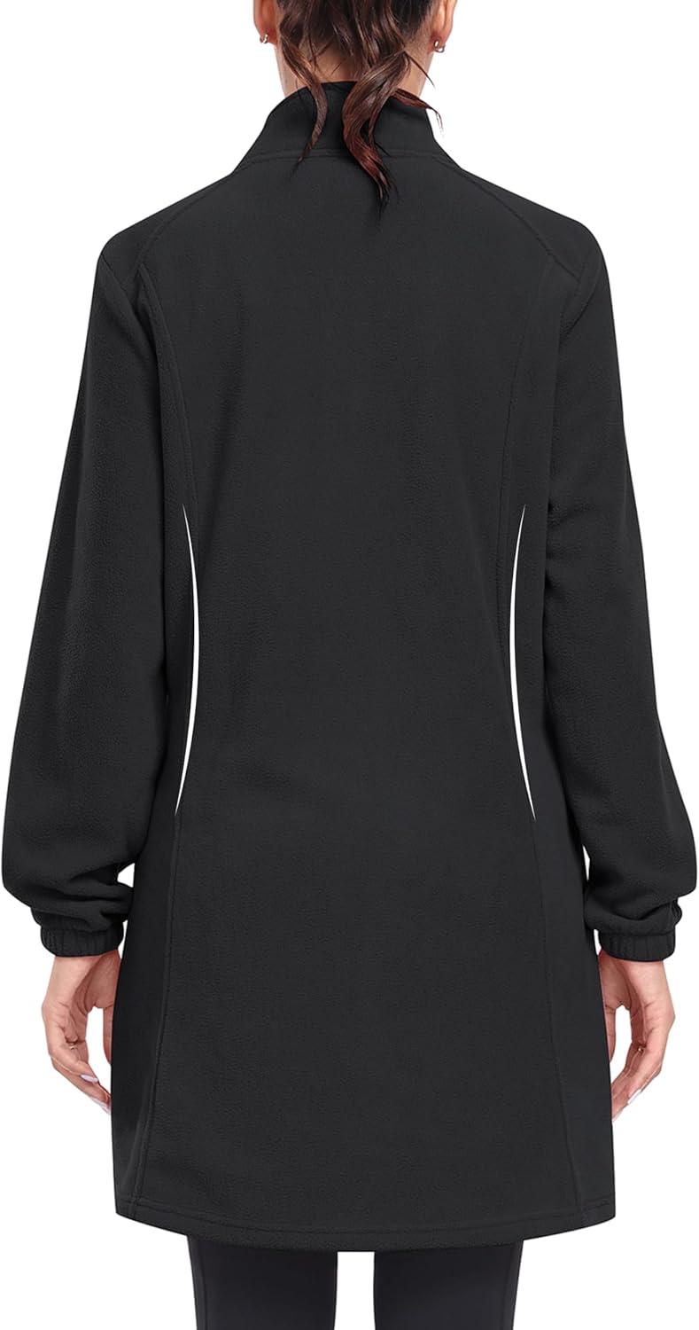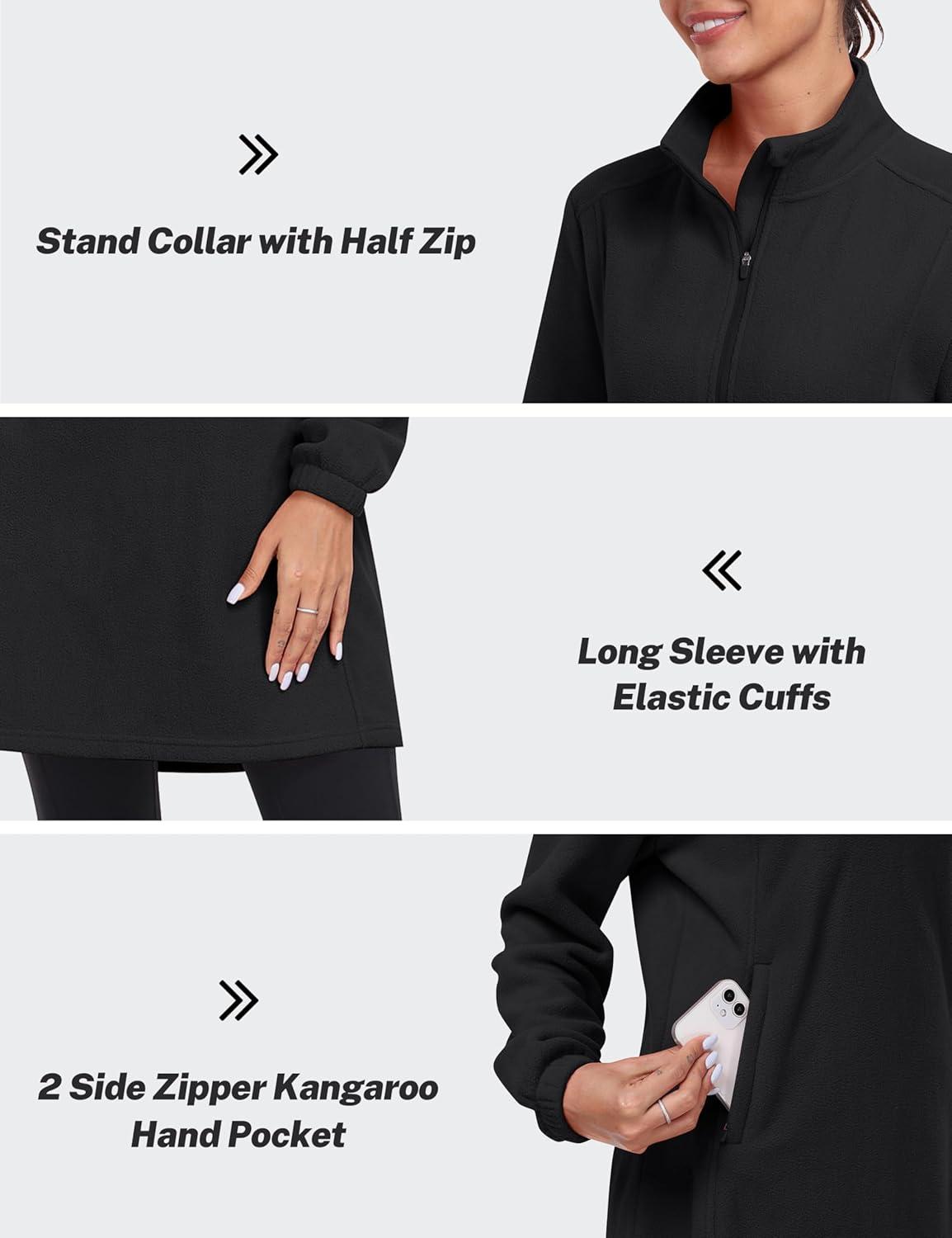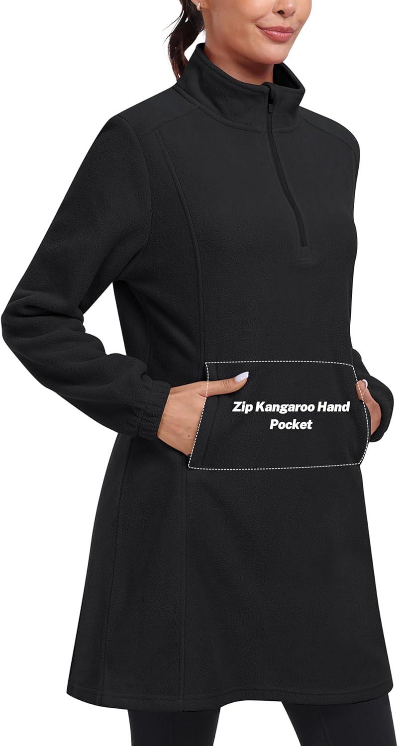 MoFiz Women’s Fleece Dress Sweatshirt Long Half Zip Pullover Polar Tunic Winter Lounge Dress Warm Cover Ups with Pocket(Black)