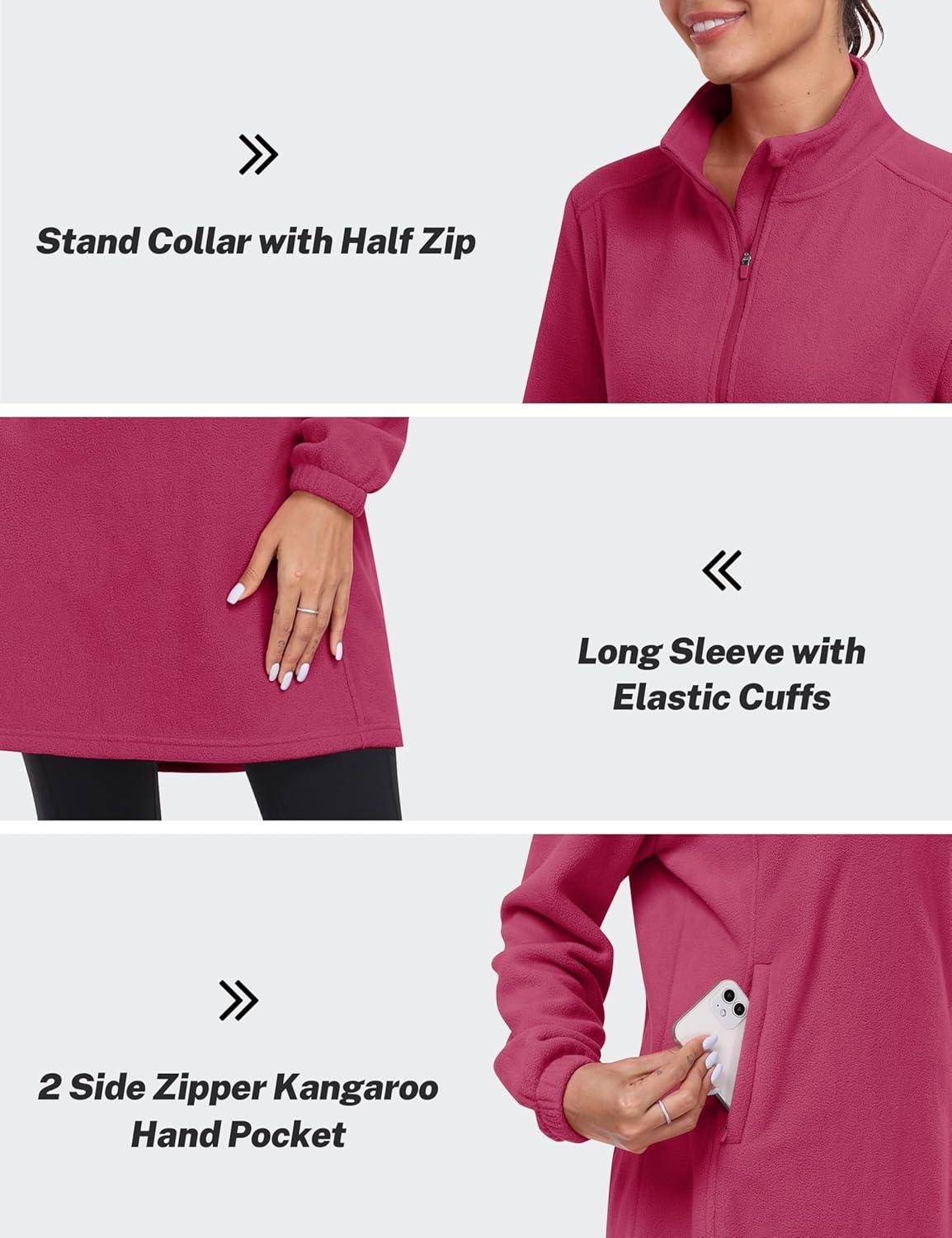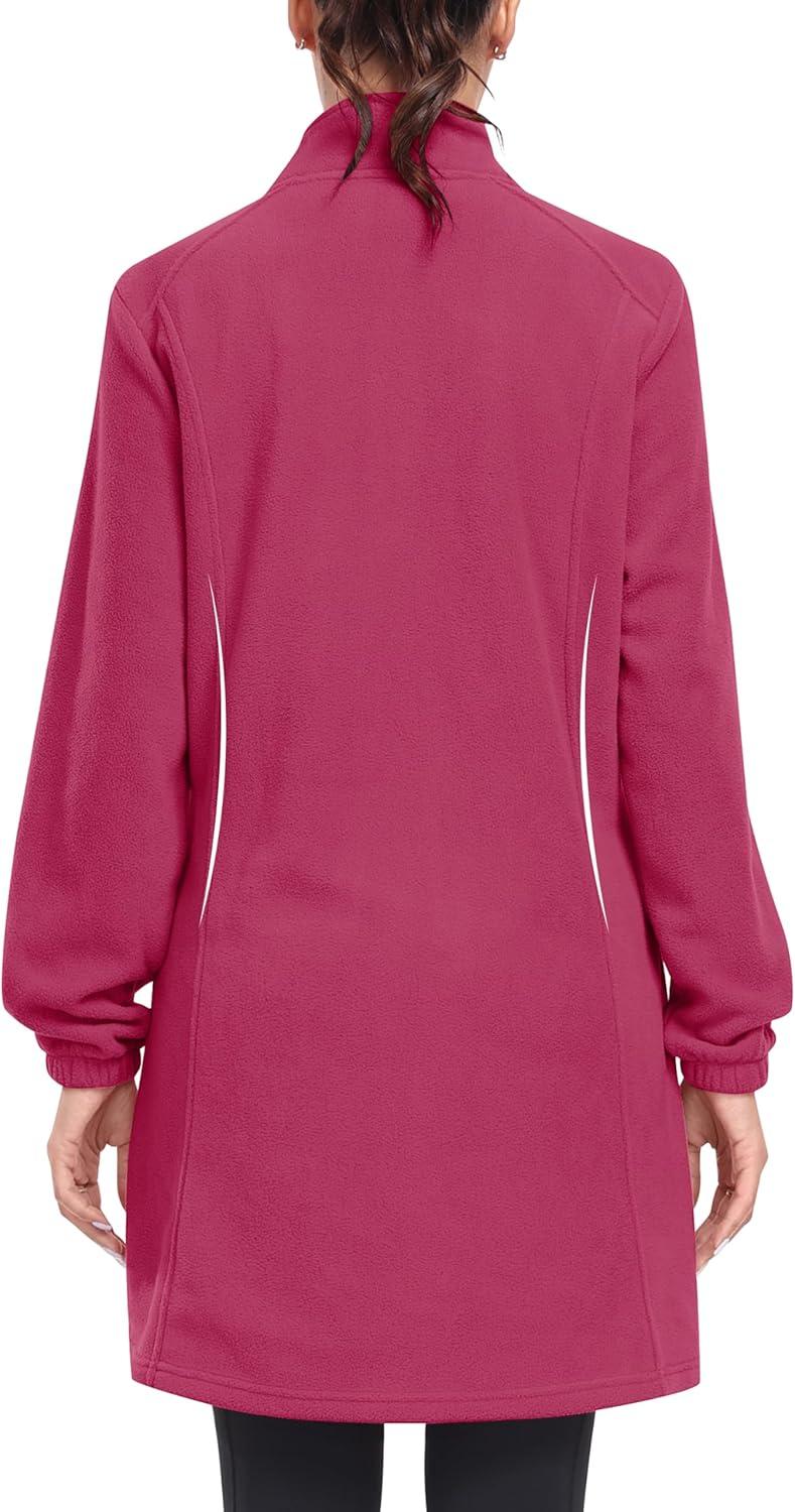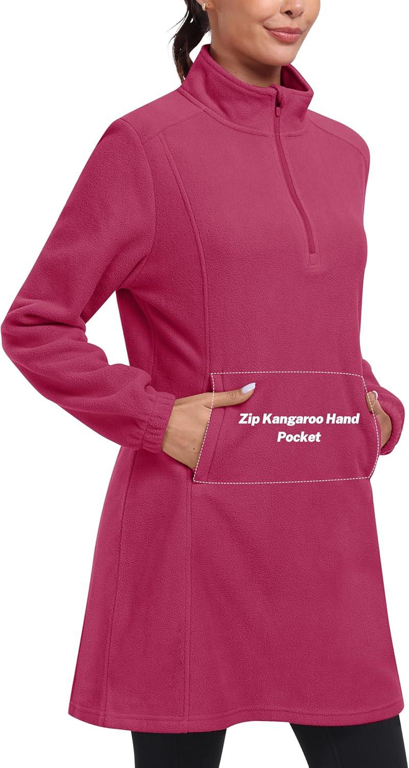 MoFiz Women’s Fleece Dress Sweatshirt Long Half Zip Pullover Polar Tunic Winter Lounge Dress Warm Cover Ups with Pocket(Rose Red)