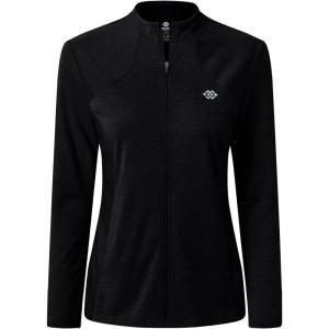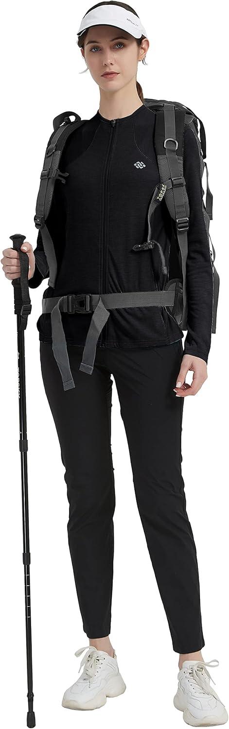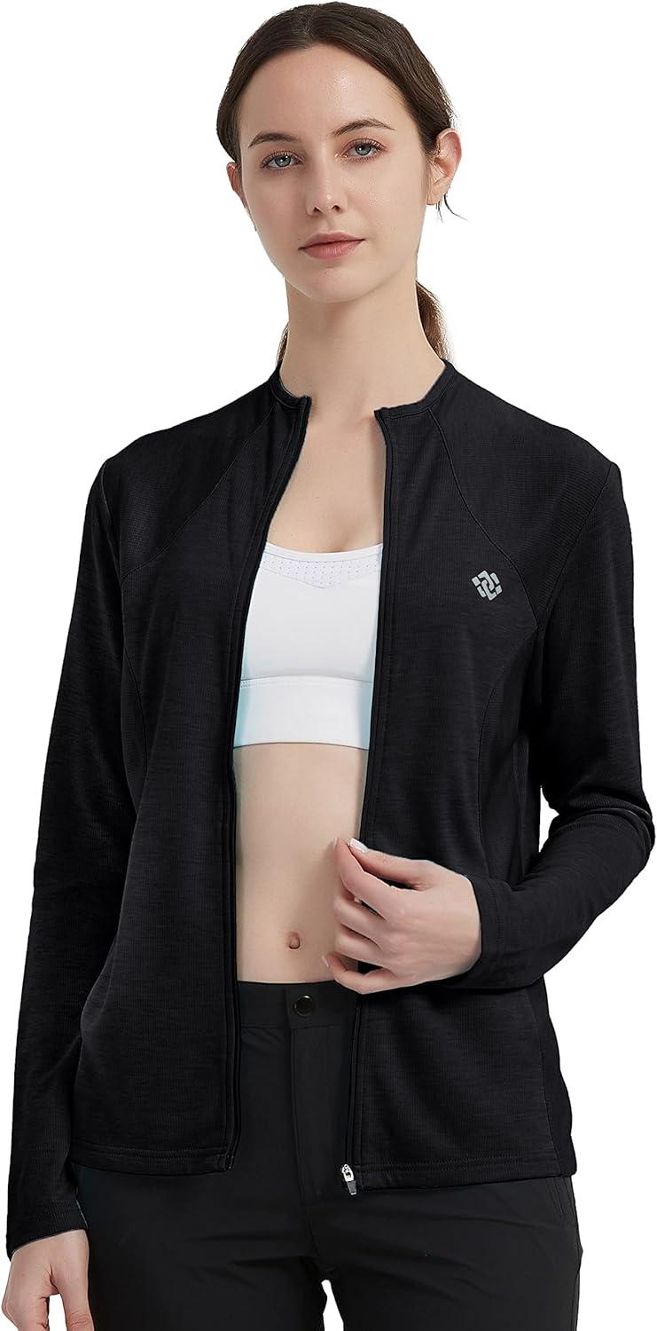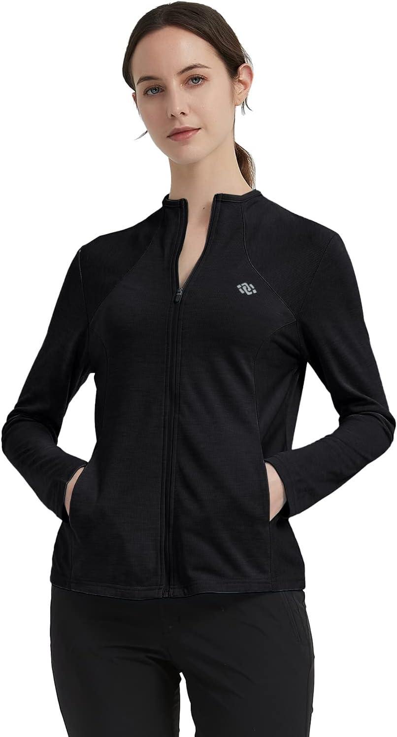 MoFiz Women’s Full Zip Hiking Shirt Lightweight UPF 50+ Sun Protection Running Jacket Long Sleeve Sports Outdoor Top Pocket(Black)